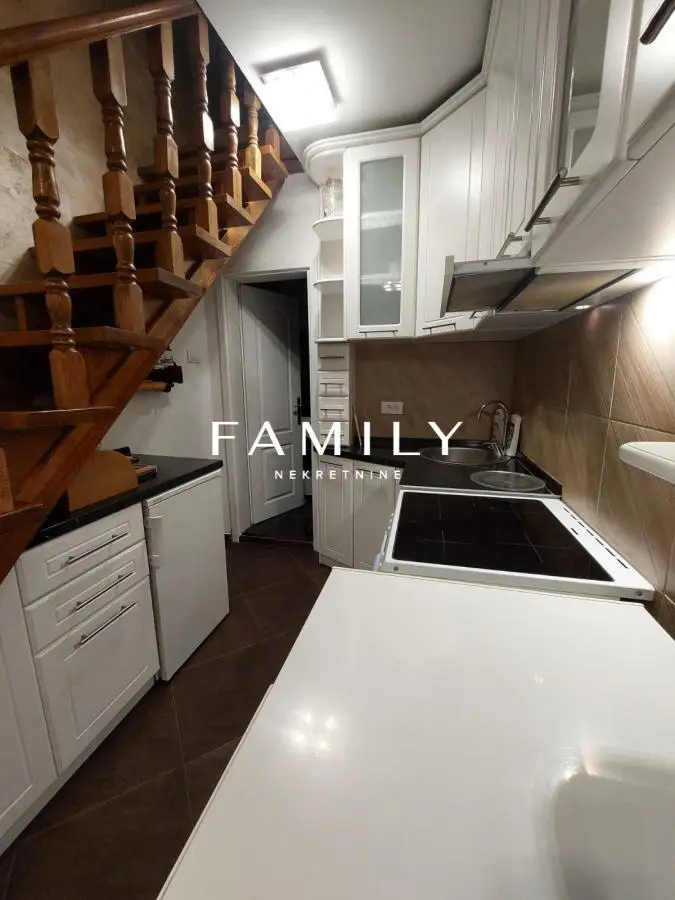 Tekst oglasa: Izdaje se dvoiposoban dupleks stan od 55m², u samom centru Novog Sada, u ulici Matice Srpske, na svega 300 metara od pešačke zone. Stan se nalazi u dvorišnoj zgradi na 1. spratu, što pruža mir i privatnost uz neposrednu blizinu svih gradskih sadržaja. Raspored prostorija: – dnevna soba – spavaća soba – kuhinja sa trpezarijom – kupatilo – terasa – druga komforna spavaća soba na spratu Stan je u potpunosti namešten, osim ležaja u drugoj spavaćoj sobi, koji može biti nabavljen prema potrebama budućih stanara. Oprema i pogodnosti: Smart TV Klima uređaj Mašina za veš Mašina za sudove Frižider i zamrzivač Ostava Gradsko grejanje Terasa Stan je pogodan za porodicu. Nisu dozvoljeni kućni ljubimci i nepušači su poželjni. Depozit u visini jedne kirije je obavezan. Za više informacija pozvati: 063635443 Potreban depozit u visini zakupnine Agencijska provizija 50% od prve zakupnine jednokratno Family Nekretnine doo, upisan u REG POSREDNIKA 1708
