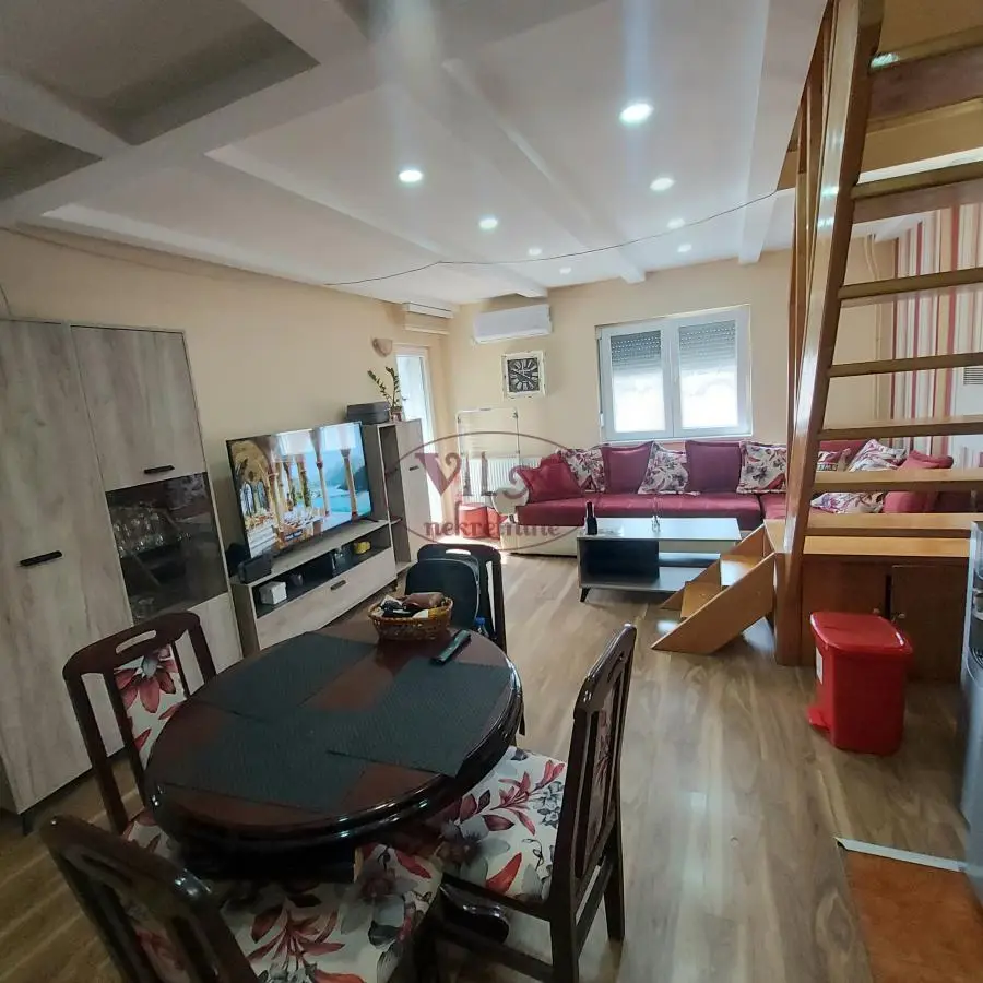 Prodaje se lep dvoiposoban stan u centru grada na 100m od pešačke zone i od Pašićeve ulice. Stan se nalazi u zgradi novije gradnje.Stan se sastoji od dve etaže, gde je u donjem nivou nalazi ulazni deo sa velikim dnevnim boravkom koji je povezan sa kuhinjom i iz nje se izlazi na malu terasu. Udonjem nivou se nalazi i tuš kupatilo i taj nivo ima 33m2, a na ddrugi nivo stana se ide lepim drvenim stepeništem, gde se nalazi spavaaća soba i druga soba i tu ima 19 m2. Sve je urađeno od prvoklasnih materijala i stan se komplet namešten prodaje. U stanu je odlično gradsko centralno grejanje. Stan je idealan za život i za izdavanje. Retko u ponudi, vredi pogledati. Tel. 065/424 55 77. Više fotografija na našem sajtu.