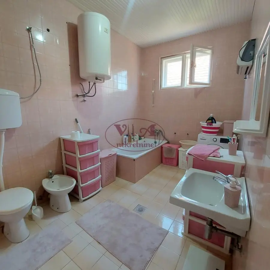 Prodaje se odlična kuća na dobroj lokaciji blizu centra Srbobrana. Kuća je građena u dva nivoa, prizemlje i suteren i sve je uknjiženo, gde ima 335 m2 bruto stambene površine. Kuća u prizemlju ima dve spavaće sobe, veliku dnevnu sobu koju je potrebno završiti- omalterisati, kuhinju sa trpezarijom, kupatilo, ostava i veliko predsoblje. U suterenu se nalaze tri sobe, kuhinja, kupatilo, hodnik. Kuća je pogodna za dve porodice ili za stanovanje i poslovanje. Kući je potrebno izvesti završne radove u smislu fasade i malterisanje dnevne sobe. u dvorištu kuće ima i jedan pomoćni objekat koji služi kao ostava.Kuća je odmah useljiva. Odlična nekretnina po povoljnoj ceni. Više fotografija na našem sajtu. Tel. 065/424 55 77.