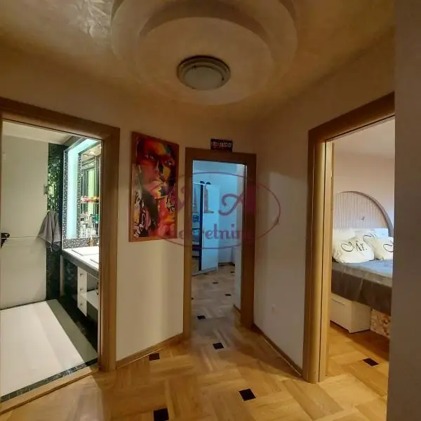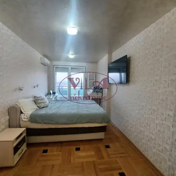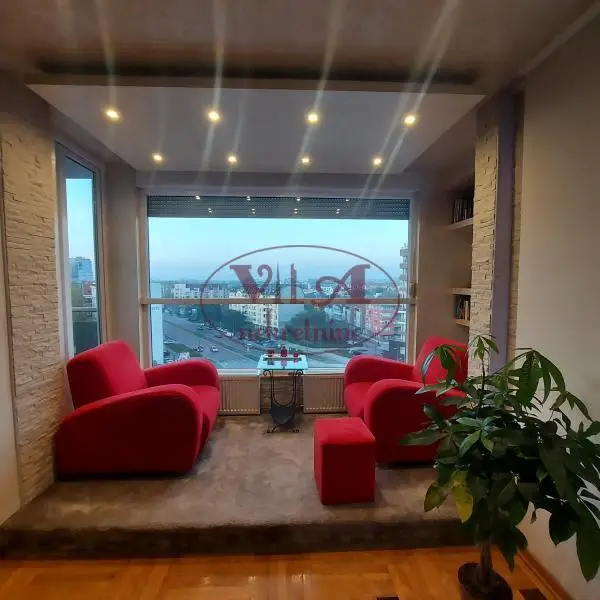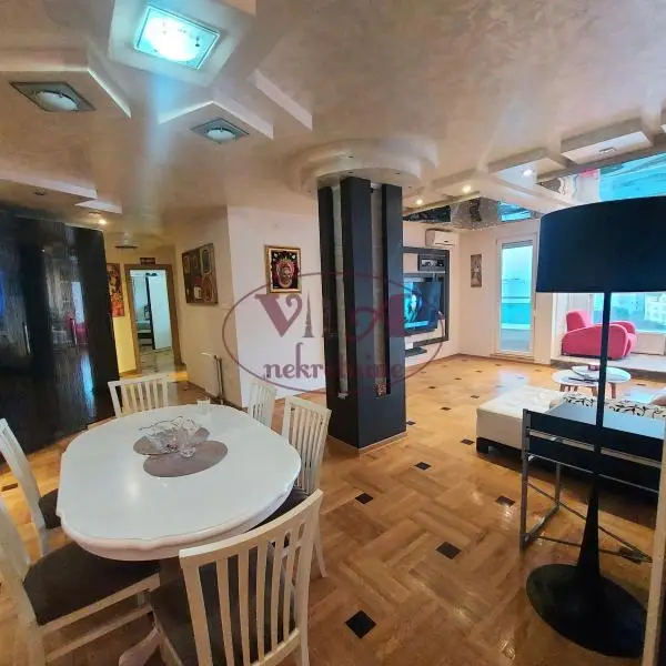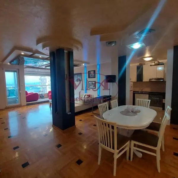 Prodaje se odličan trosoban stan- penthouse na početku Bulevara P.Pavla u modernoj zgradi. Stan se nalazi u novijoj zgradi, iznad stana ima ostava od 8m2 koja pripada stanu i jedno garažno mesto sa dodatnom ostavom u suterenu zgrade. Takođe sa stanom se dobija na korišćenje velika terasa iznad cela zgrade sa koje se vidi panorama grada, a pogodna je za odmor i uživanje i ozelenjavanje. Stan se sastoji od velikog dnevnog boravka koji je povezan sa kuhinjom i trpezarijom, iz dve veće spavaće sobe( a moguće je izvesti i tri sobe), modernog kupatila i odvojenog toaleta.Iz svih soba se izlazi na veliku prelepu terasu. Dnevna soba je posebno lepo uređena, kao i ceo stan, sa led dekorativnom rasvetom i ima veliki stakleni portal sa koga se pruža predivan pogled na grad. Sve je moderno i lux uređeno po visokim standardima kvaliteta. Stan se prodaje komplet namešten.Stan ima tri klime, centralno grejnje na gas sa malim troškovima.U stanu je postavljen prvoklasni parket, a u kupatilu i toaletu je podno grejanje. Stan je uknjižen bez tereta Odličan stan - vredi pogledati.Tel.065/424 55 77. Više fotografija na našem sajtu.