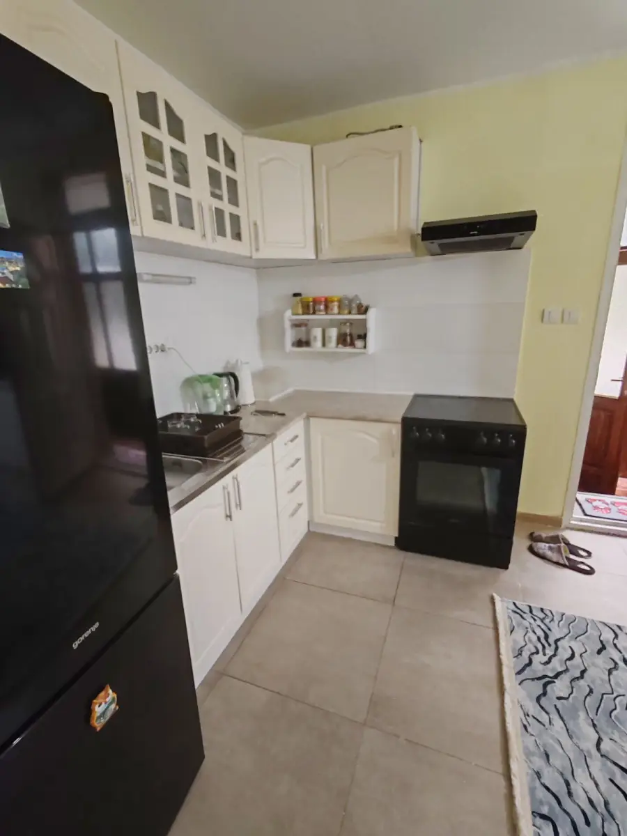 Noviji stan bez ulaganja u prizemlju novije zgrade. Stan je uknjižen kao garaža. Sastoji se od dnevnog boravka sa kuhinjom kupatila i spavaće sobe vrlo korektnih dimenzija u koju staje i bračni ležaj. Stan sa još jednim stanom u prizemlju koristi i svoj deo dvorišta.