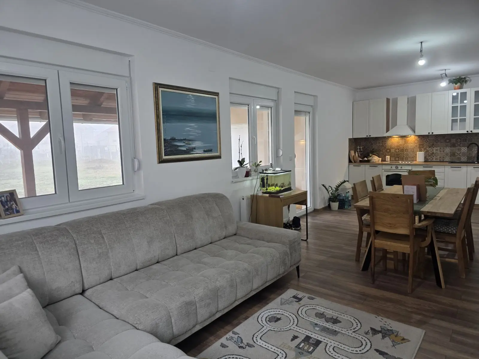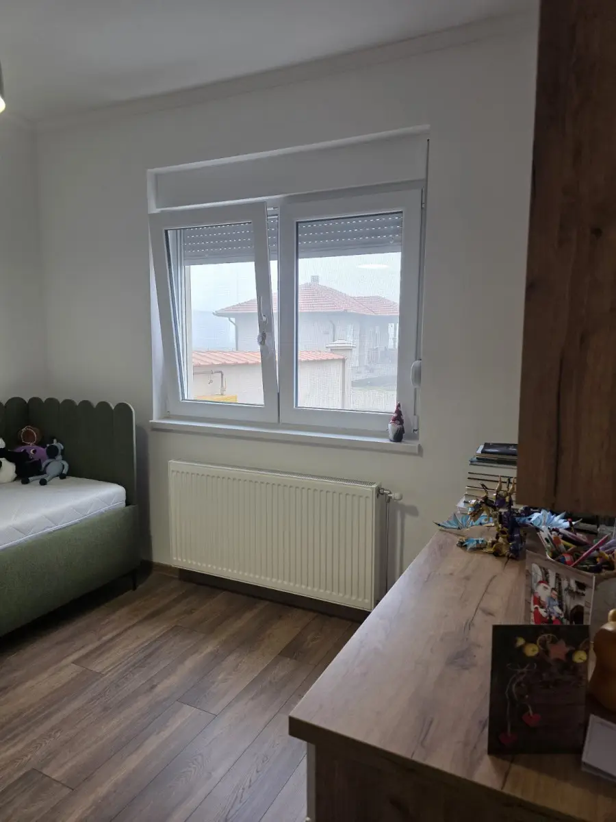 Temerin, u novom Bloku na 3/4km od samog centra u lepoj, mirnoj ulici sa novim tipskim kućama i porodičnim mladim ljudima u komšiluku, prodaje se potpuno nova tek useljena komforna 4,0 kuća odličnog rasporeda. Kuća je građena po visokim standardima gradnje, a unutrašnja oprema je dodatno nadograđena kvalitetom ( keramika, podovi, unutrašnja stolarija ) i sve je u garanciji ( garantni rokovi proizvođača i izvođača radova ) . Raspored prostorija je odličan, iz hodnika se ulazi u svaku sobu, ima veliko kupatilo sa lezecom kadom i malo kupatilo sa tus kabinom, iz prostranog dnevnog boravka izlazi se na natkrivenu verandu koja gleda u dvorište. Dvorište / plac je 750m2, pravilnog oblika i daje mogućnost u perspektivi napraviti bazen, dečije igralište ili po sopstvenim zeljama voćnjak, bašta i slično ... Grejanje etazno na gasni kotao koji je povezan i sa toplom vodom mada postoji i mogućnost i ugradnje redovnog električnog bojlera, a iznad cele kuće je betonska ploča i tavan koji može da se uz minimalna ulaganja uredi u teretanu, igraonicu i sl ... Kuća je uknjižena na 147m2 postoji mogućnost kupovine putem stambenog kredita kao i dogovor oko prodaje sa delom ugradnog nameštaja i bele tehnike koji je radjen po meri i sve je u garanciji.
