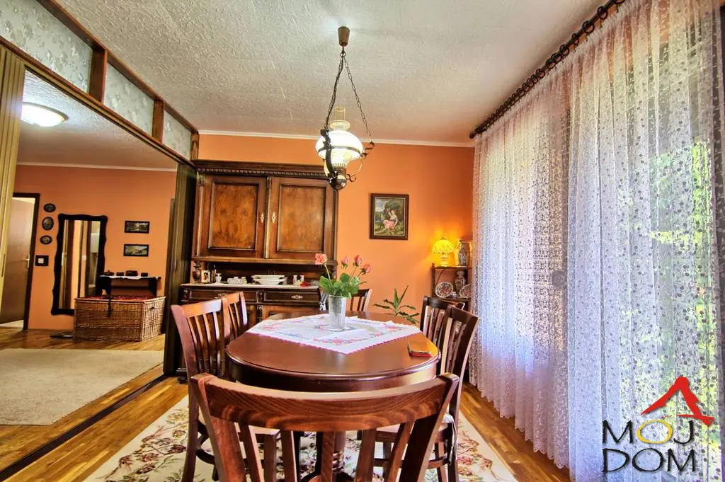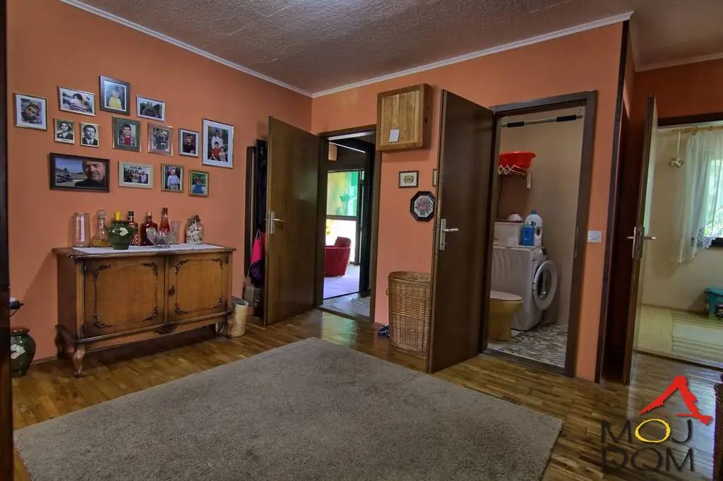 Agencija Moj Dom nekretnine iz Novog Sada (Reg. br. 174) u ponudi ima prizemnu četvorosobnu kuću površine 158m² na ravnom, uređenom placu od 904m², u mirnom delu Rakovca, nadomak Novog Sada. Kuća je montažna, Marlesova gradnja, sa odličnom organizacijom prostora: Prostran dnevni boravak sa velikim staklenim površinama i pogledom na dvorište Trpezarija i kuhinja povezane šankom čine funkcionalnu celinu sa dnevnim boravkom Odvojen spavaći blok sa tri komforne spavaće sobe i kupatilom Garaža sa ulične strane i lepo uređen park Lokacija nudi idealan balans između mira i dostupnosti – blizina škole, ambulante, autobuskog prevoza, dok je Novi Sad udaljen svega desetak kilometara. Infrastruktura kompletna: asfaltni put, voda, struja i kanalizacija. Uknjiženo, moguća kupovina putem stambenog kredita. Kontakt: Vanja – 060/308-8993 Šifra oglasa: 3004528 Agencija Moj Dom, reg. broj 174 Moj Dom Real Estate (Reg. no. 174) presents a charming single-story, 4-room house (158m²) situated on a spacious, flat plot of 904m² in Rakovac, just 10 km from Novi Sad. The house is prefabricated (Marles construction) and offers a well-organized layout: Large, bright living room with plenty of glass and a garden view Kitchen and dining area connected by a bar, forming one open living space Separate sleeping area with 3 cozy bedrooms and a bathroom Garage facing the street and a small landscaped front yard Peaceful neighborhood with nearby school, clinic, and public transport, yet close to the city. All infrastructure available: asphalt road, water, electricity, and sewage. Property is registered, bank loan eligible. Contact: Vanja – +381 60 308 8993 Агентство Moj Dom недвижимость, Новый Сад (рег. №174), предлагает к продаже четырёхкомнатный одноэтажный дом площадью 158 м² на ровном ухоженном участке 904 м² в живописном месте Раковца, всего в 10 км от Нового Сада. Дом сборной конструкции (Marles) с функциональной планировкой: Просторная гостиная с панорамными окнами и видом на двор Кухня с обеденной зоной объединены барной стойкой в единое пространство с гостиной Спальная зона включает 3 уютные спальни и ванную комнату Гараж со стороны улицы и ухоженный парк перед домом Отличное расположение — рядом школа, амбулатория, автобусная остановка. Полная инфраструктура: асфальтированная дорога, вода, электричество и канализация. Дом зарегистрирован, возможна покупка в ипотеку. Контакт: Ваня – +381 60 308 8993