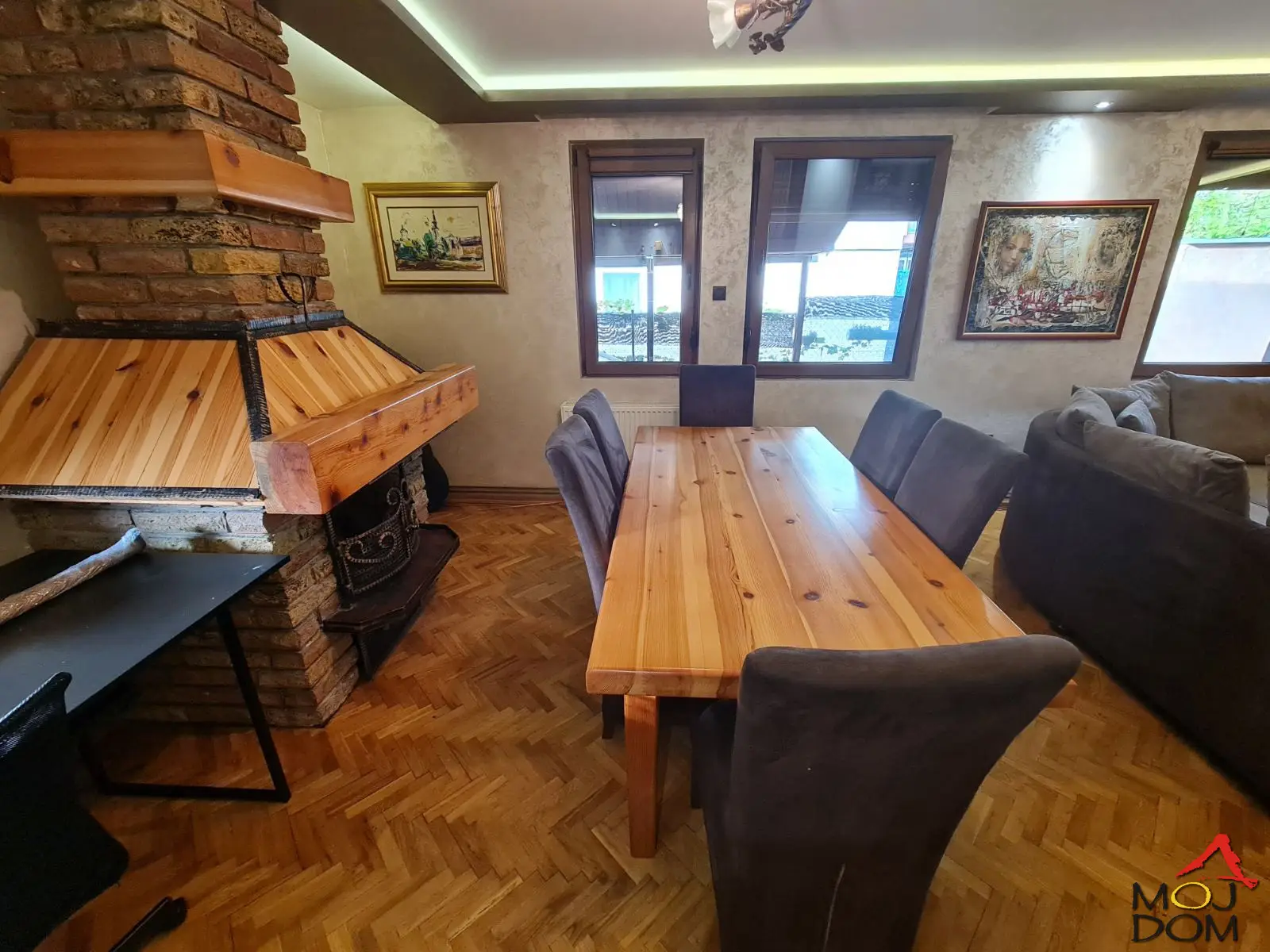 Moj dom nekretnine vam nude prelep porodičan dom od165m2 u najmirnijem delu Sremske Kamenice. Locirana u slepoj ulici sa mirnim i jako lepim komšilukom, podseća na predgrađa zapada. Sama kuća poseduje odvojene tri spavaće sobe sa velikim dnevnim boravkom u kom je funkcionalan kamin, kao i potpuno odvojena kuhinja. U dvorištu od 462m2 imate prostran travnjak sa bazenom i dodatnom letnjom terasom opremljenom za potpuni užitak sa porodicom i prijateljima. Ovo je potpuno opremljen dom spreman za vaš neometan boravak. Za sve dodatne informacije kontaktirajte nas: 063304062 Šifra: 3004074 (Moj Dom nekretnine, Novi Sad, Reg.br. 174) Moj Dom Real Estate offers you a beautiful 165m² family home in the most peaceful part of Sremska Kamenica. Located in a cul-de-sac with a quiet and friendly neighborhood, it resembles the suburbs of the West. The house features three separate bedrooms, a large living room with a functional fireplace, and a fully separated kitchen. The 462m² yard includes a spacious lawn, a swimming pool, and a summer terrace designed for complete enjoyment with family and friends. This fully equipped home is ready for your immediate move-in. For more information, contact us: +381 63 304 062 Code: 3004074 (Moj Dom Real Estate, Novi Sad, Reg. No. 174) Агентство недвижимости Moj Dom предлагает вам прекрасный семейный дом площадью 165м² в самом спокойном районе Сремской Каменицы. Расположен в тупиковой улице с тихим и очень приятным соседством, напоминающим западные пригороды. Дом включает три отдельные спальни, большую гостиную с функциональным камином и полностью отделённую кухню. На участке площадью 462м² есть просторный газон, бассейн и летняя терраса, идеально подходящая для отдыха с семьёй и друзьями. Этот полностью оборудованный дом готов для вашего немедленного заселения. Для получения дополнительной информации свяжитесь с нами: +381 63 304 062 Код: 3004074 (Агентство недвижимости Moj Dom, Нови-Сад, Рег. № 174)