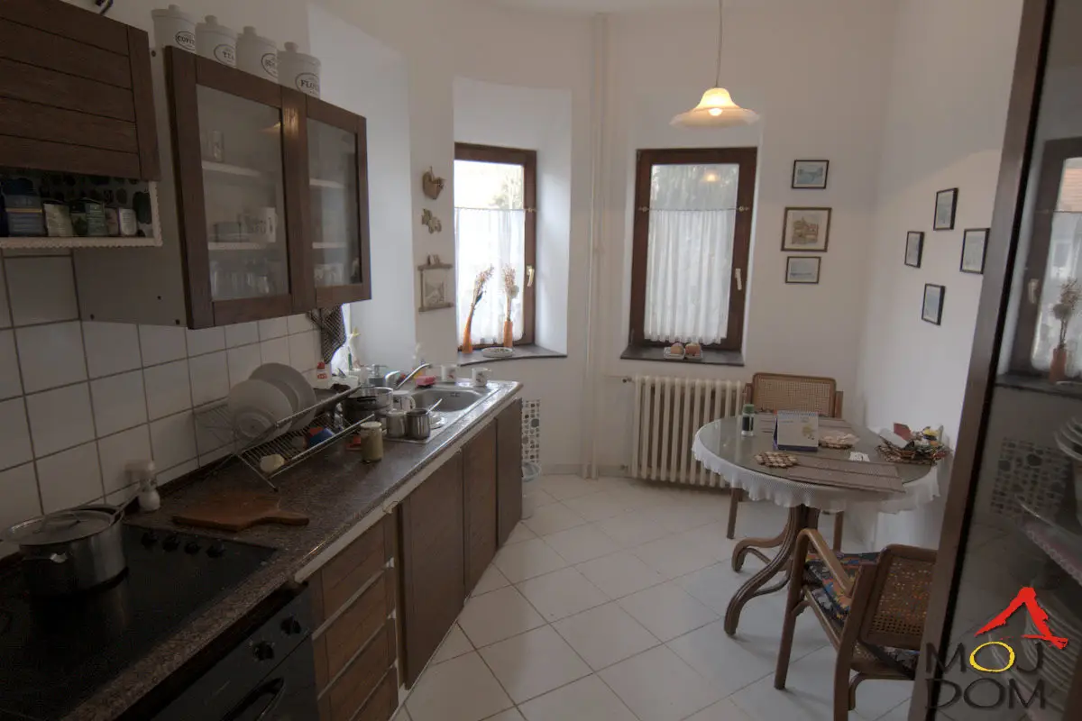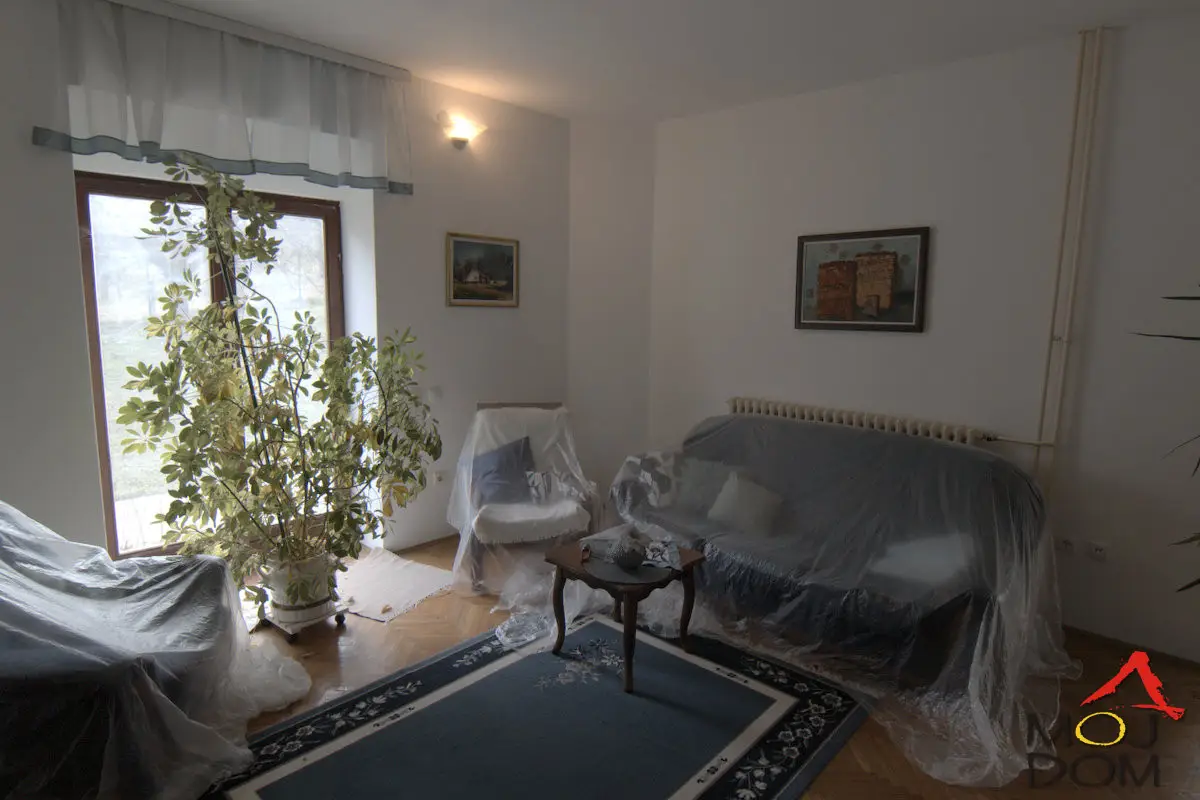 Kuća je udaljena 10 minuta kolima od tržnog centra Promenade i ostalih ključnih objekata u gradu, ali i dalje smeštena na ivici građevinske tone u uvali okružena drveće, potokom sa sopstvenim mostom. Ograđena je, završena i održavana. Prostrana je sa visokim plafonima, velikim podrumom i dodatnim prostorijama. Moguće je adaptirati tavan u još jednu sobu. Dva kupatila, 3 spavaće sobe, veliku dnevnu kuhinju i dnevnu, jednu pomoćnu prostoriju i veliki podrum, kao i među sprat kao sekundarnu dnevnu sobu. Zidovi su svi dupla cigla (pola metra zid). Tavan i crepovi u dobrom stanju. Parket, mermer u ulazu. Sa velikim i ograđenim dvorištem, ima svoj most koji prolazi iznad potoka, kao i jedno mesto za parkiranje na ulici. Okrenuta je ka suncu, tj. na jug. Drvo trešnje, ruže, zimzeleno drveće raznih vrsta, kao i drveće oraha koje rađa, ukrašavaju dvorište. Priključena legalno na struju (digitalni sat) i vodu. Moguće priključenje na gas. Pored toga ima i veliki kopani bunar sa hidroforom koji može da se koristi kao besplatna voda ili u slučaju nestanka gradske. Sprovedeno grejanje od centralnog kotla u sve sobe do radijatora. Kotao je na struju. U prvoj je zoni gradskog saobraćaja, a stanica je na glavnom putu 3 minuta peške. Kuća nije na brdu tako da zimi dolazak nije otežan. Dve terase i dodatno ograđen veliki deo dvorišta za psa. (Moj Dom nekretnine, Novi Sad, Reg.br. 174)