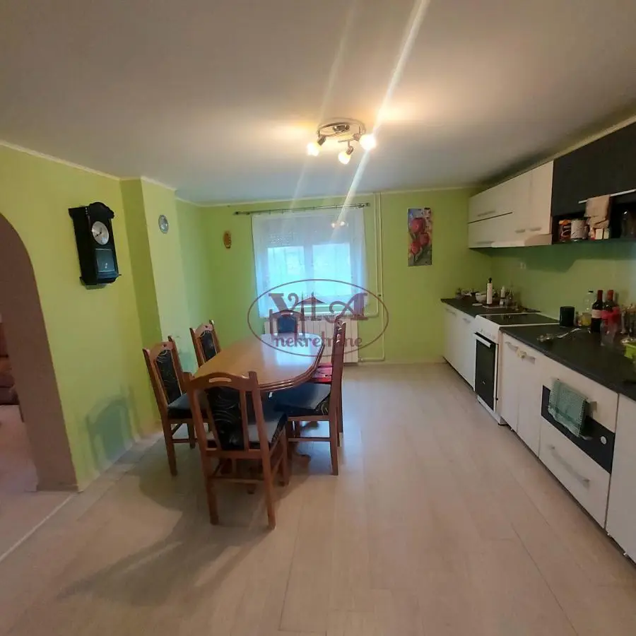 Prodaje se lepo sređena kuća na manjem placu u mirnijem delu Srbobrana. Kuća ima lep raspored prostorija, te ulazni hodnik iz koga se ide u jednu veću spavaću sobu, zatim u kuhinju sa trpezarijom, koja je povezana sa dnevnom sobom, posebno kupatilo i posebno toalet. Pored kuće se nalazi velika garaža, koja se lako može pretvoriti u stambeni deo sa malim ulaganjem. Kuća je potpuno renovirana, ima novo kupatilo, novo centralno grejanje na sojinu slamu, a koje se lako može prenameniti na gas, po želji kupca. Kuća ima manje, lepo uređeno dvorište puno zelenila i natkriveni letnjikovac - terasu sa sazidanim roštiljem, za opuštanje i uživanje. Kuća se prodaje potpuno nameštena i odmah je useljiva. Odlična nekretnina po povoljnoj ceni, vredi pogledati. Tel. 065/424 55 77. Više fotografija na našem sajtu.