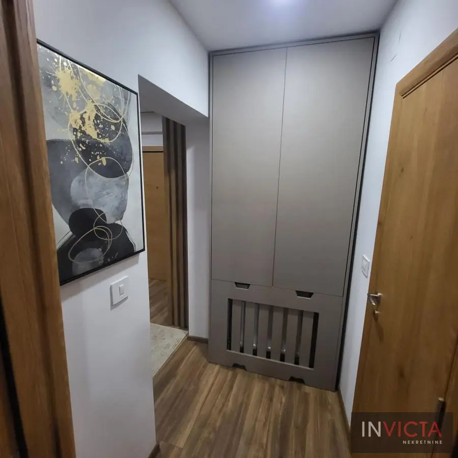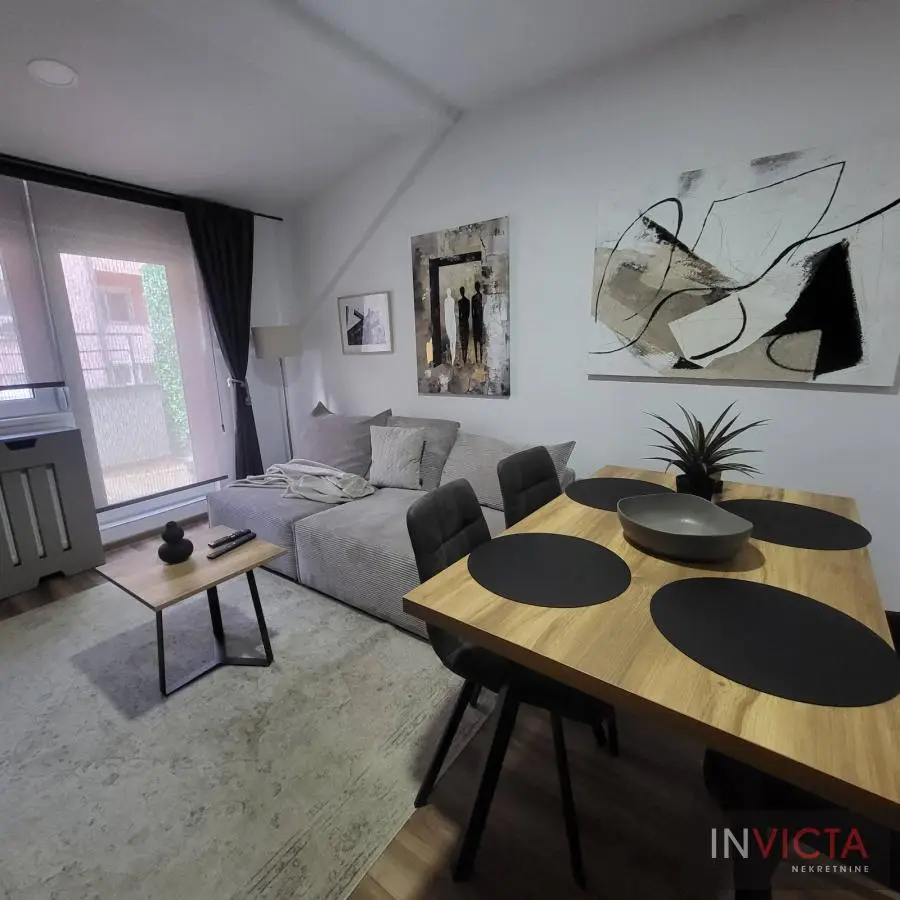 Nov, prelepo opremljen, dvosoban stan u neposredfnoj blizini Bul.oslobođenja, socijalnog sa garažnim mestom (cena istog je dodatnih 100.-EUR) u sklopu zgrade. Odvojena, polusakrivena savremena kuhinjska niša sa kvalitetnom belom tehnikom, predsoblje sa garderoberom, u nastavku je dnevni boravak sa trpezarijskim delom te vezom ka simpatićnoj, mamnjoj terasi, a iz manjeg degažmana veza za kupatilo i spavaću sobu sa bračnim ležajem i garderoberom. Od režijskih troškova plaća se samo kablovska tv i internet u visini od 4.200 din i struja. Odmah useljiva nepokretnost. Izdaje se isključivo ozbiljnim zakupcima na duži vremenski period. Broj u Reg.posrednika 2107.