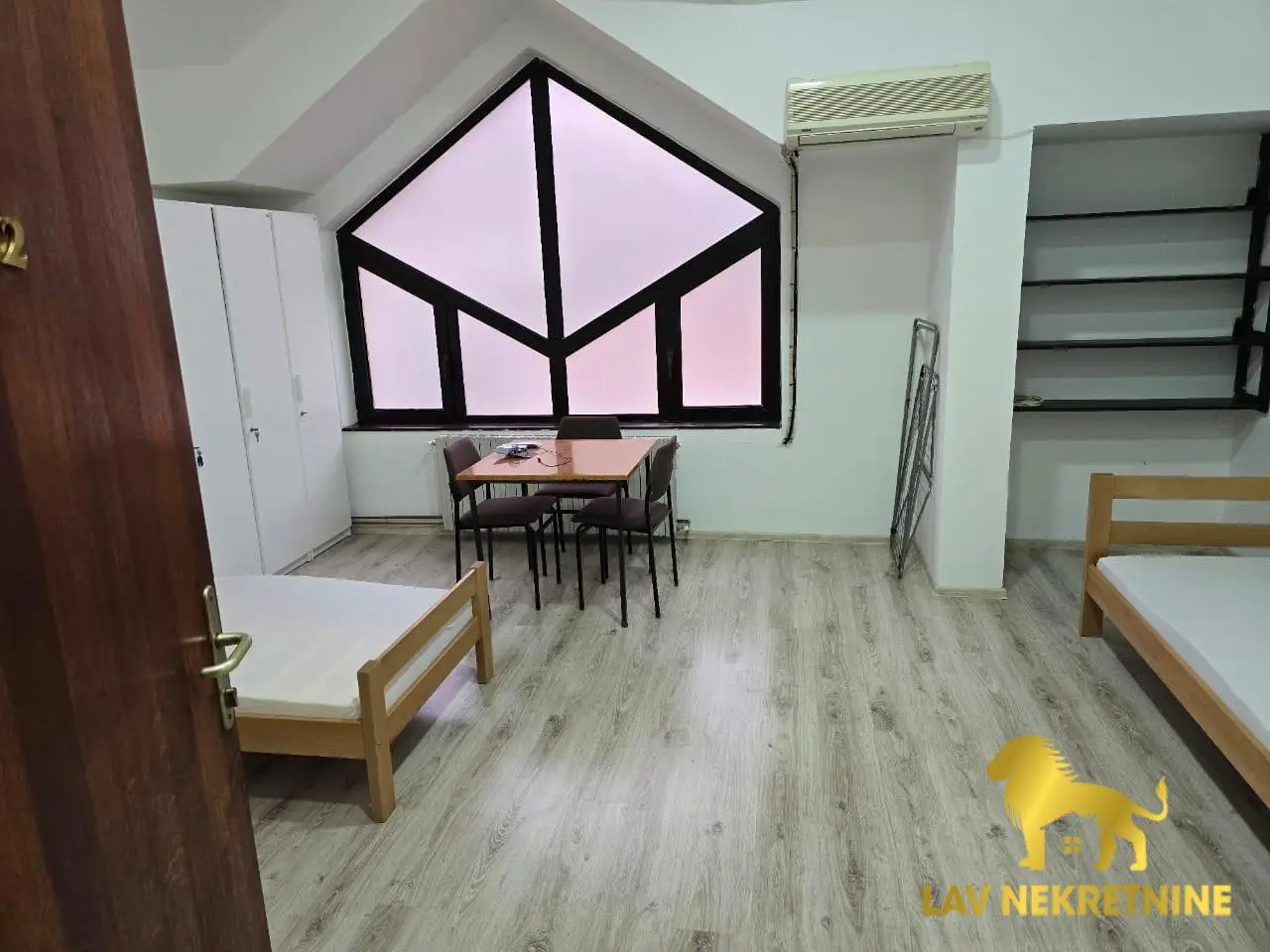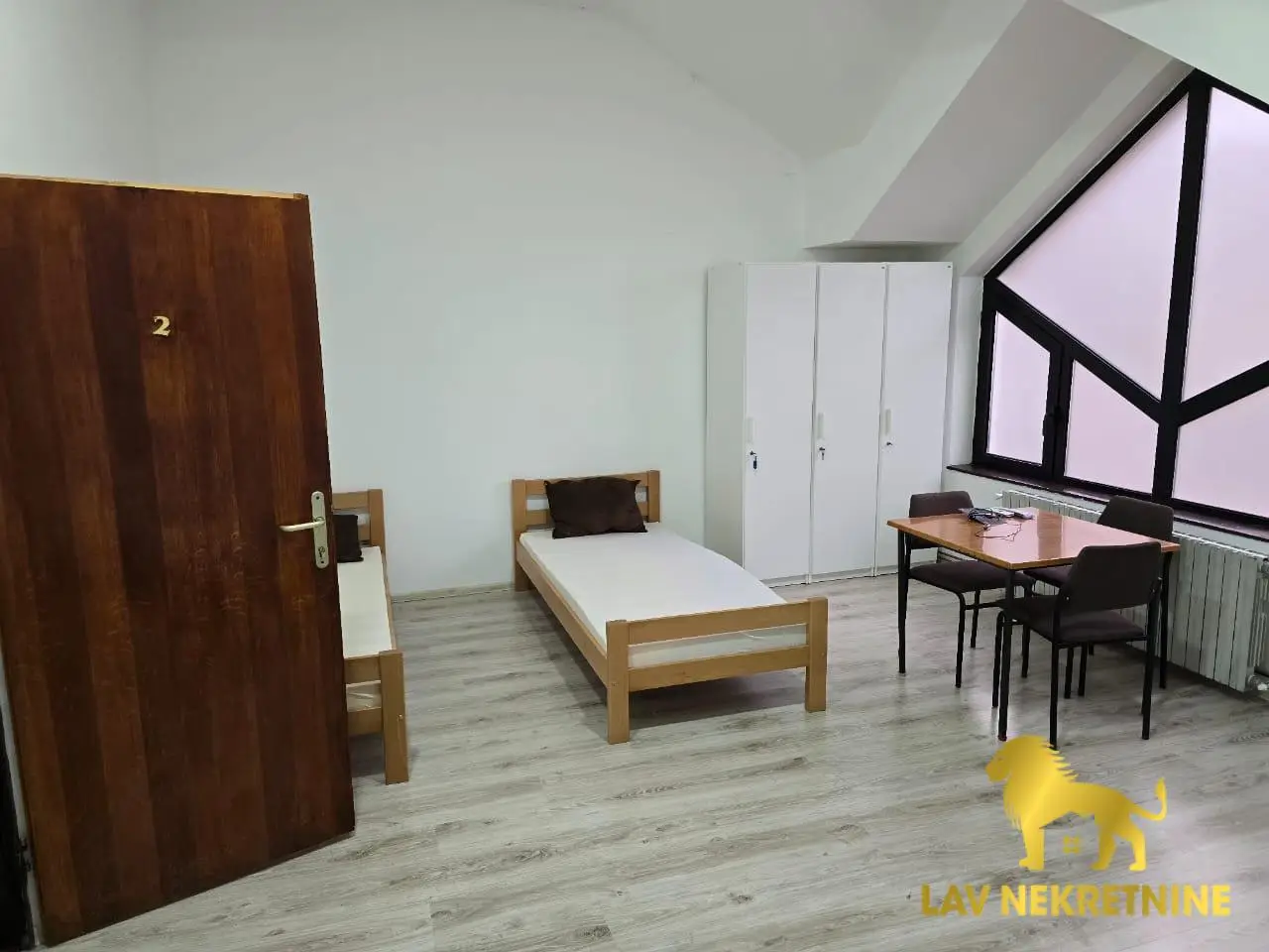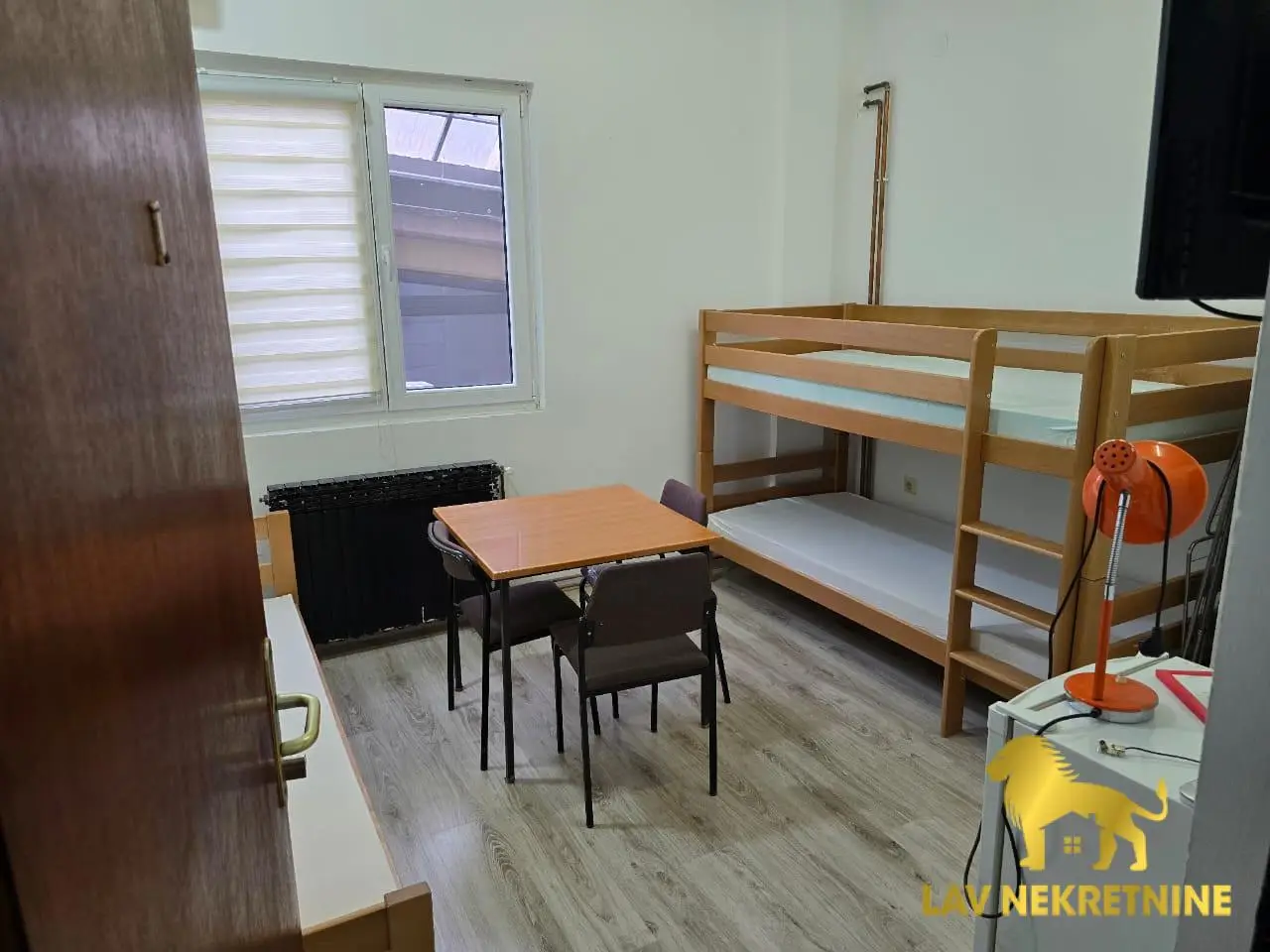 Enterijer je potpuno opremljen: 12 kreveta, 12 ormarića, 12 stolica, četiri stola i kuhinjski sto sa klupama. Za maksimalnu udobnost, stan ima četiri nova televizora, pet frižidera, mašinu za pranje veša i mašinu za sušenje veša.