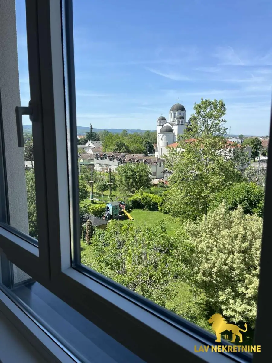 Prodaje se prelep dvoiposoban stan u atraktivnom kompleksu ATRIUM RESIDENCE, površine 62m². Stan je ulično orijentisan ka crkvi na Telepu i odlikuje se savremenim rasporedom prostorija i podnim grejanjem.