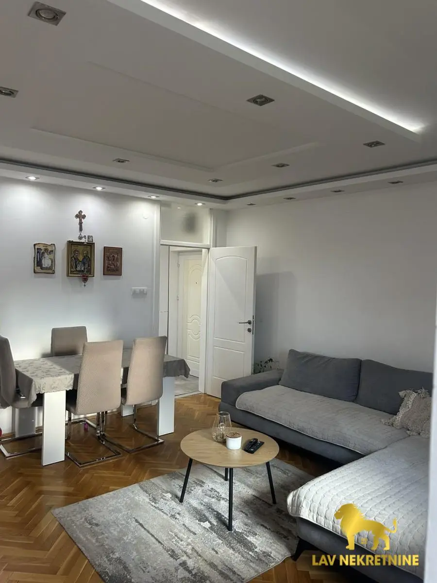 Prostran dvoiposoban stan, dvostrano orijentisan, u neposrednoj blizini Sajma. Poseduje veliku dnevnu sobu,kuh