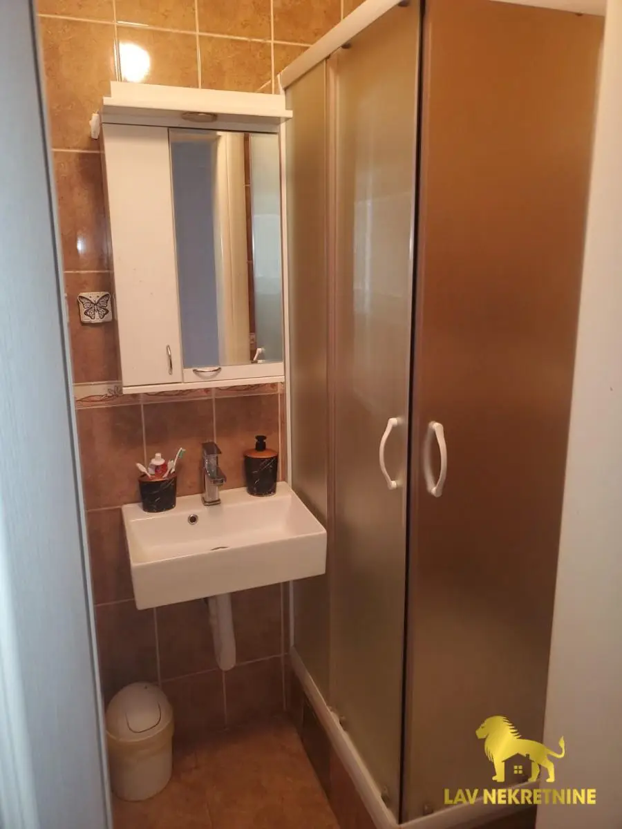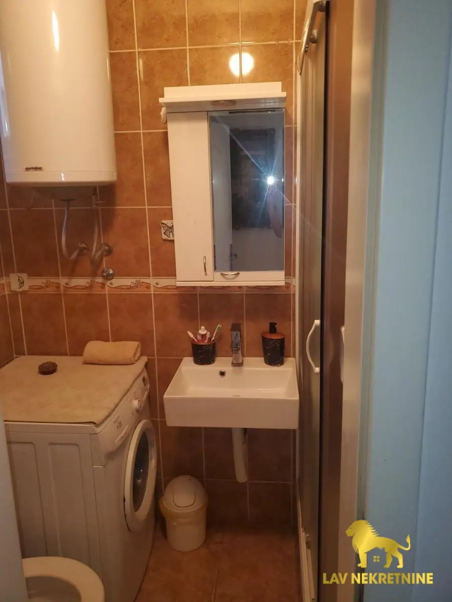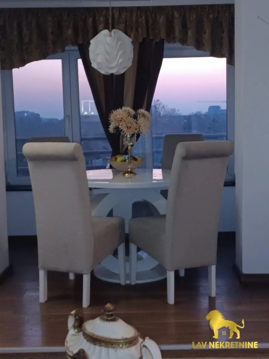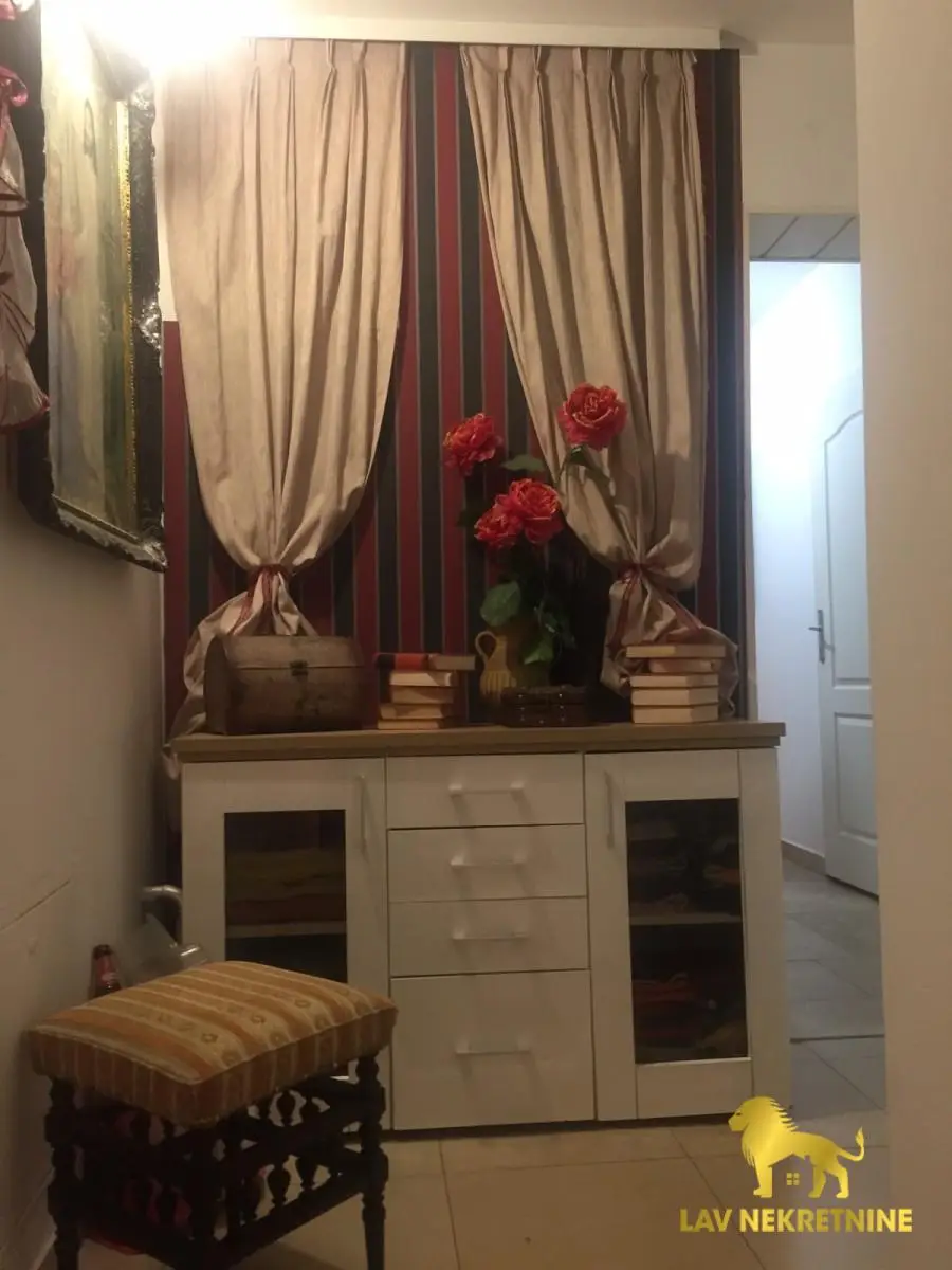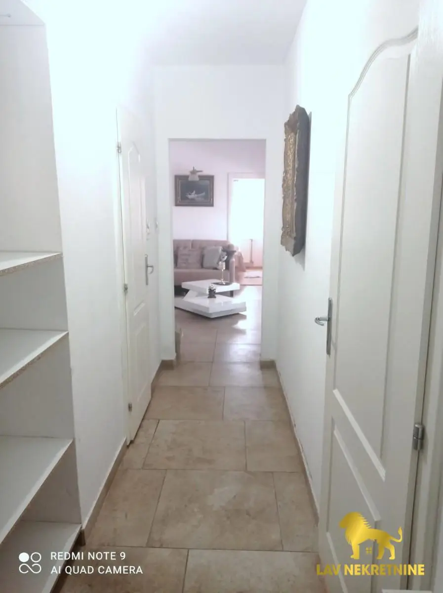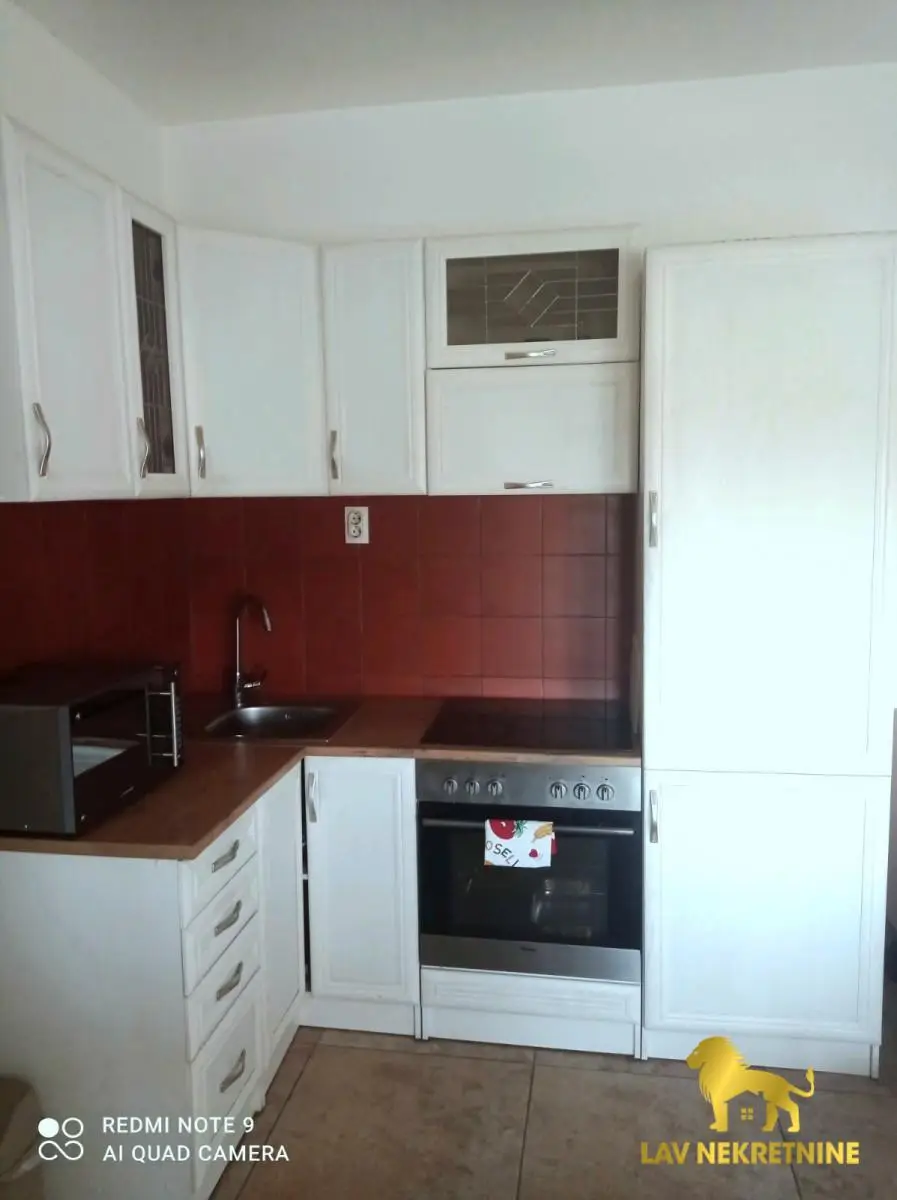 Stan se prodaje kompletno opremljen sa nameštajem i kuhinjom sa ugradnim elementima i belom tehnikom.