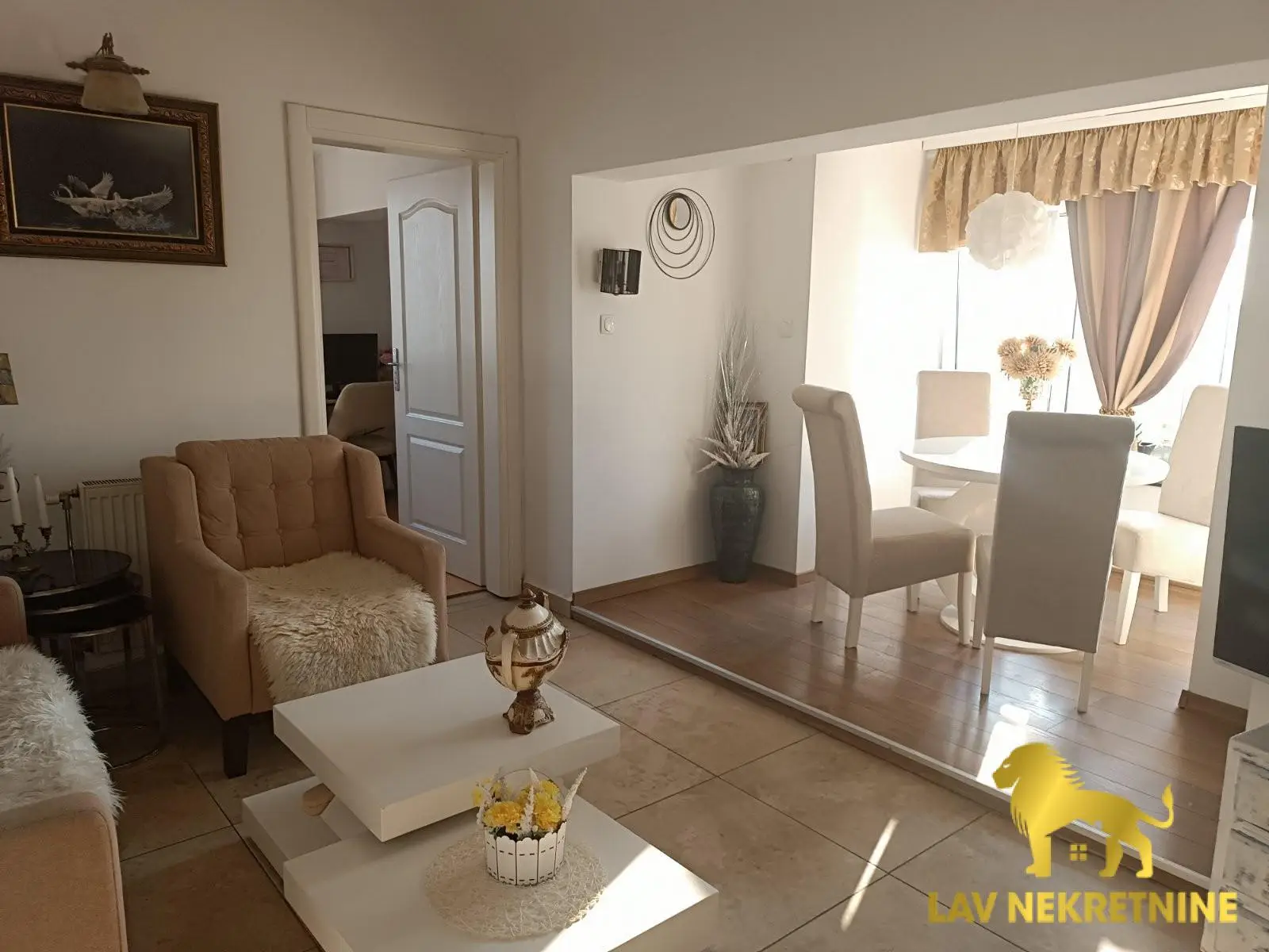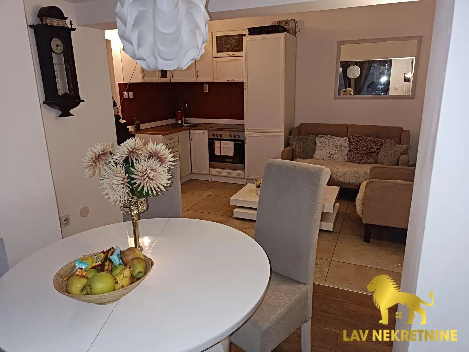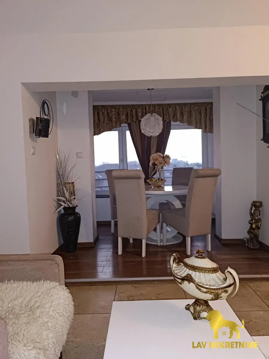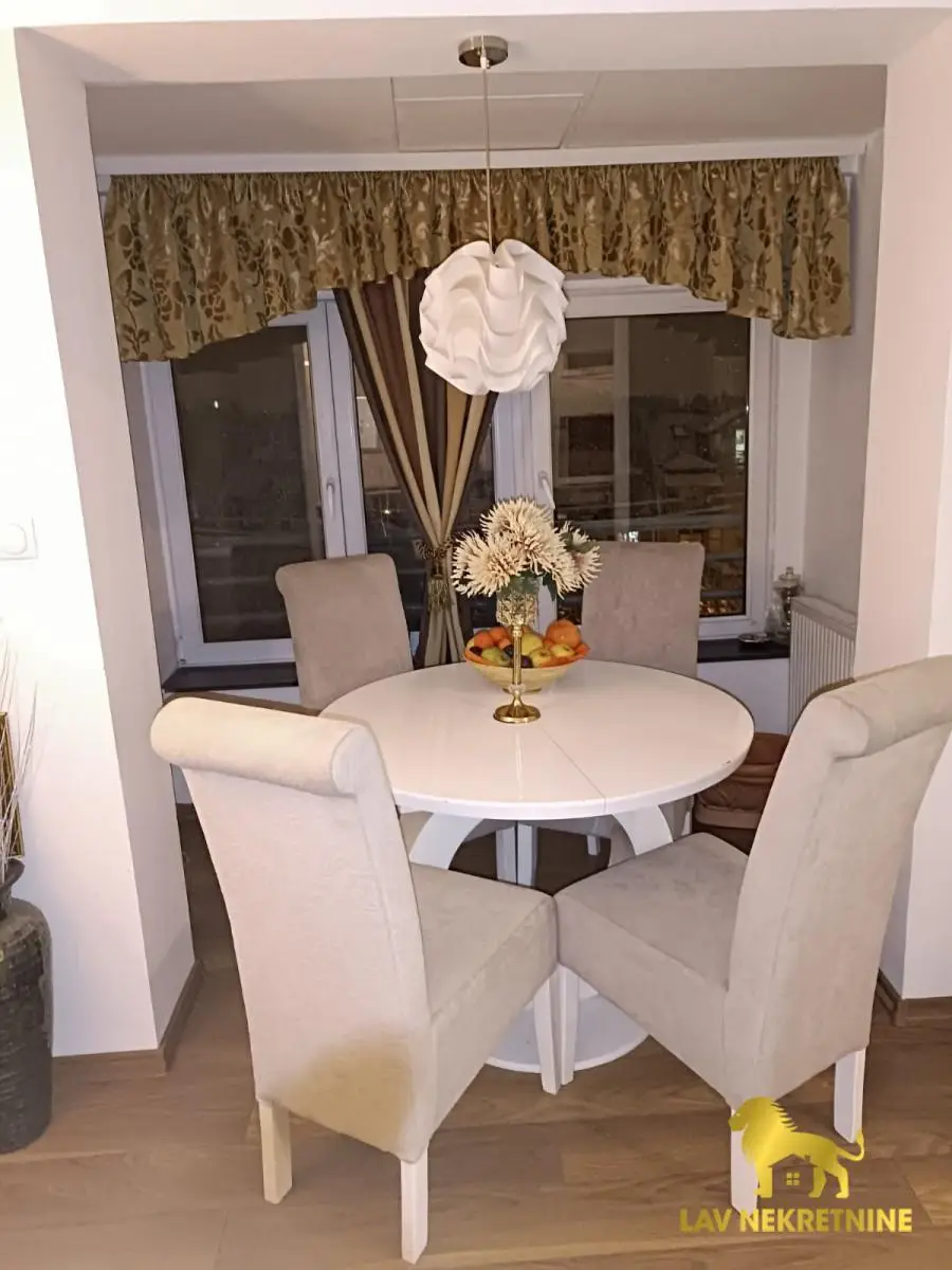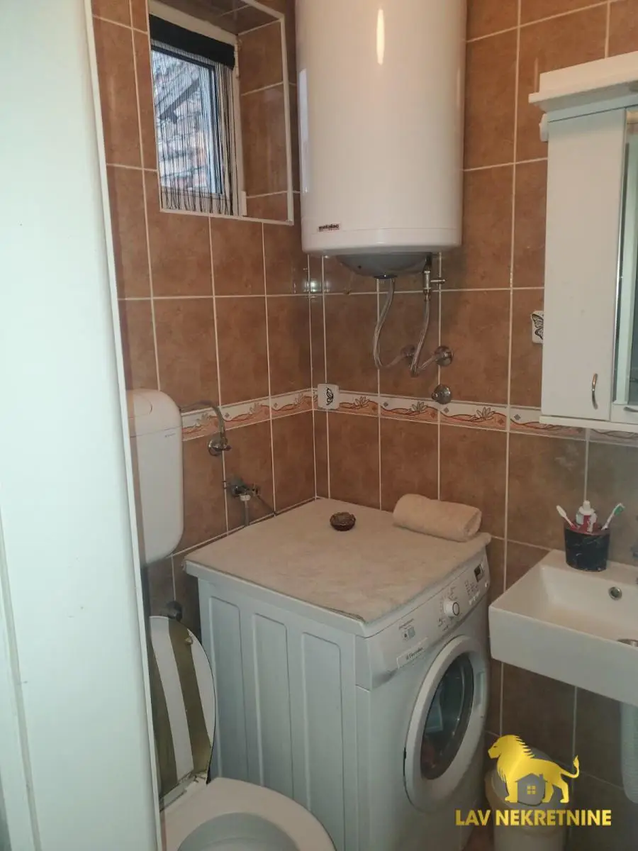 Stan se prodaje kompletno opremljen sa nameštajem i kuhinjom sa ugradnim elementima i belom tehnikom.