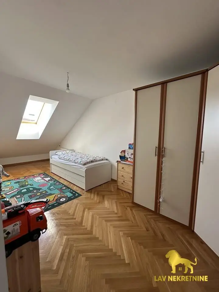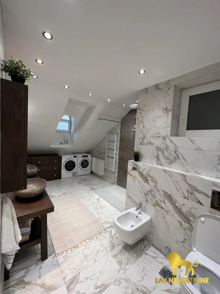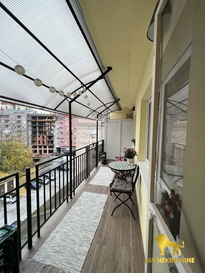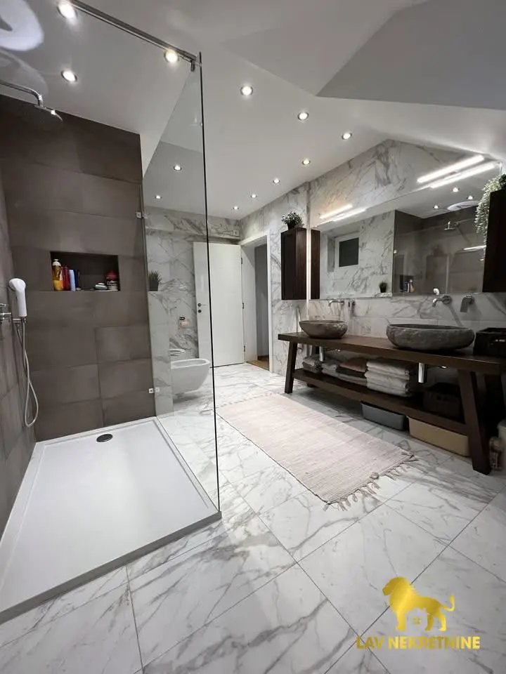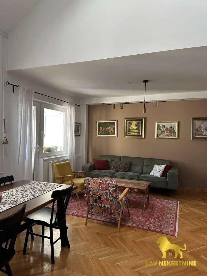 Cara Dusana, petosoban stan na dva nivoa. U donjoj etazi visina plafona je 6m. Postoji mogucnost kupovine dva parking me