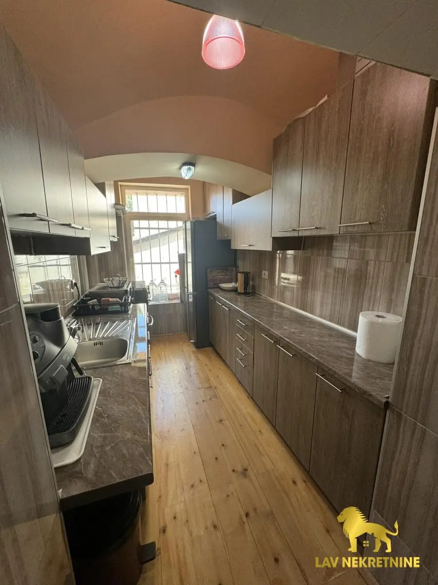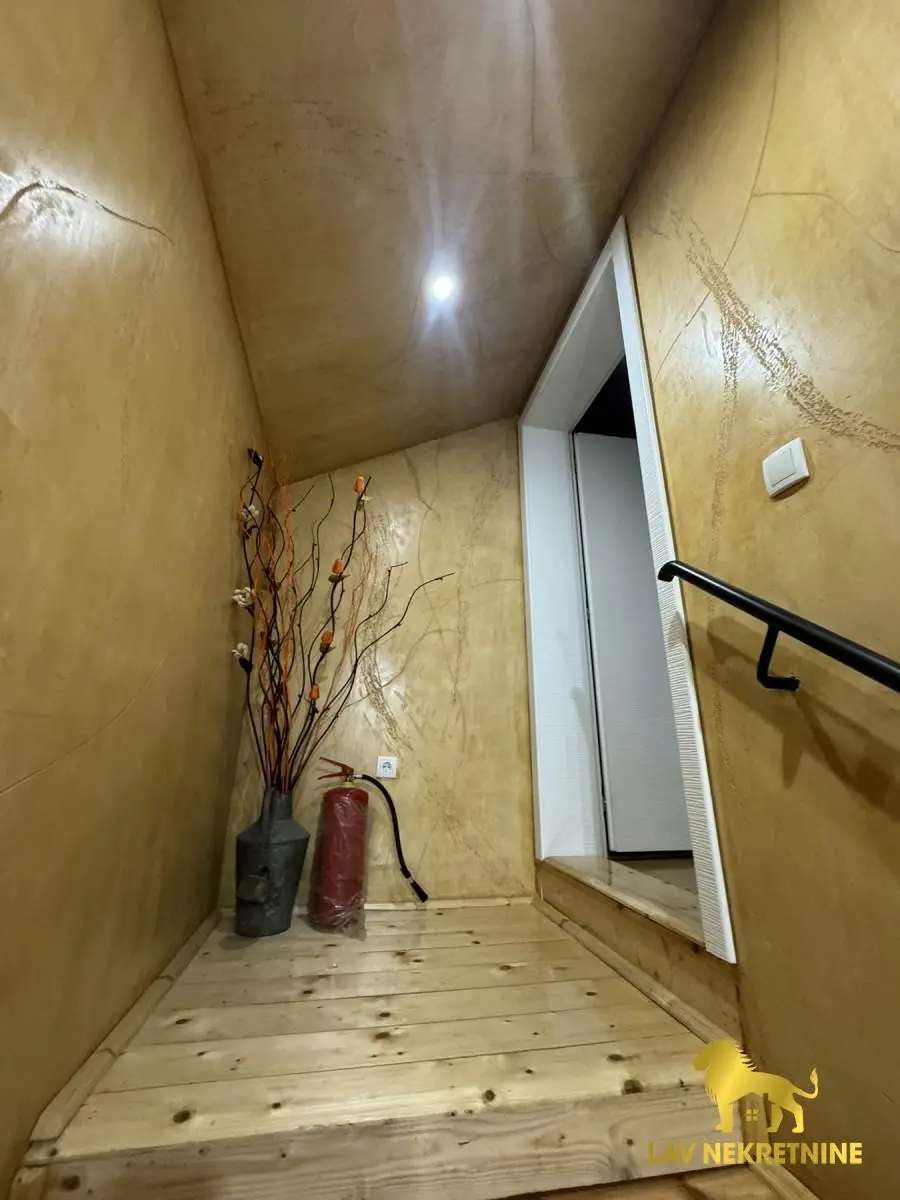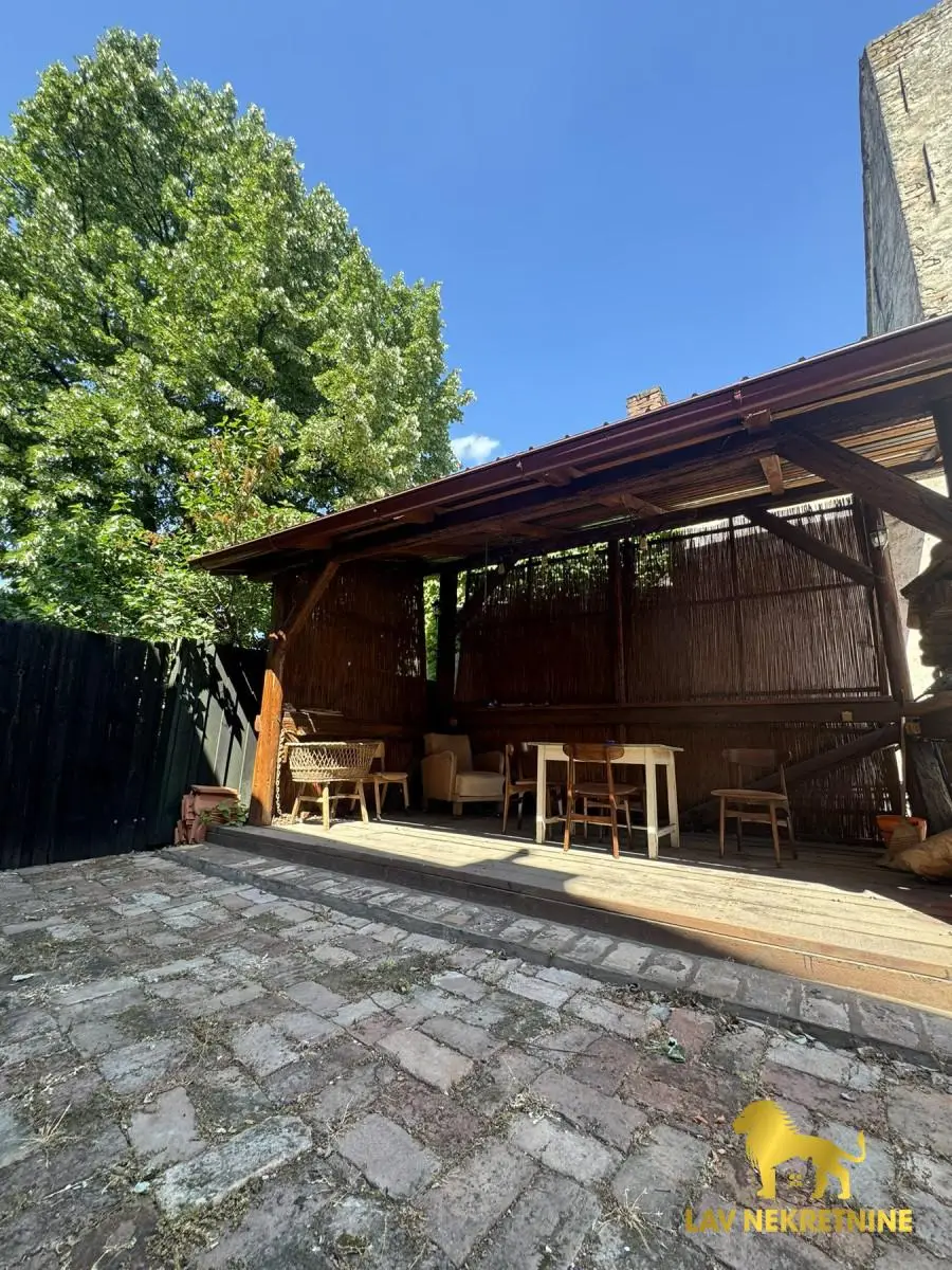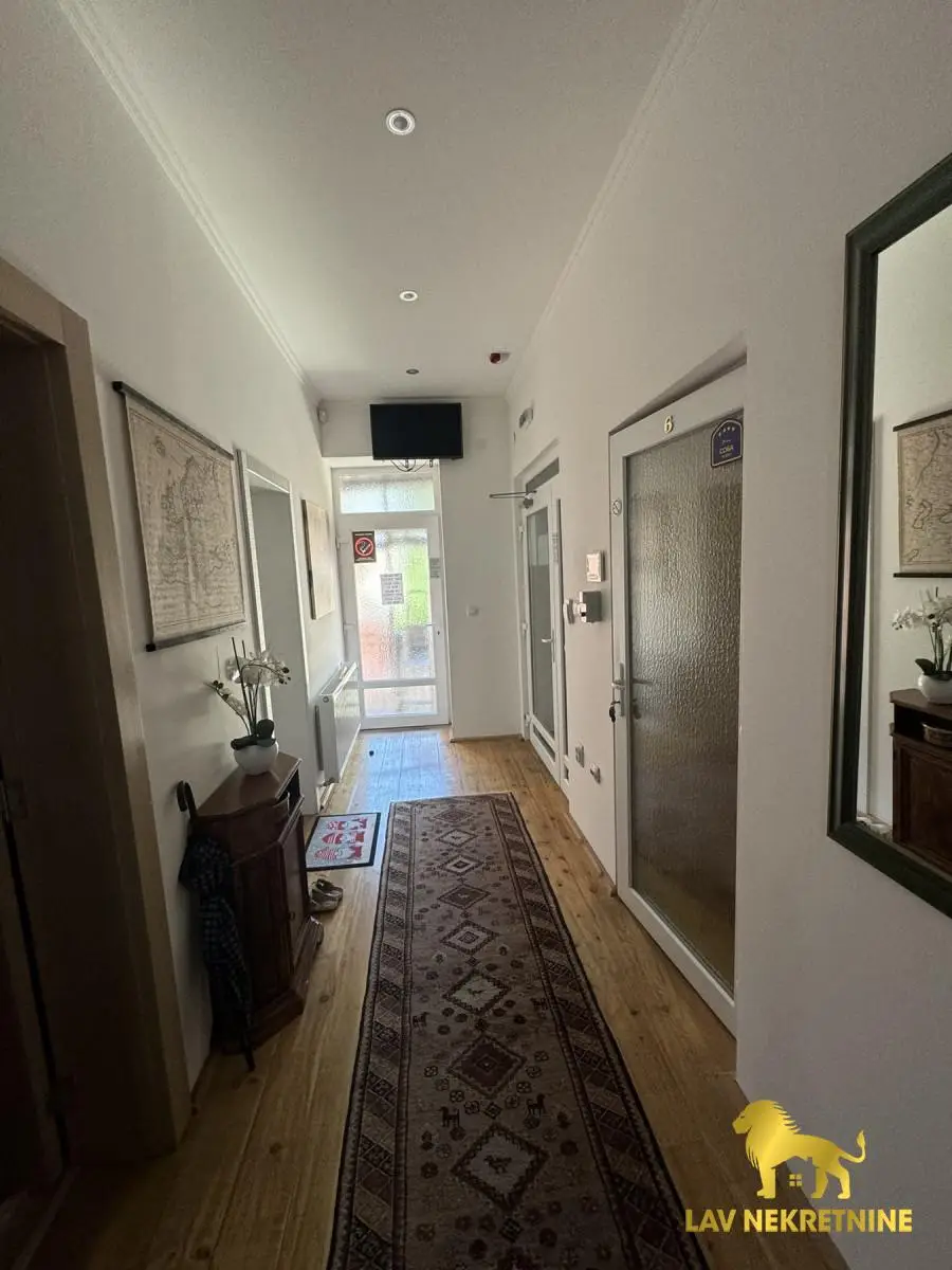 Ceo prostor je uknjižen. Stan od 206m2, stan od 49m2 i garsonjera od 23m2. Stan od 206m2 ima galeriju od 30m2 iznad, koja je takođe sređena za stanovanje. Parking mesta u dvorištu zgrade, kao i letnjikovac.