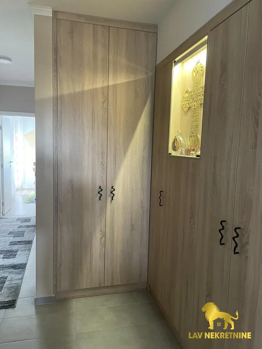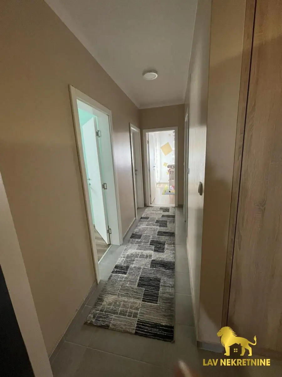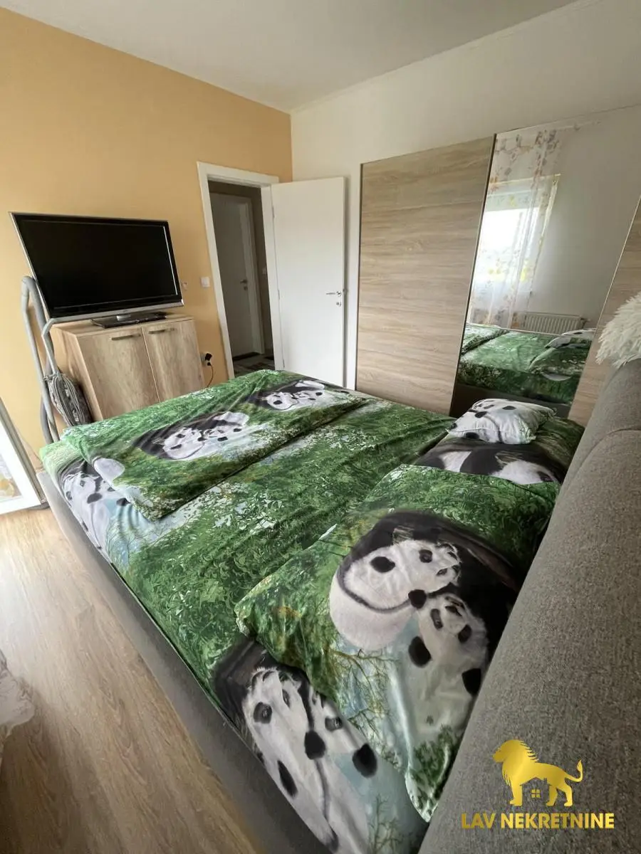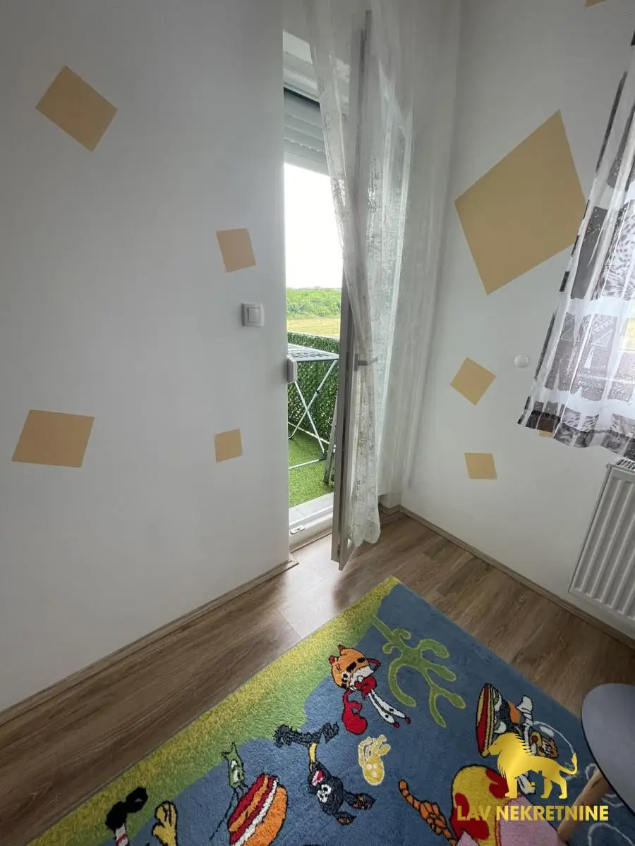 NA PRODAJU!!!Cetvorosoban trostrano orijentisan stan,u mirnom delu grada Novog Sada sa pogledom na Frusku Goru,nalazi se sam na prvom spratu novoizgradjene urbane vile koja ima samo dva sprata.Uknjizen,po listu nepokretnosti je povrsine 76 m2.Stan se prodaje sa ful opremljenoscu novom tehnikom i novim namestajem,svojim parking mestom koje je obelezeno rampom sa elektronskim podizanjem i spustanjem,poseduje dve terase,prostran dnevni boravak sa trpezarijom i kuhinjom,komforan deganzman,kupatilo i tri spavace sobe od koje dve izlaze na terasu.U blizini se nalaze osnovna skola,dom zdravlja,prodavnica,vrtic,reka Dunav sa kejom za setnju i voznju biciklom.Takodje u blizini je trening centar FK Vojvodine.Grejanje je regulisano sopstvenim toplotnim pumpama,koje iziskuju niske troskove samo u sezoni grejanja.Ove godine je stavljenja nova klima marke Bosh koja je jos pod garancijom,kao i sva bela tehnika koja je takodje iste marke.Internet Wf,ima linija za fiksni telefon,kao i tri televizora sa kablovskim MTS operaterom.