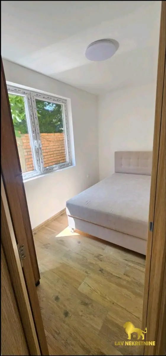 Izdaje se nov, namešten stan u kuči. Na prizemlju, jednosoban od 34m2, useljiv odmah. Dvoriste je uredjeno sa ogradom i travnjakom. Podno grejanje, klima, parking i dvorište.