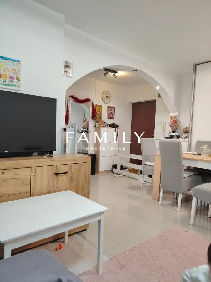 Na prodaju je lepo uređen i kompletno renoviran dvosoban stan površine 53 m², smešten na drugom spratu zgrade sa liftom, u mirnoj ulici na Novom Naselju, svega 20 metara od šetališta. Zgrada iz 1999. godine okružena je zelenilom i nudi prijatno i mirno okruženje, idealno za porodični život. Stan je temeljno renoviran pre četiri godine – zamenjene su vodovodne i kanalizacione instalacije, postavljeni novi podovi, uređeni zidovi i stolarija, tako da je nekretnina bez dodatnih ulaganja. Funkcionalan raspored obuhvata prostran i svetao dnevni boravak, udobnu spavaću sobu, veliku odvojenu kuhinju i komforno kupatilo. Posebnu vrednost daje prelepa terasa, koja nije uračunata u ukupnu kvadraturu stana i predstavlja savršen kutak za odmor. Stanu pripada i ostava od oko 7 m² na tavanu, kao i zajednička biciklana. Zgrada poseduje centralno grejanje, lift, interfon, video nadzor, kablovsku televiziju, internet i klimu. Oko zgrade ima dovoljno parking mesta, a pristup je bez prepreka, što je pogodno za porodice sa malom decom i osobe sa smanjenom pokretljivošću. U neposrednoj blizini nalaze se prodavnice, pekare, restorani, kafići i autobuske linije, što ovu nekretninu čini izuzetnom prilikom za miran i kvalitetan život na jednoj od najtraženijih lokacija na Novom Naselju. Cena: 154500e (sa uračunatom agencijskom provizijom od 3%) Za više informacija pozvati: 063663641 *** Family Nekretnine doo, upisan u REG POSREDNIKA 1708*** www. familynekretnine.rs Radnička 2a, Novi Sad