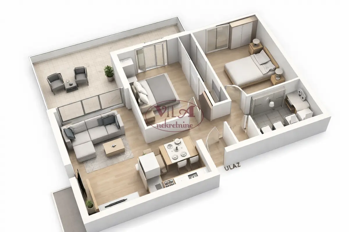Prodaje se odličan trosoban stan u manjoj zgradi, na samoj granici Novog Sada i Veternika u lepoj i širokoj ulici, blizu svih urbanih sadržaja. Stan se nalazi na drugom spratu urbane vile, kvalitetno gradjene po svim standardima modernog i komfornog stanovanja. Grejanje je podno na gas sa kalorimetrima. Stan ima dnevnu sobu i dve spavaće sobe, kupatilo, predsoblje i kuhinju koja je povezana sa dnevnom sobom i dve terase. Postoji mogućnost i pripajanja stanu veće krovne terase, po želji kupca. Investitor je siguran i pouzdan sa svom urednom dokumentacijom i dozvolama i za kupce prvog stana, može se ostvariti povrat Pdv-a od 10%.Rok završetka izgradnje je predvidjen za oktobar 2026. godine.Vredi pogledati, odlična nekretnina.Tel 065/424 55 77 i 064/6586099. Više fotografija na našem sajtu.