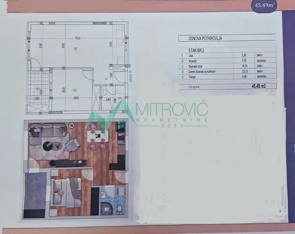 46m2, u lepom delu Adica