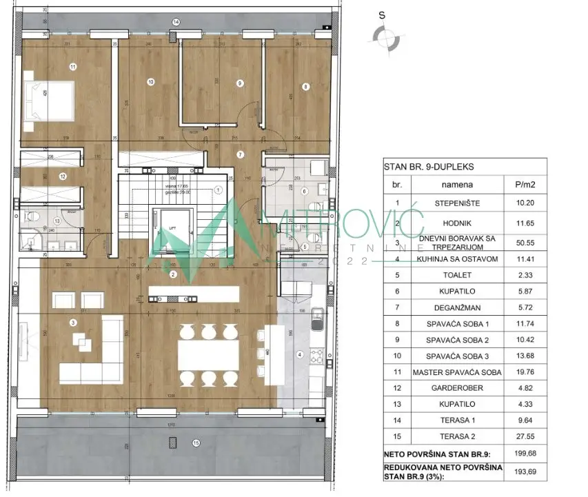 Južni Telep-Useljiv Petosoban Dupleks 210 m2 sa svojim Liftom,Garažnim Mestom i gratis krovnom Terasom od 220 m2 u blizini Bulevara Patrijarha Pavla…