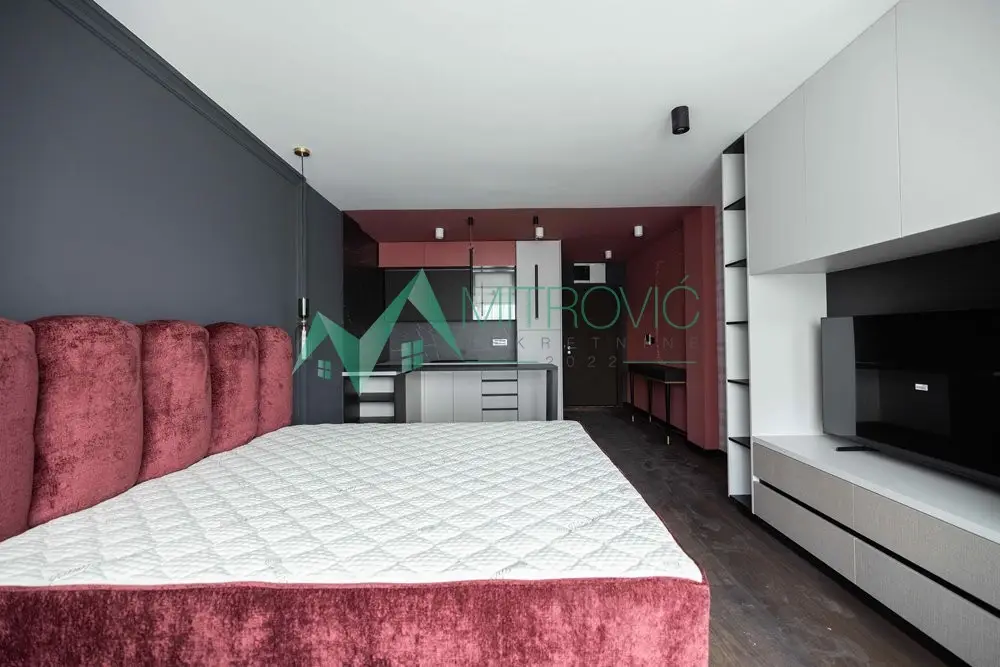 Novi Sad, Sajam - Predstavaljamo odličnu garsonjeru u sklopu moderne zgrade od renomiranog investitora. Prodaje se sa kompletnim novim nameštajem sa fotografija. Sjajna investicija - odličan izbor za kupce koji traže stan za dnevni najam. Mogućnost korišćenja usluge recepcije i razrađenog sistema za zakup apartmana radi lakše organizacije i veće dobiti. U objektu će se nalaziti spa centar, teretana, vešeraj...na raspolaganju vlasnicima tj. korisnicima stanova uz mesečnu naknadu. A vaši gosti će moći da uživaju u ovim pogodnostima - a vaš apartman će biti konkurentniji na tržištu! Odlična lokacija! Blizina Sajma, Medicinskog fakulteta, škole, vrtića, banke, supermarketa... Kao i kompletnog sadržaja za svakodnevno normalno funkcionisanje. Odlična povezanost gradskim autobuskim linijama (linije 3, 5, 8, 11). Ovaj stan nalazi se na I spratu stambene zgrade sa liftom (visina drugog sprata u prirodi). Kompletan objekat kvalitetno izgrađen, i posebna pažnja posvećena modernom dizajnu. Objekat zidan kvalitetnim termo blokovima, dok su se pregradni zidovi između stanova radili po principu otežanih blokova sa poboljšanom zvučnom izolacijom. Dodatna termoizolacija urađena od stirodura na samoj fasadi, ali i na zidovima koji dele stan od hodnika zgrade. Svi stanovi imaju modularne, staklene prekidače i utičnice sa implementiranim instalacijama uz savremene nodove. Ugrađena PVC šestokomorna stolarija nemačkog renomiranog proizvođača i opremljena troslojnim niskoemisionim staklima sa argonskim punjenjem, a na njima roletne sa elektromotorom i lepo estetski odrađenim tasterima/prekidačima. Sigurnosna ulazna vrata Invent trezor sa zaštitnom čeličnom oblogom preko celog krila. Hrastov troslojni tarket-parket sa prirodnom teksturom. Sobna vrata rađena od furniranog medijapana sa magnetnom bravom. Keramika i kompletne sanitarije renomiranih španskih i italijanskih proizvođača. Poseduje klima uređaj. Uknjižen. A za kupce prve nekretnine će biti moguć povrat PDV-a. Kontakt: 0693831003