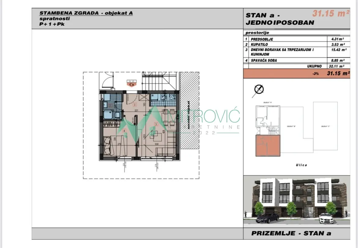 Na samoj granici sa Telepom, u blizini Bulevara Patrijarha Pavla, smeštena je zgrada sa malim brojem stanova, spratnosti pr+1+pk. Odličan kvalitet gradnje i opreme, modernog izgleda, sa portalima velikih profila. Grejanje na toplotne pumpe. Pored garaža-stana dostupni su i redovni jednoiposobni od 38m2 do 41m2 i manji dvoiposobni od 49m2. Završetak gradnje jun 2026.godine. U cenu je uključena posrednička nadoknada od 3%. Za dodatne informacije pozvati na broj 0621701819