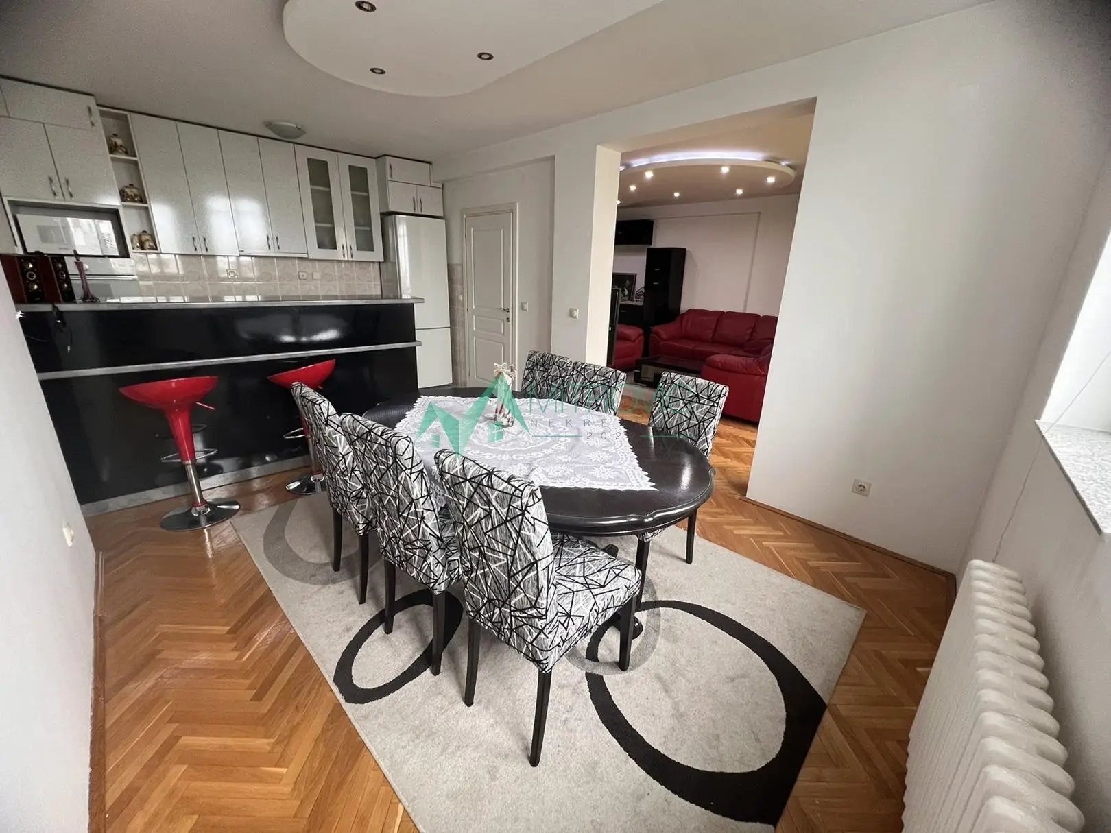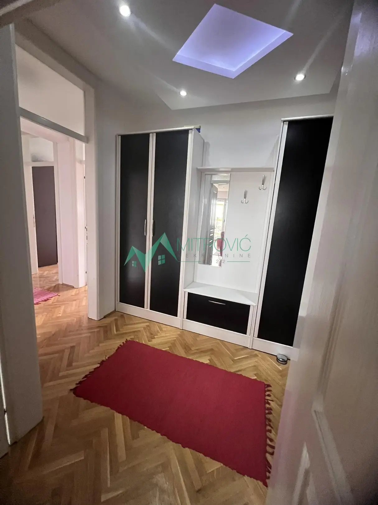 Namešten trosoban stan idealan za porodično stanovanje. Iz hodnika se ulazi u sve prostorije. Stan sadrži prostorije sledećeg rasporeda: prostran dnevni boravak sa izdvojenom kuhinjom i trpezarijom, dve spavaće sobe, dva kupatila(jedno sa kadom, drugo sa tuš kabinom), dve terase od kojih je jedna zatvorena i dve ostave. Izlaz na jednu terasu je iz dnevne sobe, izlaz na drugu terasu iz obe spavaće sobe. Stan se prodaje kompletno namešten. U stanu su uradjeni spušteni plafoni i halogenska rasveta. Nalazi na V spratu zgrade sa dva lifta. Pozicija zgrade na vrlo atraktivnom mestu za porodično stanovanje. Kontakt 069/383-1007