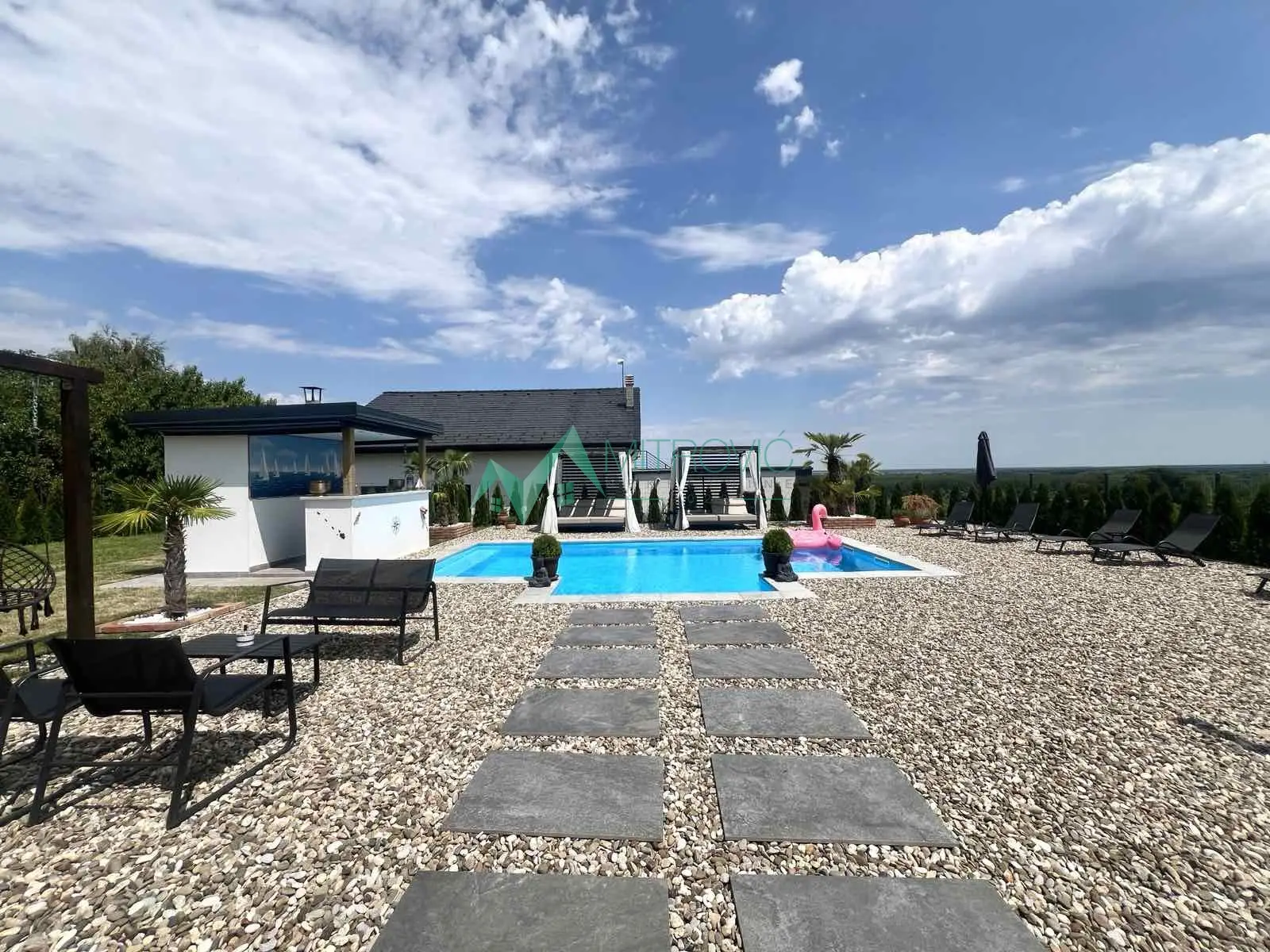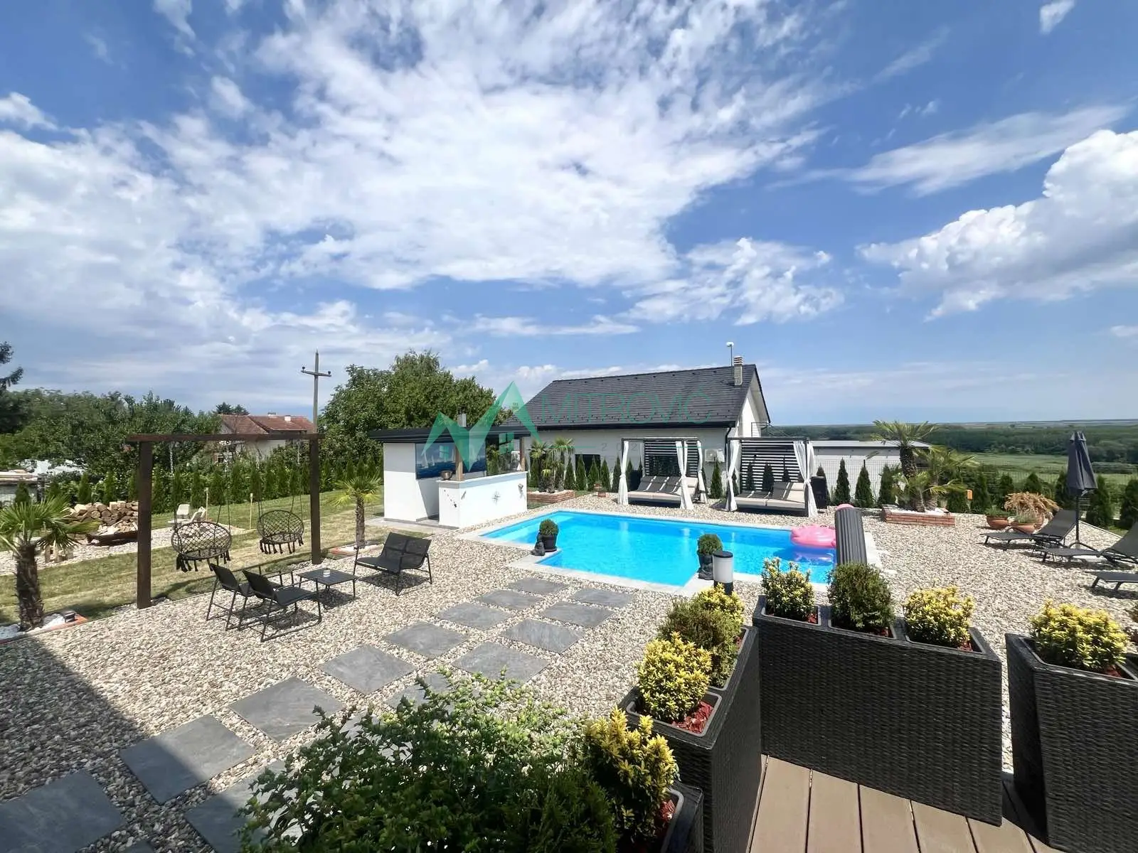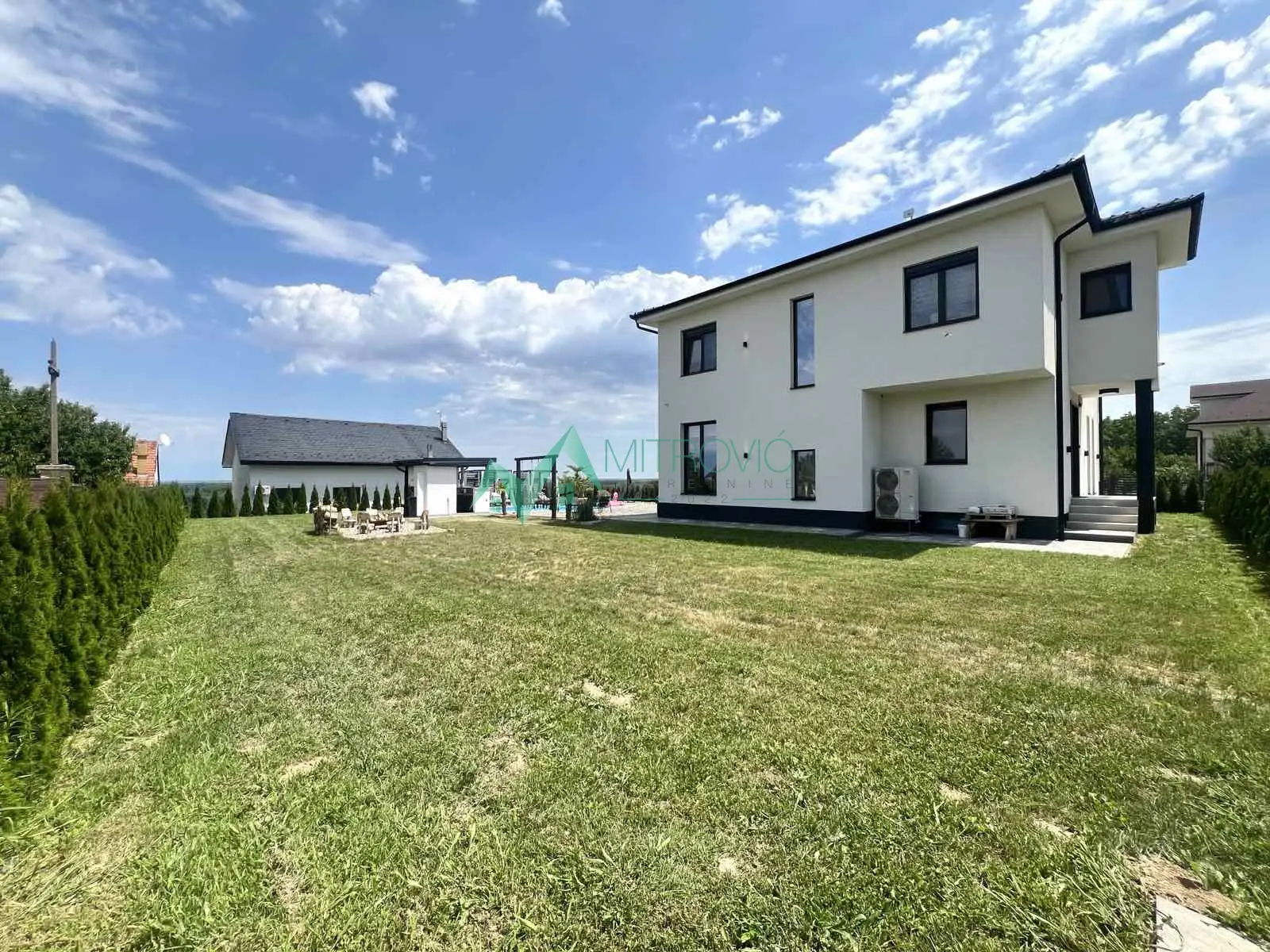 Ekskluzivna prodaja nove moderne kuće od 360m2 na svega 15ak minuta od centra grada na Fruškoj gori. Uređen plac površine 1035m2, sa bazenom 8x4, letnja kuhinja sa toaletom, obezbeđen video nadzorom, alarmom i sistemom kap po kap za zalivanje biljnih kultura. Kuću čine etaže suteren/prizemlje/sprat sa osnovom od 120m2. Savremenog je koncepta, moderne opremljenosti, kvalitetne gradnje, izuzetno osvetljena, funkcionalna i komforna. Suteren čine 3 prostorije, od kojih je jedna u funkciji teretane i hladna ostava kao vinski podrum. Prizemlje je open space koncepta sa ulaznim hodnikom, toaletom, kuhinjom i dnevnim boravkom sa izlazom na panoramsku terasu i zadnje dvorište. Na spratu su još jedno kupatilo sa kadom i tušem, master soba sa sopstvenim kupatilom, garderoberom i kancelarijom i dodatne 3 spavaće sobe. Centralna klimatizacija i podno grejanje na toplotnu pumpu.