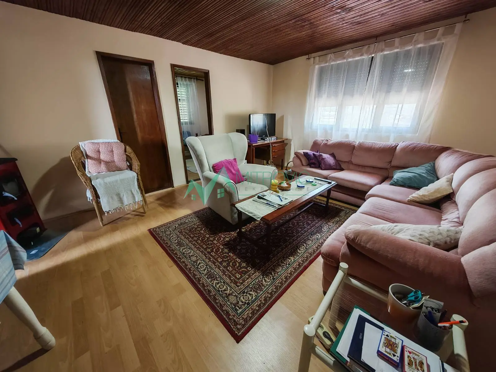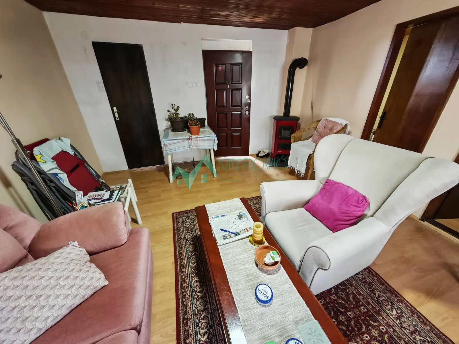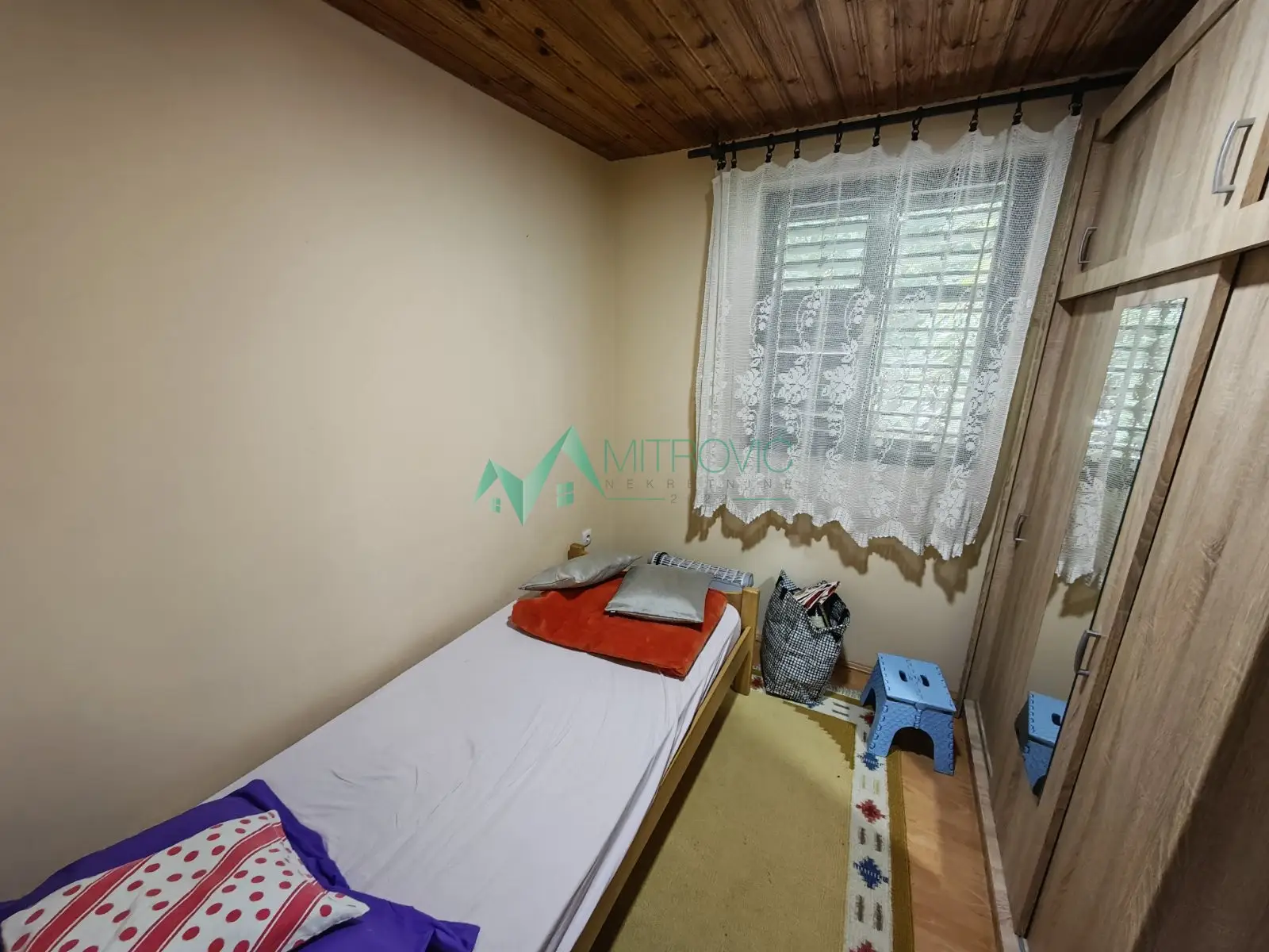 Na prodaju kuća u vikend naselju Banstol, opština Inđija. Nalazi se na 230 m nadmorske visine, okruženje poznato po ruži vetrova. Od puta za Čortanovce i mesne autobuske stanice udaljena oko 500m, put pod tucanikom koji je redovno održavan. Površina: oko 90 m², 54m2 legalizovano (ostalo prijavljeno za legalizaciju). Površina placa: 6,58a. Grejanje na dve inverter klime kao i drva pomoću šporeta „Smederevac" u kuhinji i peći u dnevnoj sobi. Prizemlje: hodnik,kupatilo, kuhinja/trepezarija, špajz, velika otvorena terasa ispred 4,10x3.20m. sprat: WC, dve spavaće sobe, dnevna soba i terasa na ulazu. tavan: mogućnost lake dogradnje u potkrovlje. Na placu se još nalaze: šupa, parking, česma, rezervoar sa vodom i voćnjak. Kuća je sa ulazima okrenuta ka jugo-istoku, prozor dnevne sobe je okrenut ka severo-zapadu, tako da je leti „debela" hladovina, a zimi hladnoća dolazi samo na prozor dnevne sobe. Više nego namešteno. Voda mesna - na placu ukopan i rezervar od 5 kubika rezervne vode. Struja trofazna, novi kablovi. Odvod – septička. Materijal gradnje: termo blokovi, kuća komplet izolovana stiroporom 12cm. Parking – ulazna ograda sa kliznim kapijama za tri auta. Od starog puta Beograd-Novi Sad udaljena oko 1.500m. Auto put Novi Sad – Beograd udaljen 12.5 km Beograd je udaljen 65 km. starim putem Novi Sad je udaljen 20 km. Plac ima blagi nagib i ograđen je. Postoji mogućnost uvođenja gasa. Uknjiženo 1/1. Nema bilo kakvog tereta.. U cenu je uračunata posrednička naknada u iznosu od 3 %. Za više informacija i zakazivanje razgledanja pozovite 069/383-1007.