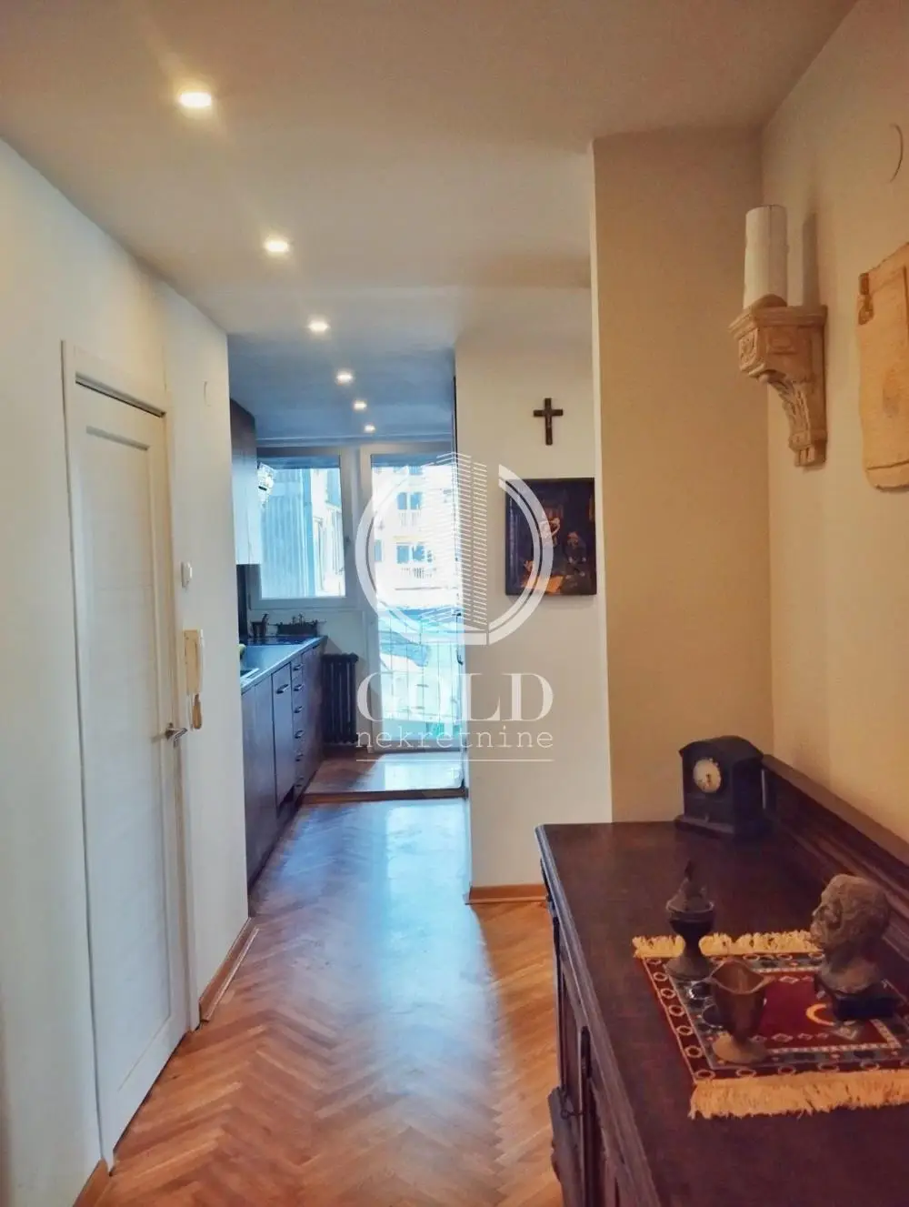 Prodajemo stan- Liman- Trosoban Agencija Gold nekretnine, predstavlja trosoban stan na prodaju na Limanu IV, Novi Sad. Prodajemo trosoban stan na lokaciji Liman 4 u izuzetnoj i mirnoj ulici, nalazi se na prvom spratu stambene zgrade u kvalitetnoj starijoj gradnji. Stan je kompletno renoviran pre dve godine, promenjene su instalacije, unutrašnja i spoljašnja stolarija, renovirano je kupatilo i kuhinja. Rapored stana- poseduje dve ostave, jedna ima ventilaciju trenutno su u funkciji garderobera, kuhinja sa prirodnom ventilacijom, zatim veliki dnevni boravak sa izlaskom na funkcionalnu terasu sa pogledom na zelenilo, zatim drugi hodnik sa ulaskom u manju spavaću sobu koja je redovnih dimanezija i stane braćni krevet, vrata sa ulaskom u deganžman- kupatilo redovne veličine i velika spavaća soba ( na fotografijama deluje da je manjih dimenzija) sa izlaskom na zatvorenu terasu , u hodnicima postoje ugradni plakari, dosta prostora za odlaganje. Stan se knjiži na 86m2 s tim da su dve terase pretvorene u stambenu površinu, u stvarnosti poseduje oko 95m2. Postoji mogućnost da se napravi još jedna spavaća soba. Istakli bismo izuzetan položaj nekretnine, okruženost zelenilom, spratnost s obzirom na kvadraturu. Za više informacija i zakazivanje razgledanja nepokretnosti kontaktirajte: +381668442270 Cena nepokretnosti je oglašena bez posredničke naknade. Posrednička naknada agencije Gold nekretnine iznosi 3% koja se računa na ukupnu konačnu ugovorenu kupoprodajnu cenu nepokretnosti. Za sve dodatne informacije kontaktirajte nasu kancelariju-Gold nekretnine Novi Sad. Vaš siguran partner u svetu nekretnina Reg.posrednika br.1039