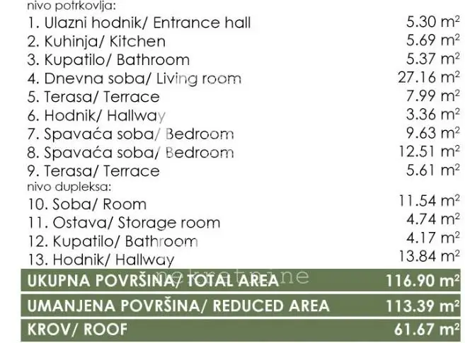 NOVOGRADNJA-ČETVOROSOBAN 114m2 SA KROVNOM TERASOM OD 70m2 ID#8878