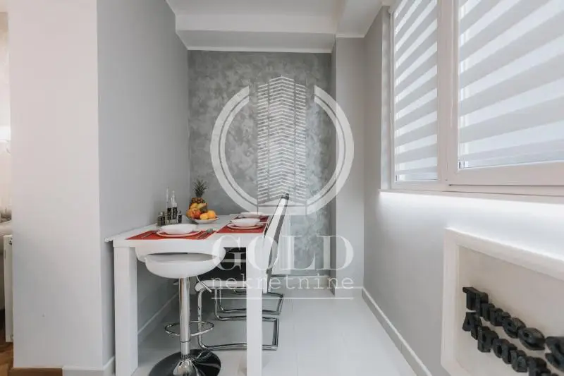 Stan na prodaju-Centar, Novi Sad Agencija Gold nekretnine, predstavlja jednoisposoban stan na prodaju u centru Novog Sada, udaljen svega 5 minuta hoda od pešačke zone. Fantastičan lux opremljen stan u Centru grada. Stan se prodaje sa svim nameštajem koji vidite na fotografijama. Stan je jednoiposobne stukture, sastoji se od dnevne sobe koja je spojena sa kuhinjom i trpezarijom, spavaće sobe i kupatila. Nalazi se na prvom spratu. Stan je na popularnoj lokaciji-Pored toga što je odličan za život pogodan je i kao investicija za mesečno i dnevno izdavanje. Boje u stanu i nameštaj su bez greške uklopljeni i sa stilom uređeni, čime se postiže osečaj ugodnosti, kao što na fotografijama možete primetiti. Topla preporuka. Za više informacija i zakazivanje razgledanja nepokretnosti kontaktirajte: +381631899153 Cena nepokretnosti je oglašena bez posredničke naknade. Posrednička naknada agencije Gold nekretnine iznosi 3% koja se računa na ukupnu konačnu ugovorenu kupoprodajnu cenu nepokretnosti. Za sve dodatne informacije kontaktirajte nasu kancelariju-Gold nekretnine Novi Sad. Vaš siguran partner u svetu nekretnina Reg.posrednika br.1039