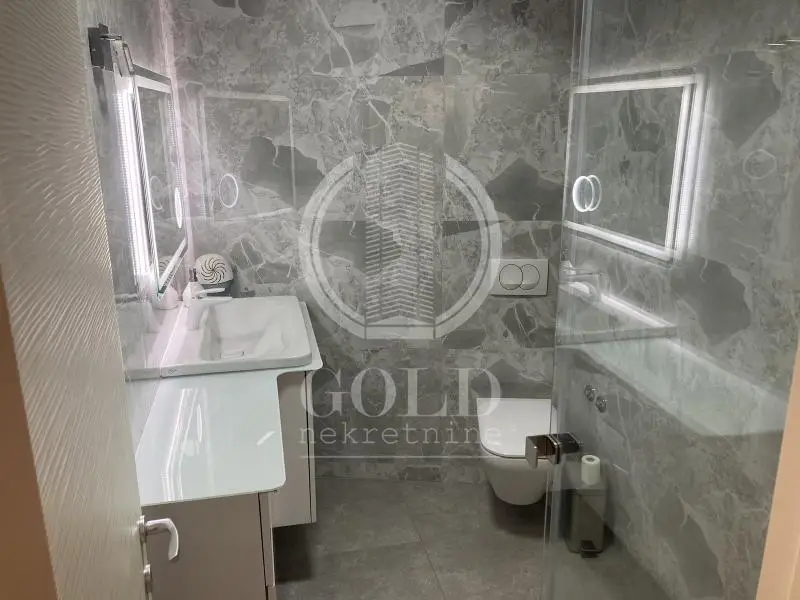 Izdajemo kompletno opremljen i odmah useljiv nov stan u Square Garden kompleksu. Stan je opremljen novim nameštajem, kuhinjom po meri sa mašinom …