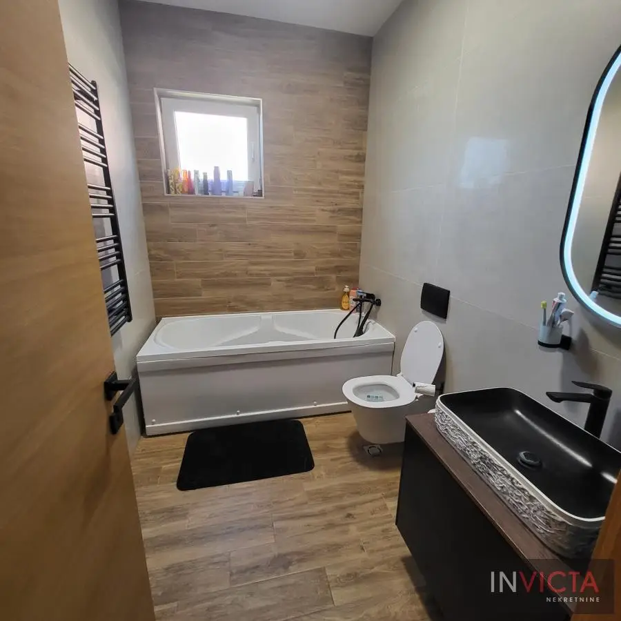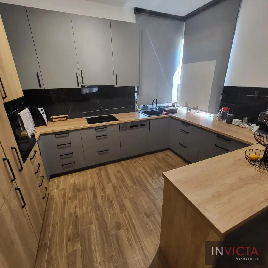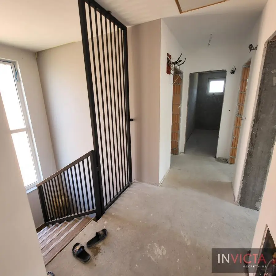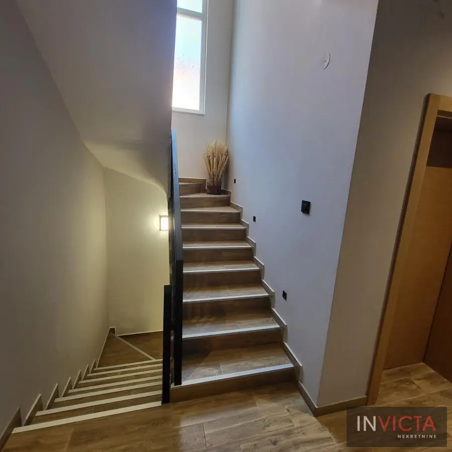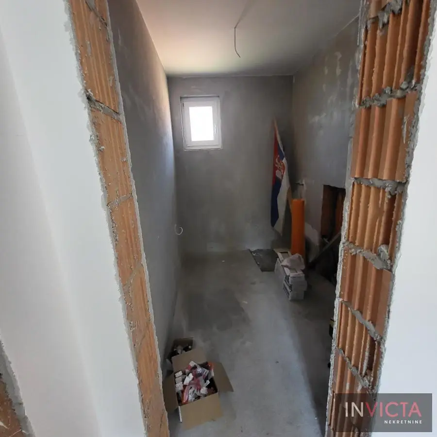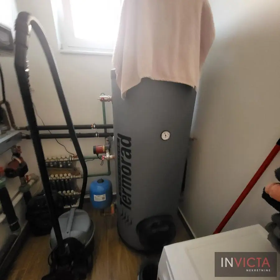 Nova, skoro nekorišćena, vrlo lepa, funkcionalnog rasporeda, porodična kuća stambene površine 267m2 raspoređenih u 3 etaže (Sut+PR+!) izgrađena na parceli površine 478m2 na potezu između Novog Sada i Veternika, na nepunih 4km od samog centra grada. U prizemnom delu je garaža koja ima vezu sa stambenim delom, tj. ulaznim hodnikom kuće. Iz hodnika je veza za gostinski toalet, ostavu-kotlarnicu, dve spavaće sobe , veće kupatilo, te prostrani dnevni boravak koji je povezan sa trrpezarijom i kuhinjom. U suterenu je nekoliko većih i manjih prostorija namenjenih za vešeraj, ostave i sl. Spratni deo je u sirovom stanju sa spremljenim materijalom da se ceo prostor finalno završi i dovede u upotrebno stanje u najkraćem roku. Na spratu su 4 spavaće sobe i dva kupatila. Roditeljska spavaća ima svoje kupatilo i garderober. Na spratu i velika terasa sa prelepim pogledom. Visina svih prostorija, pa i podrumskih je 3m, grejanje je rešeno putem toplotnih pumpi, na podovima kvalitetna keramika sa podnim grejanjem, klime, kvalitetna rasveta, ALU ulazna vrata i roletne, PVC spoljašnja stolarija., demit fasada debljine 10cm.Grejanje je putem toplotnih pumpi i trošak grejanja u zimskom periodu je oko cca, 100.-Eura/mesečno, tako da je kuća maksimalno energetski efikasna. .Mogućnost završetka gornje etaže u izvođenju vlasnika, iznos radova i materijala bi bio oko dodatnih cca 25.000.- Eura-..U sadašnjoj iskazanoj ceni je sadržana komplet kuhinja sa belom tehnikom, zavese, ugradni plakari. Uredna pravna dokumentacija, objekat bi bio odmah useljiv nakon isplate. Broj u Reg.posrednika 475.
