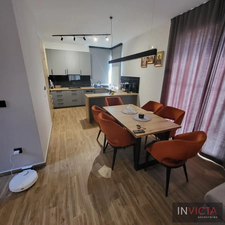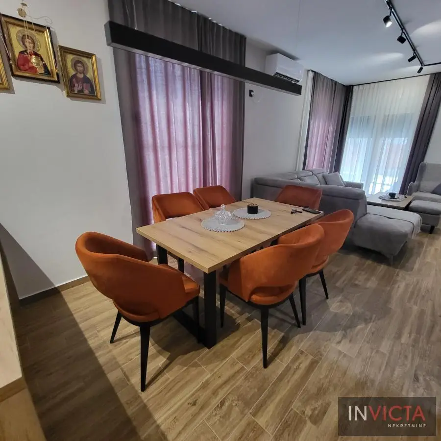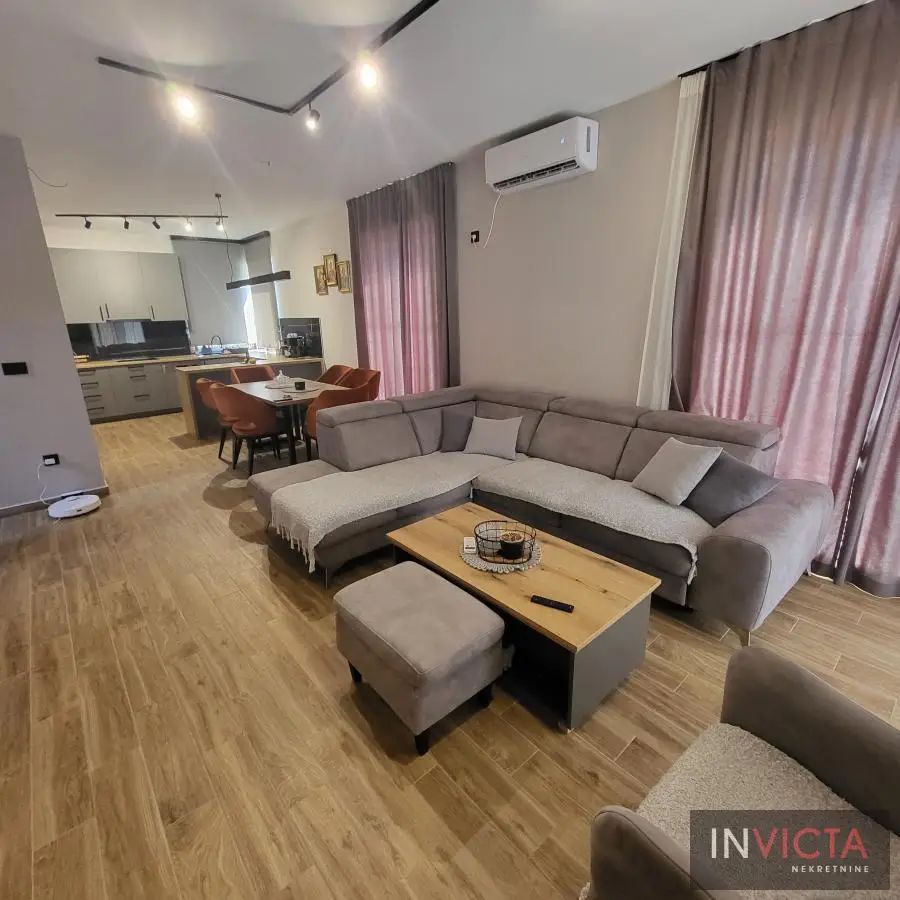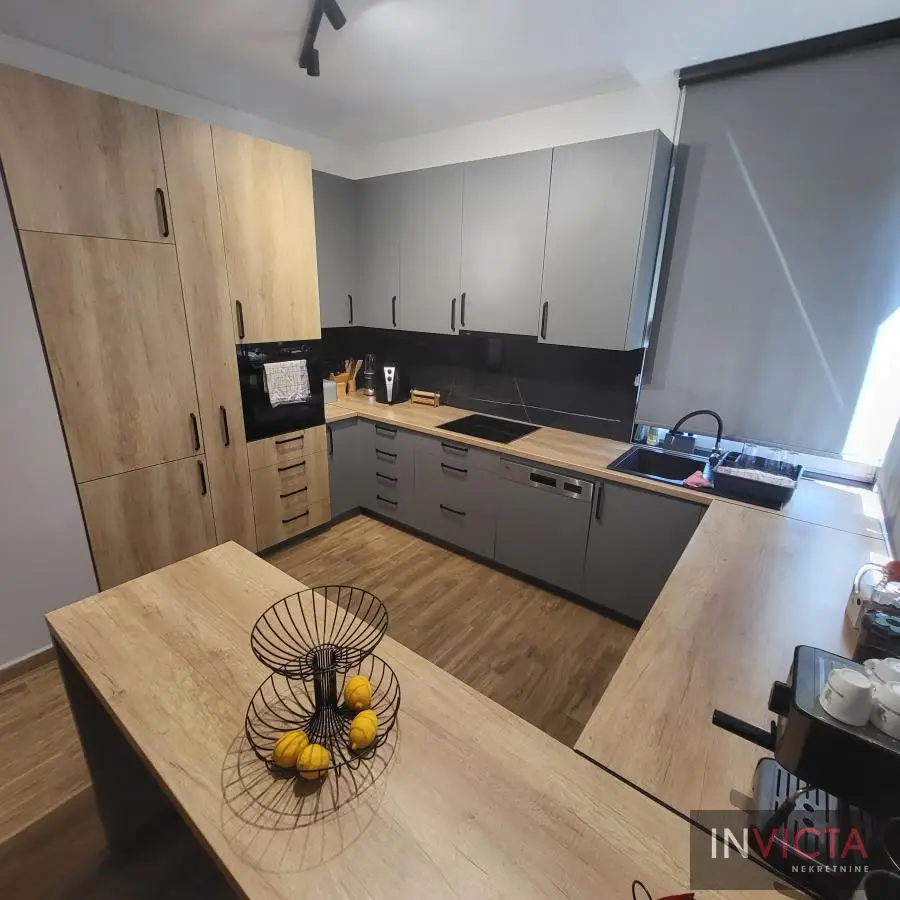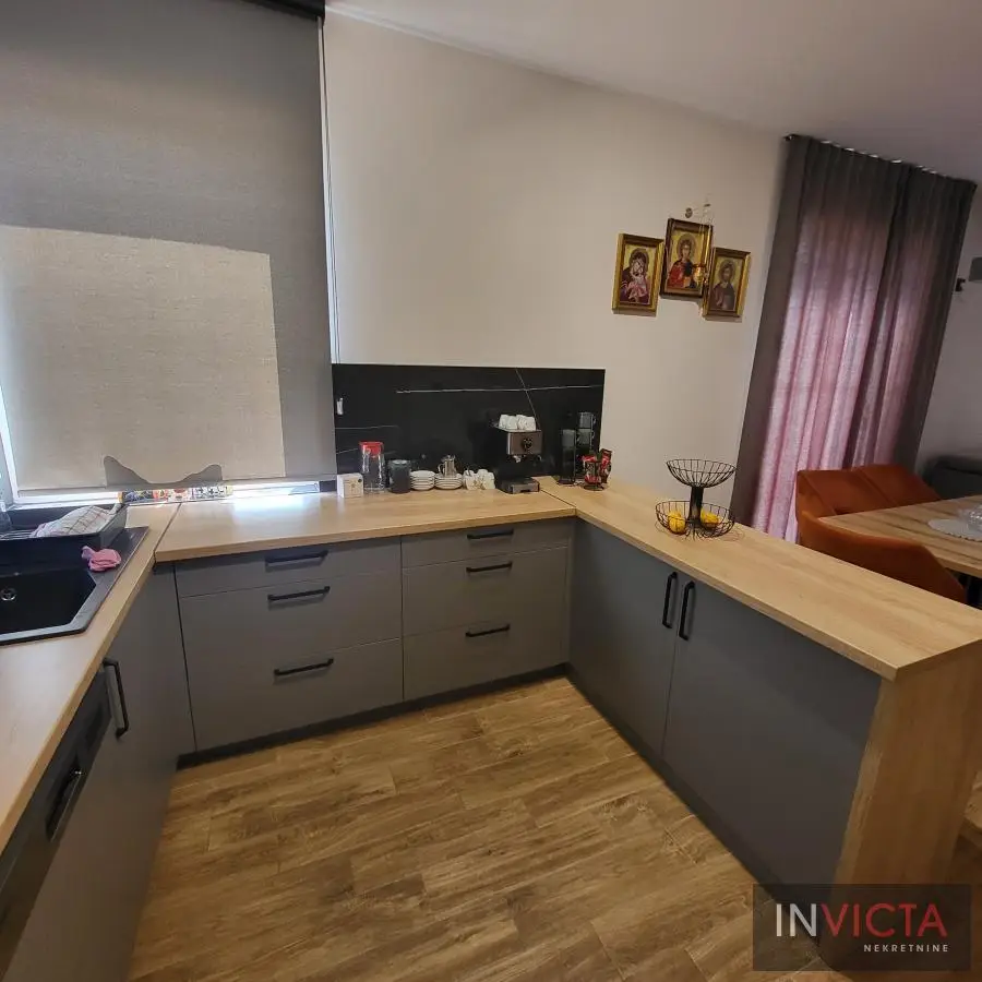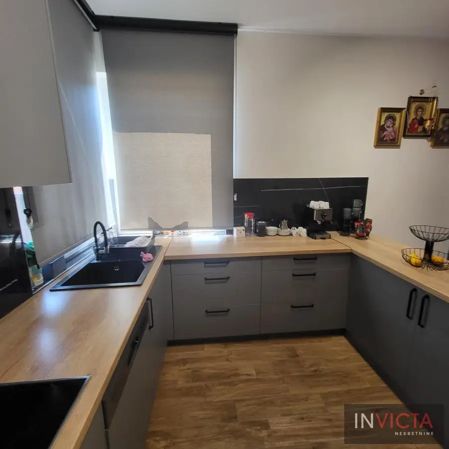 Nova, skoro nekorišćena, vrlo lepa, funkcionalnog rasporeda, porodična kuća stambene površine 267m2 raspoređenih u 3 etaže (Sut+PR+!) izgrađena na parceli površine 478m2 na potezu između Novog Sada i Veternika, na nepunih 4km od samog centra grada. U prizemnom delu je garaža koja ima vezu sa stambenim delom, tj. ulaznim hodnikom kuće. Iz hodnika je veza za gostinski toalet, ostavu-kotlarnicu, dve spavaće sobe , veće kupatilo, te prostrani dnevni boravak koji je povezan sa trrpezarijom i kuhinjom. U suterenu je nekoliko većih i manjih prostorija namenjenih za vešeraj, ostave i sl. Spratni deo je u sirovom stanju sa spremljenim materijalom da se ceo prostor finalno završi i dovede u upotrebno stanje u najkraćem roku. Na spratu su 4 spavaće sobe i dva kupatila. Roditeljska spavaća ima svoje kupatilo i garderober. Na spratu i velika terasa sa prelepim pogledom. Visina svih prostorija, pa i podrumskih je 3m, grejanje je rešeno putem toplotnih pumpi, na podovima kvalitetna keramika sa podnim grejanjem, klime, kvalitetna rasveta, ALU ulazna vrata i roletne, PVC spoljašnja stolarija., demit fasada debljine 10cm.Grejanje je putem toplotnih pumpi i trošak grejanja u zimskom periodu je oko cca, 100.-Eura/mesečno, tako da je kuća maksimalno energetski efikasna. .Mogućnost završetka gornje etaže u izvođenju vlasnika, iznos radova i materijala bi bio oko dodatnih cca 25.000.- Eura-..U sadašnjoj iskazanoj ceni je sadržana komplet kuhinja sa belom tehnikom, zavese, ugradni plakari. Uredna pravna dokumentacija, objekat bi bio odmah useljiv nakon isplate. Broj u Reg.posrednika 475.