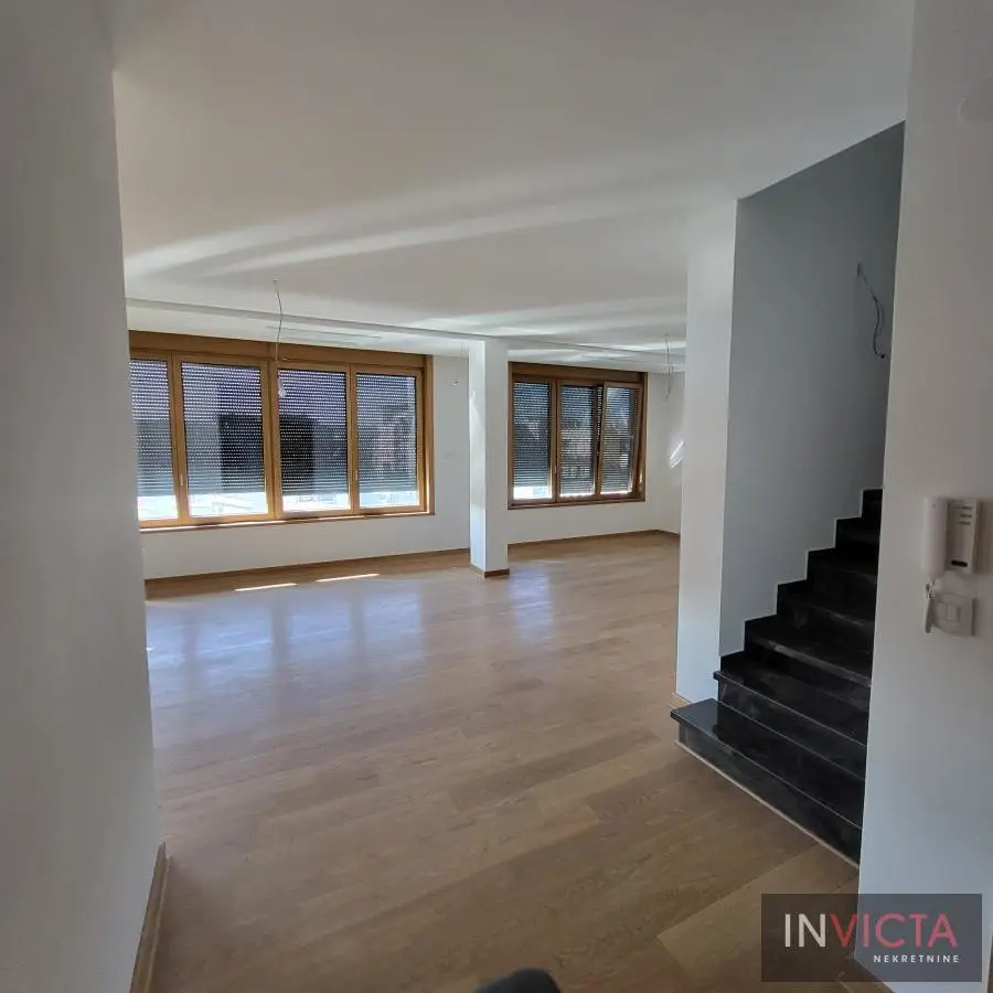 Pravi porodični lusuzan stan za uživanje, u dva nivoa, odlično lokacijski pozicioniran, na svega 5 min.laganog hoda od centra grada, pešačke zone, i dunavskog keja, takođe saobraćajno odlično povezan. Nalazi se u novoizgrađenom, veoma kvalitetnom stambenom objektu sa manjim brojem stanova. Na prvom nivou stana se nalaze, u odvojenom spavaćem delu, tri komforne spavaće sobe sa kupatilom i vešerajem, od kojih je jedna master, sa svojim kupatilom, Veliki dnevni boravak sa velikim staklenim portalima ka terasi u jednoj celini sa kuhinjom i trpezarijom. Na gornjoj etaži je veći studio, apartman sa kupatilom površine oko 40m2, sa vezom ka prelepoj krovnoj terasi površine nepunih 90m2 sa koje se pruža prelep panoramski pogled. Stan je opremljen najkvalitetnijom opremom (uvozna keramika velikog formata, spoljašnja stolarija je aluminijum-drvo, visina prostorija 3,10m). Objekat ima najvišu ocenu za energetsku efikasnost. Mogućnost kupovine garažnih mesta u suterenu objekta. U cenu je uključen PDV. Broj u Reg.posrednika:475.