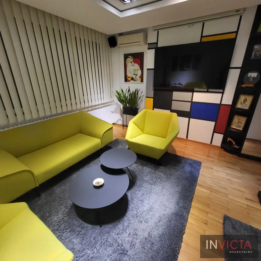 Atraktivan kancelarijski prostor na odličnoj lokaciji u neposrednoj blizini Bulevara oslobođenja, hotela Park, Novosadskog sajma, bolnice, na prometnoj, lako pristupačnoj, a ujedno za rad na tiho orijentisanoj strani sa dovoljno parking prostora i dve sopstvene garaže (2x14m2) u suterenu objekta. Sam kancelarijski prostor se nalazi na I spratu poslovne zgrade i u zasebnom je krilu poslovne zgrade. Sastoji se od 8 velikih kancelarija sa sopstvenom, moderno uređenom kuhinjom- mini restoranom, te dva sanitarna čvora. Prostor je u potpunosti renoviran i klimatizovan. Prostor je delimično opremljen nameštajem (komplet kuhinja, prijemni desk, ugradni ormari-elementi). Prostor je brzo useljiv. Izdaje se isključivo na duži vremenski period ozbiljnim zakupcima. Obavezan depozit u visini jedne mesečne zakupnine. Posrednička provizija u visini jedne mesečne zakupnine + PDV. Broj u Reg.posrednika 475.