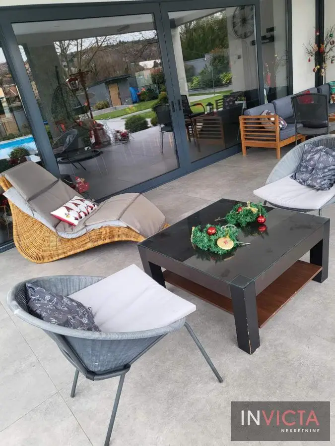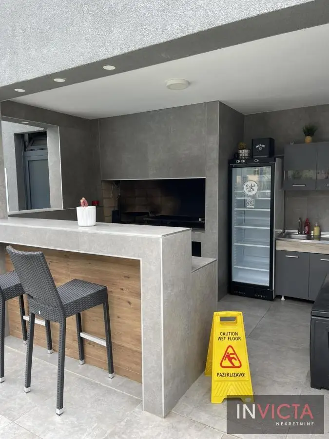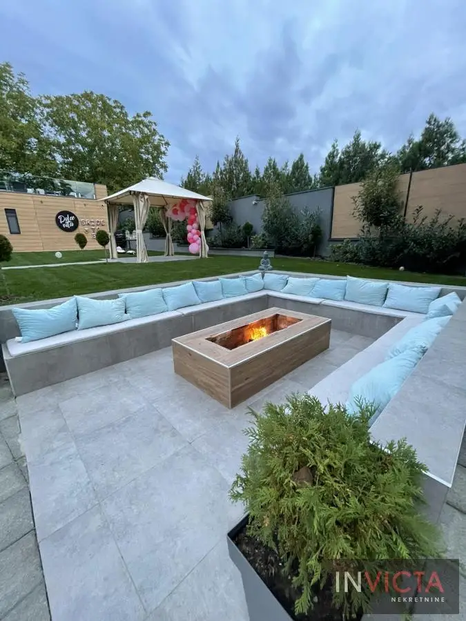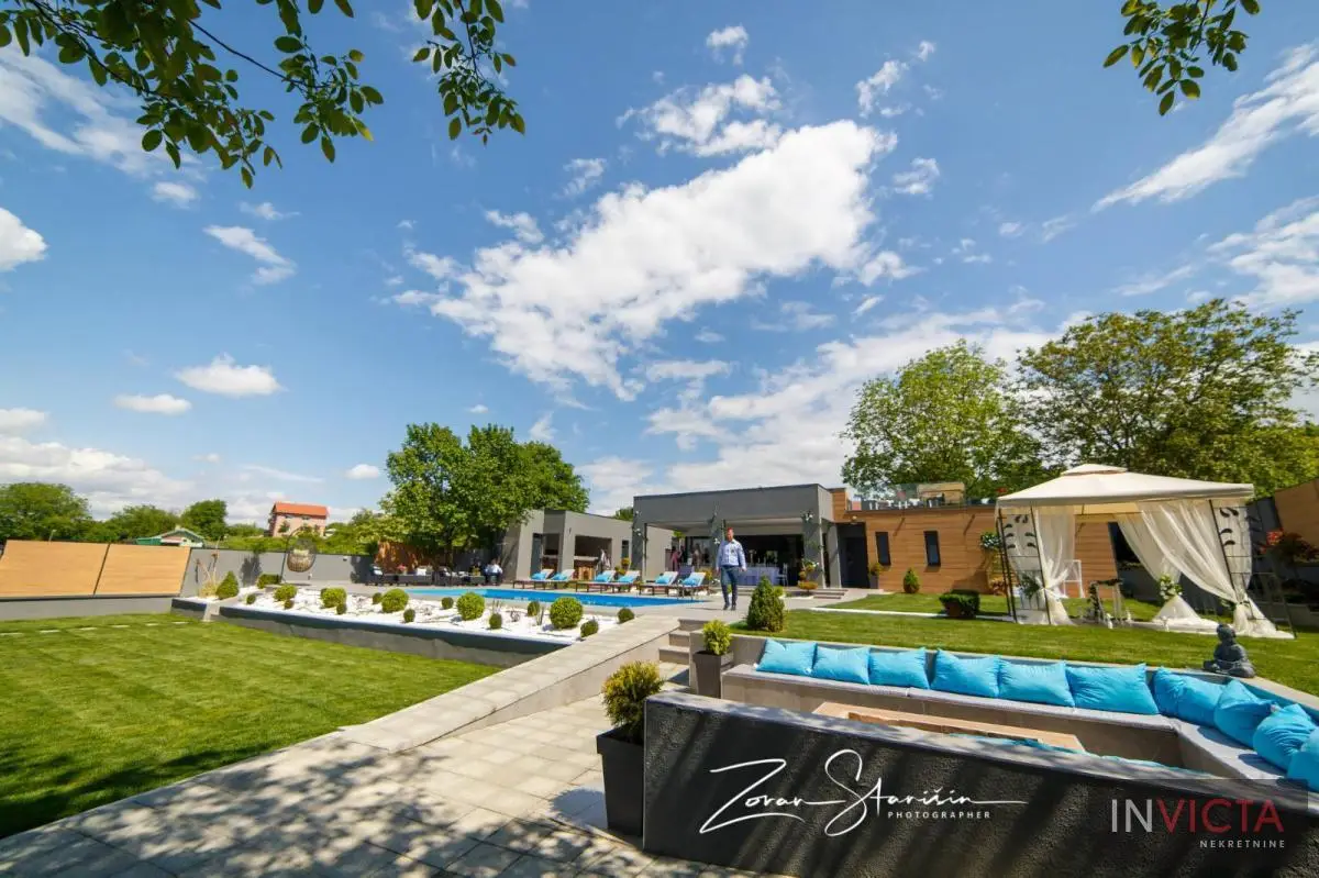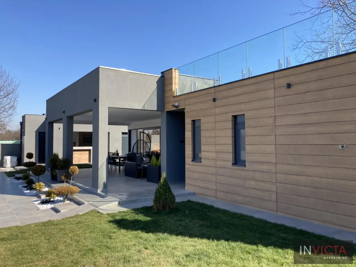 Na samo 10-tak min. lagane vožnje od centra N.Sada. u prelepom prirodnom okruženju na potezu između Sr.Kamenice i Petrovaradin, nova, luksuzna kuća sa pratećim sadržajem koji omogućava aktivan i ispunjen život u prirodi, nadomak grada.. Na prelep uređenoj i elegantno ozelenjenoj parceli površine 1100m2 m, nalazi se impozantan bazen, dečije igralište, otvoreno ložište za druženje uz mogućnost pripreme -pečenja hrane , odličnoi opremljen spoljni bar sa roštiljen i pećnicom za pečenje celih komada prasetine, jagnjetine, spoljni toalet, ostave. U samoj, moderno koncipiranoj kući se nalazi veći dnevni botavak sa trpezarijskim delom, povezan sa kuhinjom te velikom nadkrivenom terasom. U spavaćem delu su tri spavaće sobe sa kupatilom. Na krovu kuće-prelepa krovna terasa za uživanje sa pogledom na obronke Fruške gore. Parcela je u potpunosti ograđena, sa dovoljno parking mesta. Mali režijski troškovi, grejanje je podno, na struju. Izdaje se na duži vremenski period isključivo ozbiljnoj klijenteli. Broj u Reg.posrednika:475.