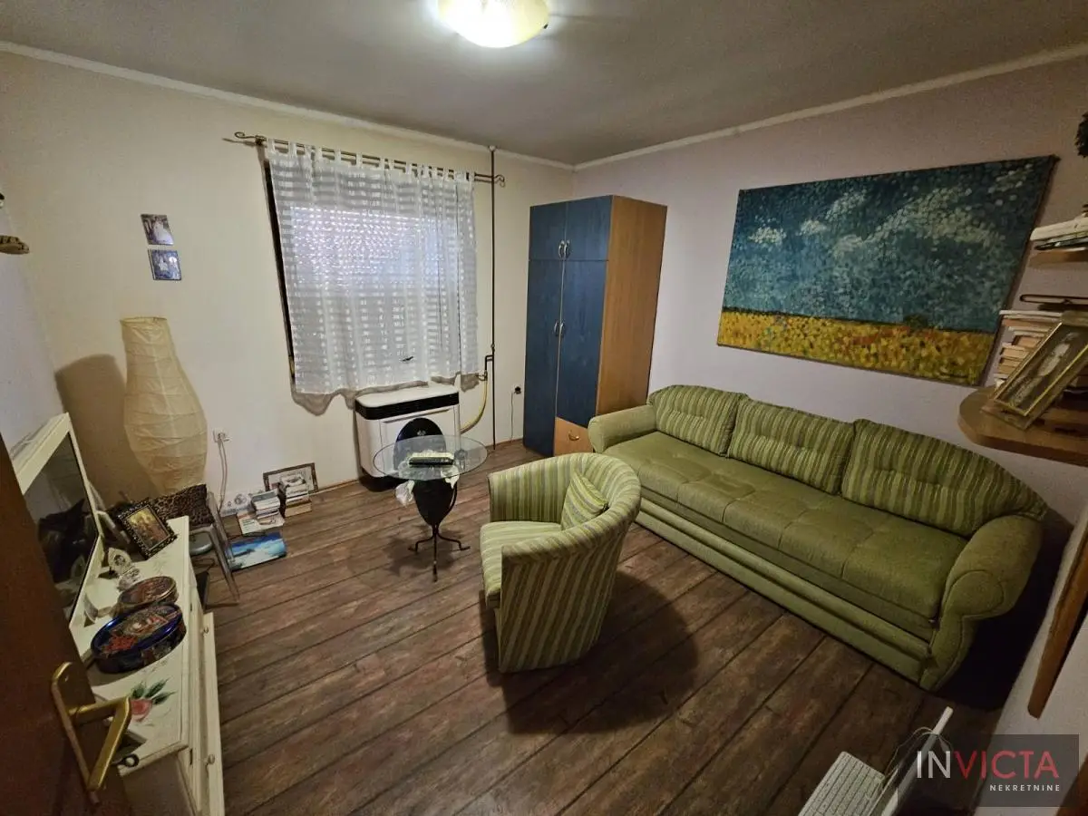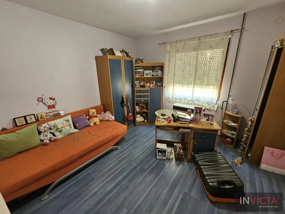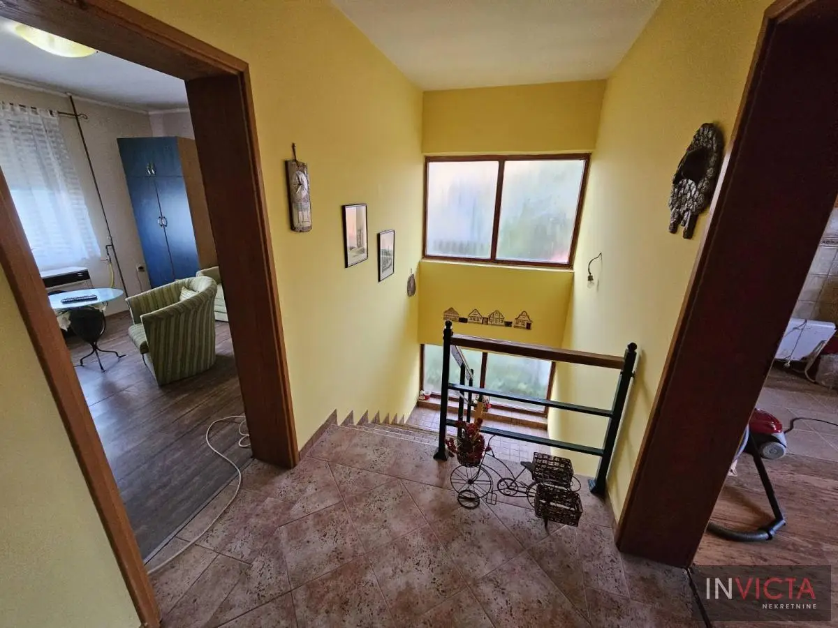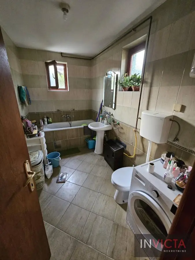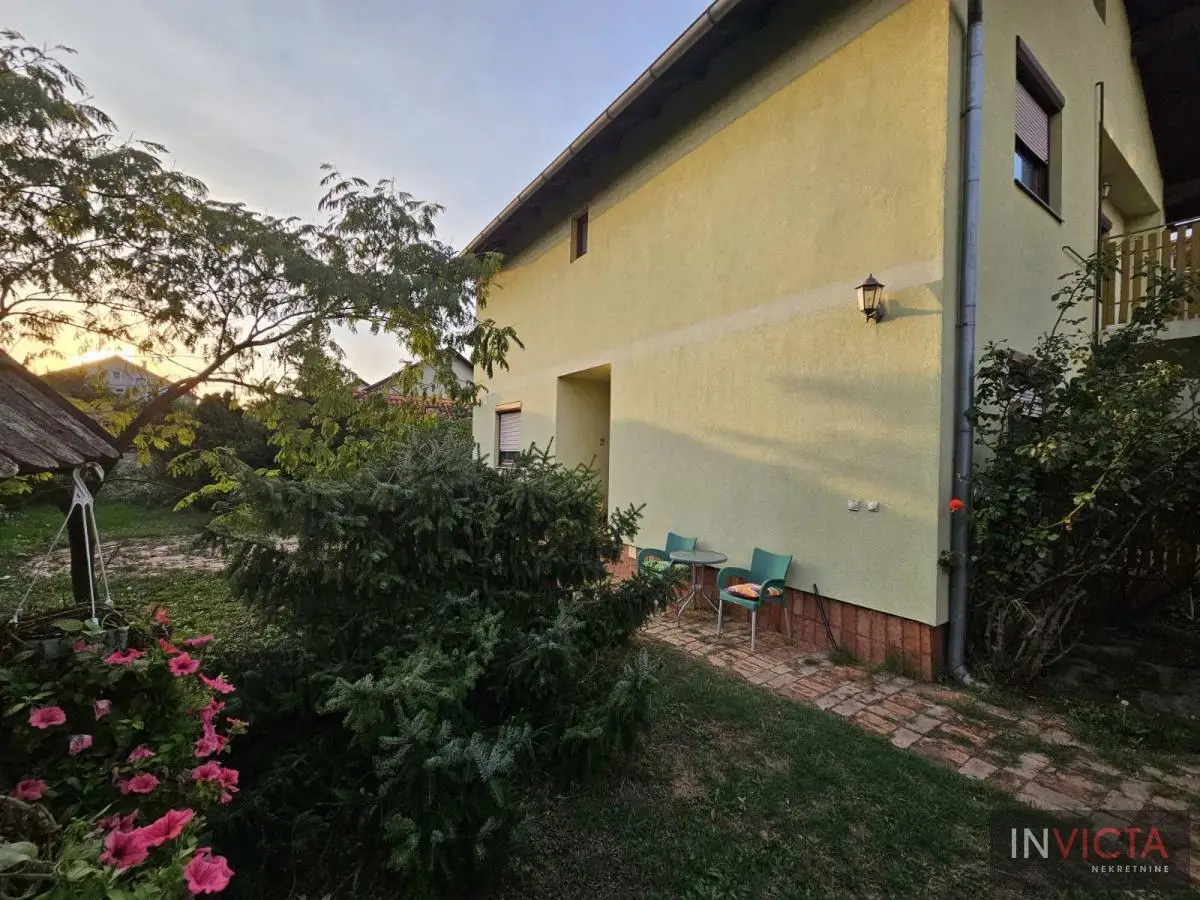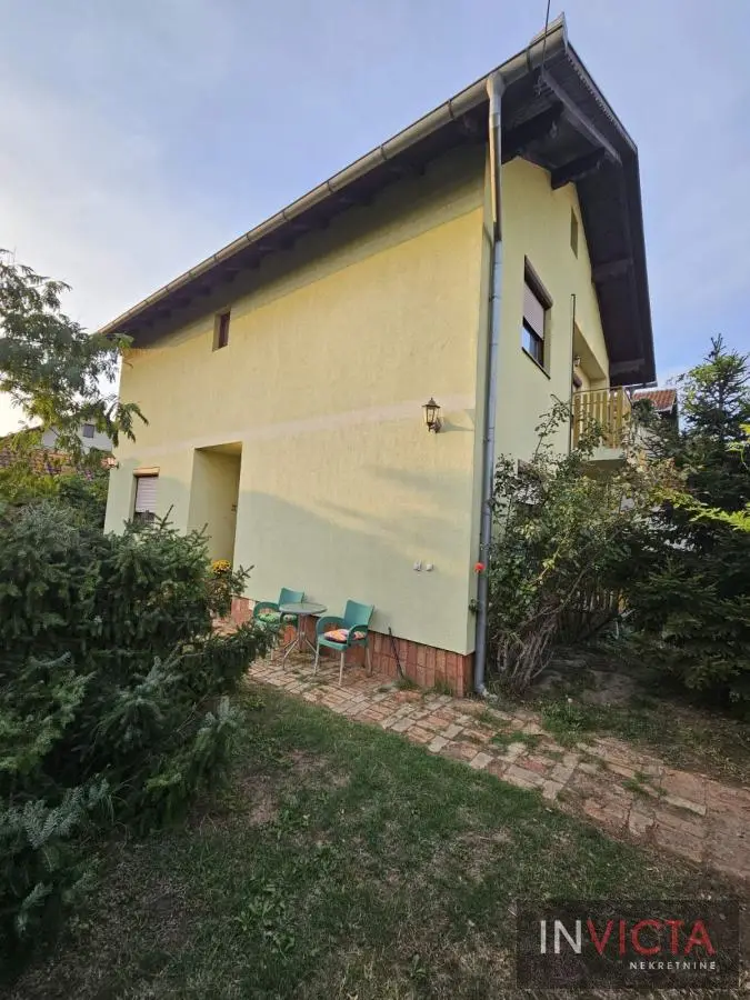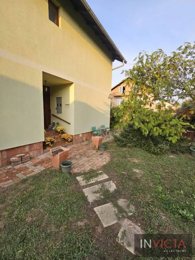 Novija porrodična kuća koncipirana sa mogućnoošču dve odvojene stambene jedinice, jedna u prizemlju, druga na spratu. U prizemnom delu je kuhinja sa trpezarijom i dnevnim boravkom sa vezom ka terasi, kupatilo i dve spavaće sobe. Na spratu su tri spavaće sobe, mogućnost kuhinje i kupatilo. U osnovi 81m2, ukupno 162m2. na parceli površine 411m2. Grejanje na gas-fasadne peći. Uredna pravna dokumenntacija. Mogućnost zamene za manji stan uz doplatu. Broj u Reg.posrenika 475,