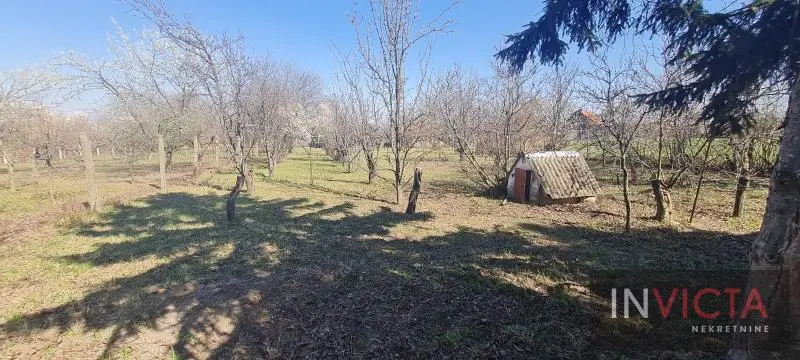 Prelepa parcela-voćnjak, zemljište u građevinskom području, površine 2200m2, sa manjom kućom-vikendicom na uzvišenju-zaravni..U celosti je ograđena, dimenzija cca 27x80 m, sastavljen od dva parcelna broja, tako da je i deljiva na dve parcele. Manja drvena kuća i nekoliko desetina stabala raznog voća u punom rodu (jabuke, kruške, šljive, kajsije, trešnje, orasi). U dnu parcele ozidani manji deo za eventualni svinjac i kokošinjac. Struja i voda na placu, asfaltni put gotovo do same parcele. pristupačno glavnim saobraćajnicama. Celina se sastoji iz dva parcelna broja, tako da su to dve parcele i moguća je prodaja samo jedne u površini od 1100m2. Broj u Reg.posrednika 475.
