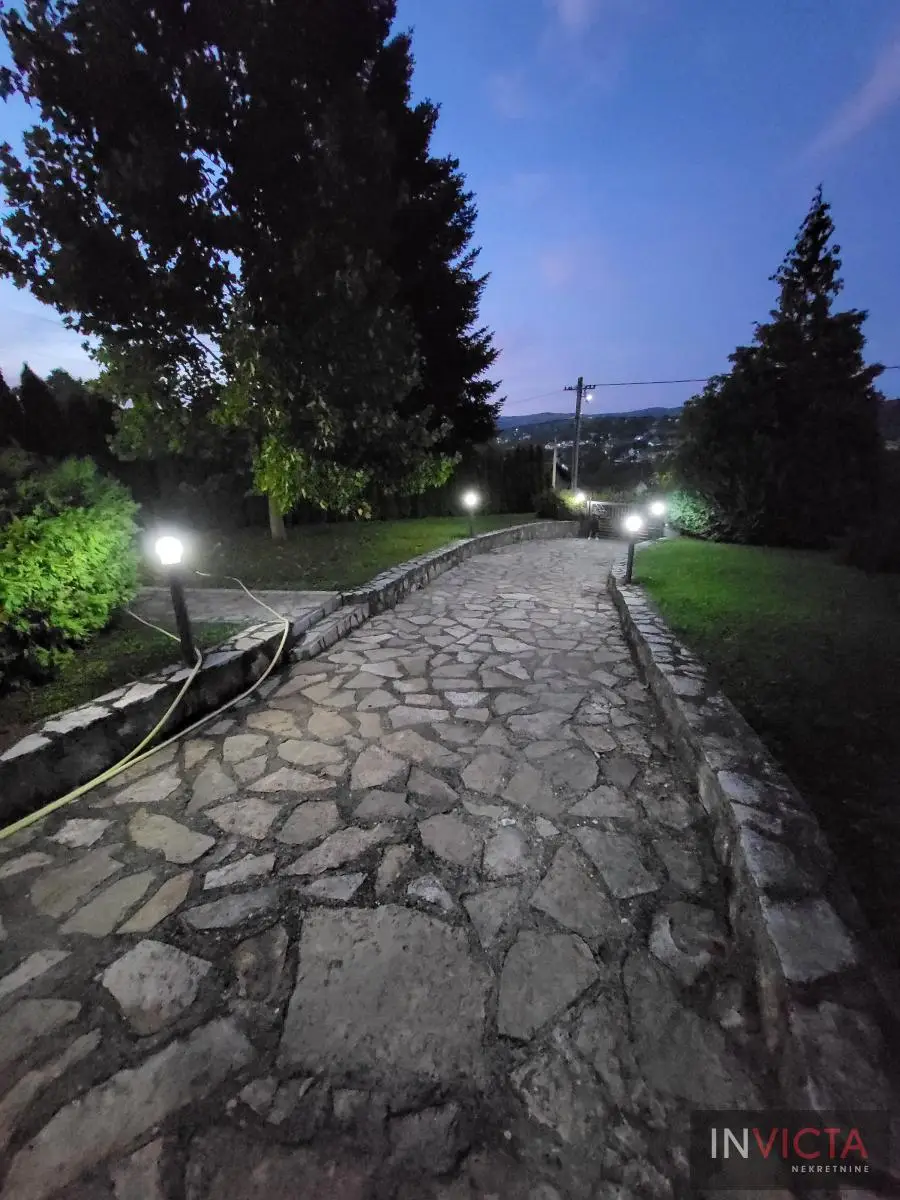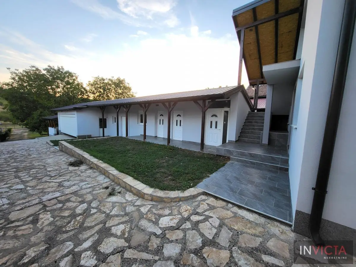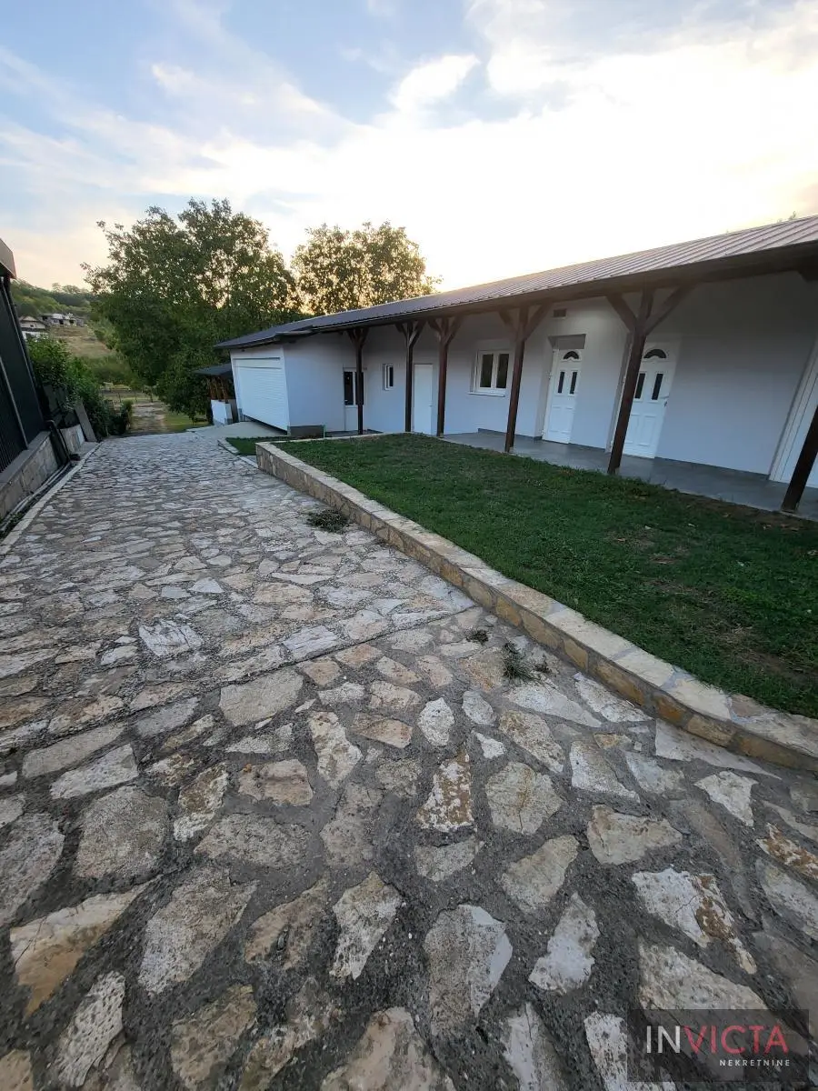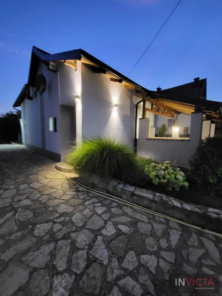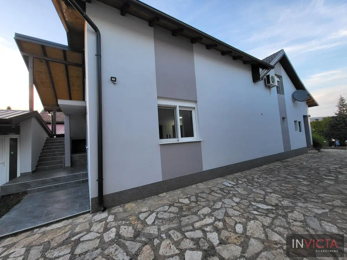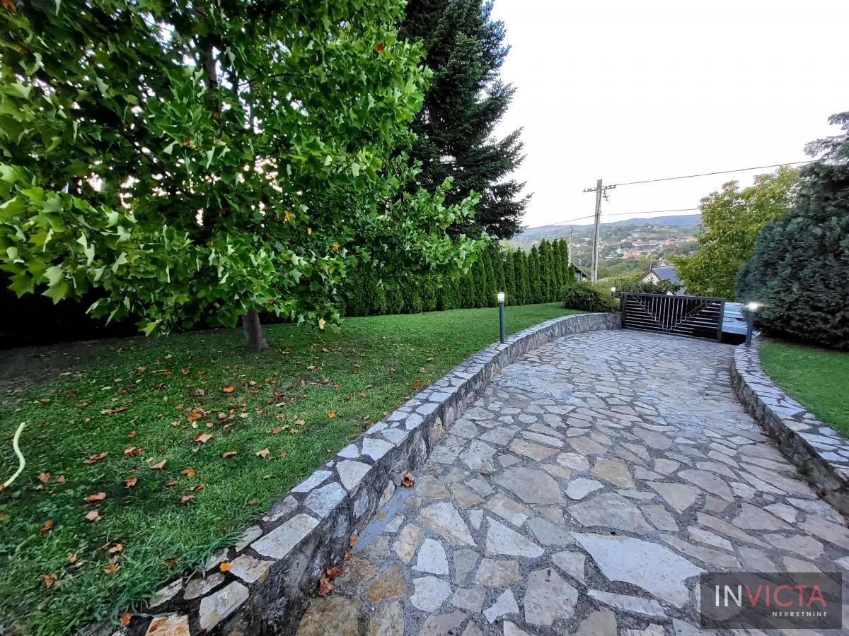 Odlična, novoizgrađena porodična kuća u jednom od najlepših naselja, simpatičnom turističkom gradiću na Fruškoj gori, na blago brdovitom predelu okruženo šumom, poznatom po termalnim vodama, idealno mesto za život u prirodi u mirnom okruženju. Osim po poznatoj banji-lečilištu, poznato ja i kao "vazdušna banja". Izgradnjom jednog od najlluksuznijeg hotela sa velikim brojem bazena, restorana, sportskih terena i svih ostalih pratećih sadržaja, Vrdnik dobija za sve većem značaju i na turističkoj karti kako Srbije, tako i okruženja. Predmetna nepokretnost, porodična kuća se nalazi nedaleko od centra mesta, na uzvišenju, u mirnoj ulici, sa prelepim pogledom na gradić i obronke Fruške gore. Percela je površine 1500 m2 i izlazi na dve ulice. Ograda, prilazne staze, podzidi, urađeni od fruškogorskog kamena se uklapaju u planinski pejzaž. Sama kuća se sastoji od dve zasebne stambene jedinice koje su spojive unutrašnjom vezom, a opet imaju mogućnost zasebnog ulaza. Prva celina u prizemlju ima prostrano kupatilo, dnevni boravak sa vezom ka nakrivenoj terasi, odvojenu kuhinju sa trpezarijskim delom i dve sobe koje mogu imati namenu naspram potreba korisnika. Na potkrovlju su dve spavaće sobe, te poseban apartman koji se sastoji iz velikog dnevnog boravka sa staklenim portalima koji se prostiru skoro celom širinom prosttorije, spavaće sobe i prostranog kupatila. U nastavku kuće, u dvorišnom krilu su pomoćne prostorije i to: letnja kuhinja, ostava, ostava za drva, garaža za dva vozila, te u suterenu prelep vinski podrum ozidan sa sirovom ciglom. Na kraju je još jedna velika nadkrivena terasa kao mesto predviđeno za okupljanja, druženja uz roštilj ili sl. U uređenom dvorištu su razne biljke, od zimzelenih četinara, pa do voćki poput oraha i sl. Grejanja na gas. Uredna pravna dokumentacija, uknjižena i odmah useljiva nepokretnost. Broj u Reg.posrednika 475.