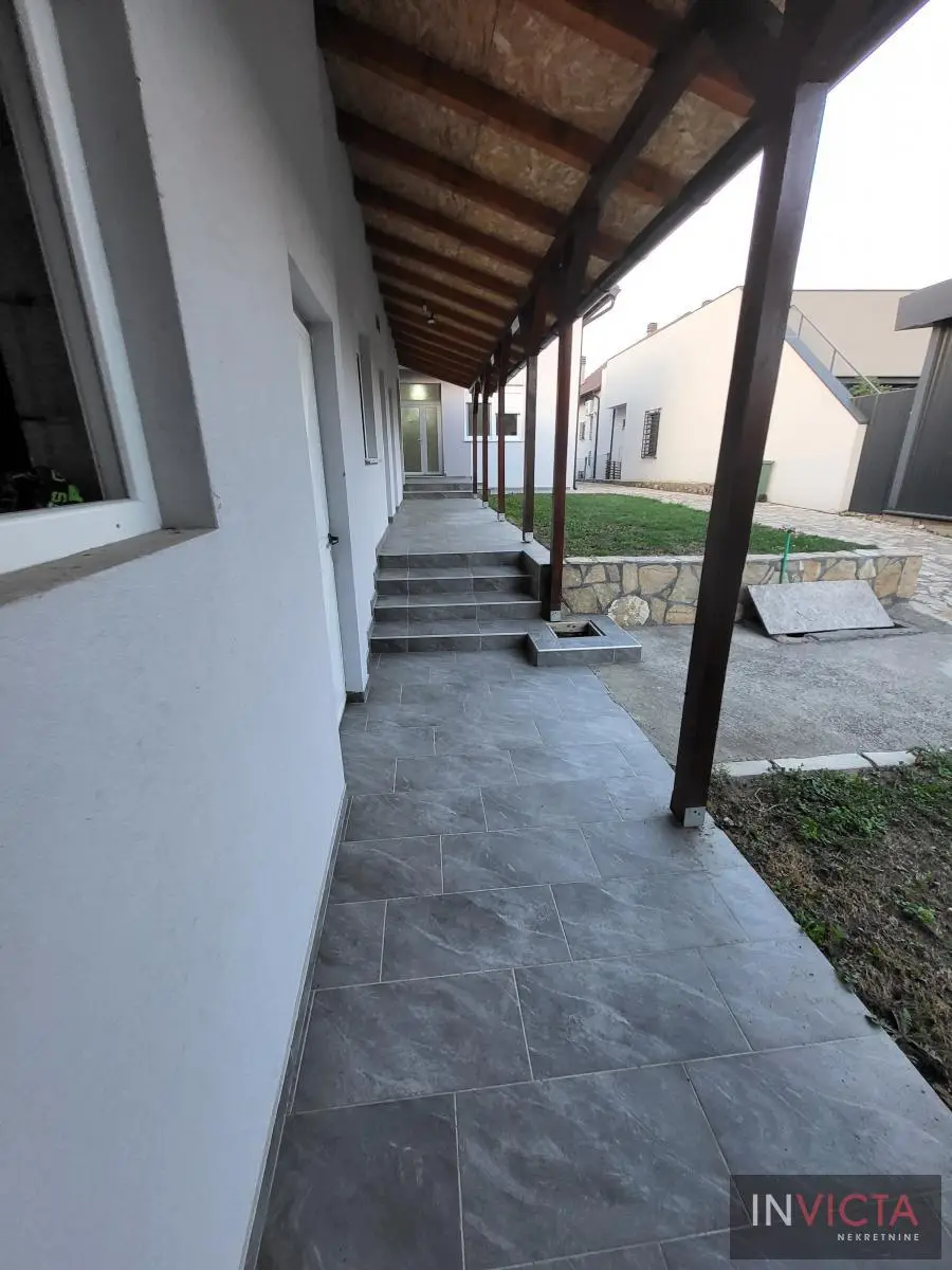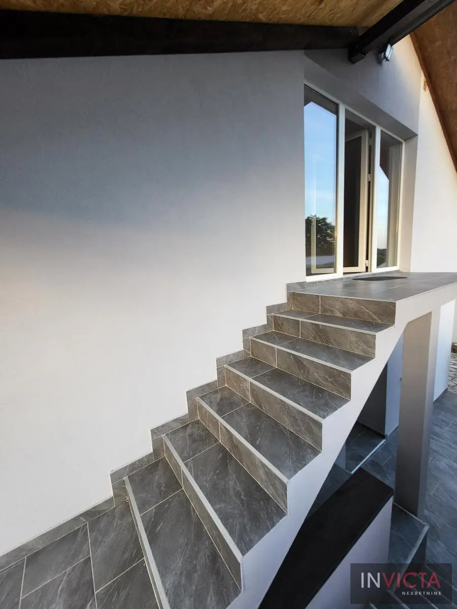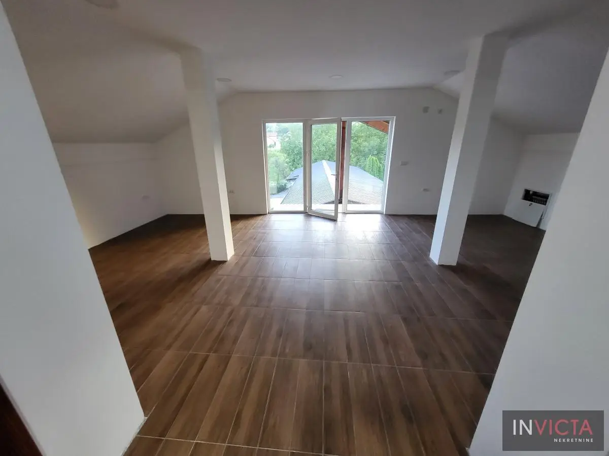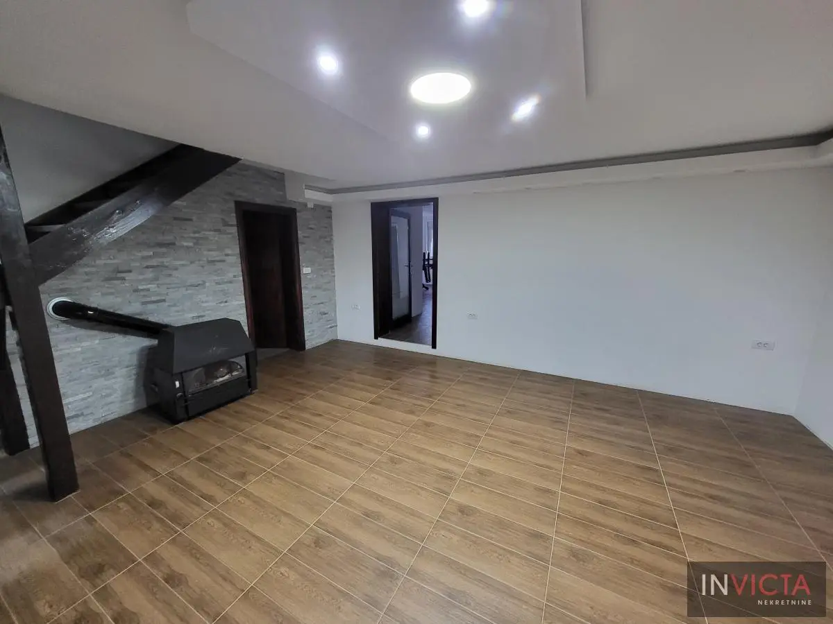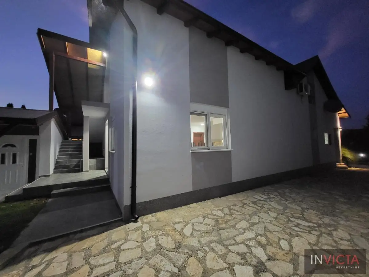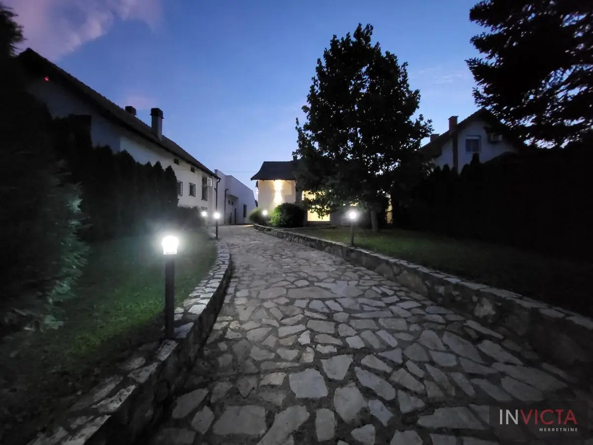 Odlična, novoizgrađena porodična kuća u jednom od najlepših naselja, simpatičnom turističkom gradiću na Fruškoj gori, na blago brdovitom predelu okruženo šumom, poznatom po termalnim vodama, idealno mesto za život u prirodi u mirnom okruženju. Osim po poznatoj banji-lečilištu, poznato ja i kao "vazdušna banja". Izgradnjom jednog od najlluksuznijeg hotela sa velikim brojem bazena, restorana, sportskih terena i svih ostalih pratećih sadržaja, Vrdnik dobija za sve većem značaju i na turističkoj karti kako Srbije, tako i okruženja. Predmetna nepokretnost, porodična kuća se nalazi nedaleko od centra mesta, na uzvišenju, u mirnoj ulici, sa prelepim pogledom na gradić i obronke Fruške gore. Percela je površine 1500 m2 i izlazi na dve ulice. Ograda, prilazne staze, podzidi, urađeni od fruškogorskog kamena se uklapaju u planinski pejzaž. Sama kuća se sastoji od dve zasebne stambene jedinice koje su spojive unutrašnjom vezom, a opet imaju mogućnost zasebnog ulaza. Prva celina u prizemlju ima prostrano kupatilo, dnevni boravak sa vezom ka nakrivenoj terasi, odvojenu kuhinju sa trpezarijskim delom i dve sobe koje mogu imati namenu naspram potreba korisnika. Na potkrovlju su dve spavaće sobe, te poseban apartman koji se sastoji iz velikog dnevnog boravka sa staklenim portalima koji se prostiru skoro celom širinom prosttorije, spavaće sobe i prostranog kupatila. U nastavku kuće, u dvorišnom krilu su pomoćne prostorije i to: letnja kuhinja, ostava, ostava za drva, garaža za dva vozila, te u suterenu prelep vinski podrum ozidan sa sirovom ciglom. Na kraju je još jedna velika nadkrivena terasa kao mesto predviđeno za okupljanja, druženja uz roštilj ili sl. U uređenom dvorištu su razne biljke, od zimzelenih četinara, pa do voćki poput oraha i sl. Grejanja na gas. Uredna pravna dokumentacija, uknjižena i odmah useljiva nepokretnost. Broj u Reg.posrednika 475.