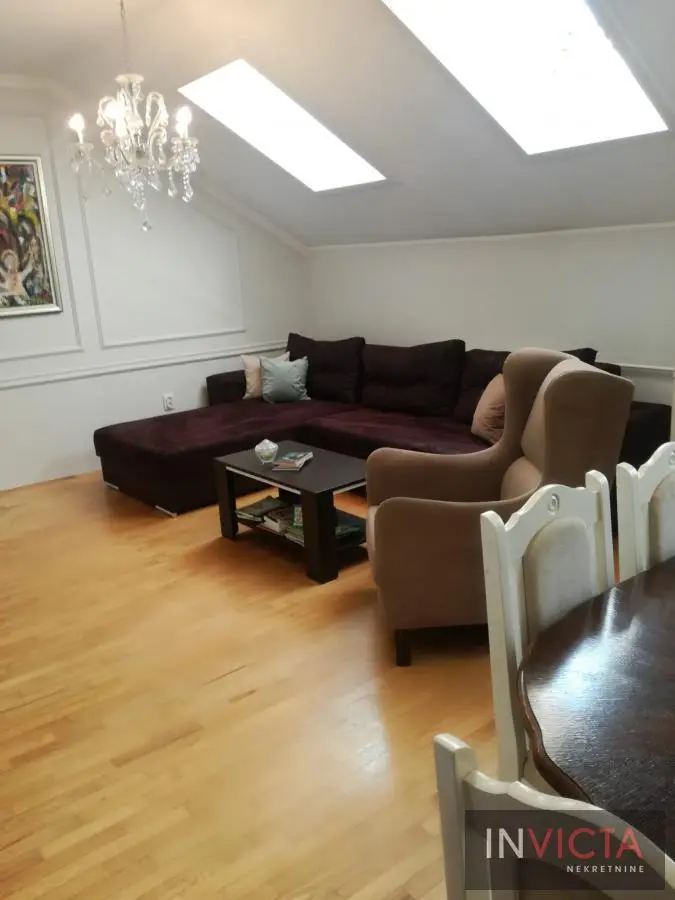 Simpatična trosoban stan u dva nivoa u samom centru Novog naselja, u neposrednoj blizini doma zdravlja, marketa, Futoškog puta. U donjem nivou stana je komforan dnevni boravak sa trpezarijskim delom koji ima vezu sa terasom, odvojena kuhinja, kupatilo i spavaća soba takođe sa izlazom na drugu terasu. U potkrovlju radni i spavaći deo. Dvostrano orijentisan stan. Uredna pravna dokumentacija. Broj u Reg.posrednika 475.,
