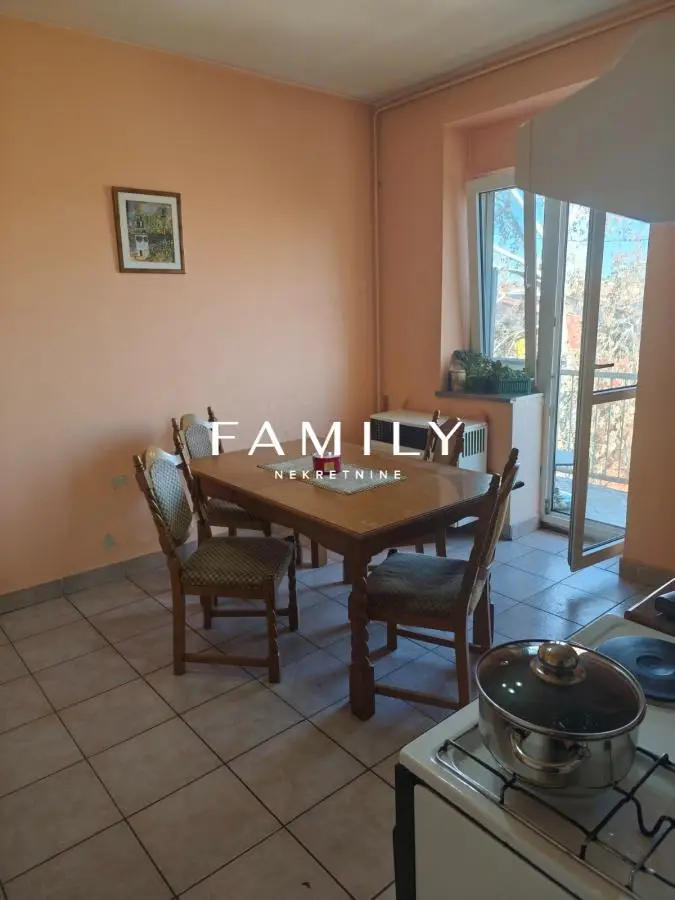 Stan se nalazi u starijoj, na trećem spratu zgrade bez lifta. Po strukturi je trosoban i funkcionalno organizovan tako da se iz ulaznog hodnika pristupa svim prostorijama. Sa desne strane hodnika nalaze se kupatilo i manja soba, koja je ranije korišćena kao dečija, a trenutno služi kao ostava. Sa leve strane smeštene su velika spavaća soba i prostrana dnevna soba, iz koje se izlazi na terasu. Stan poseduje i odvojenu kuhinju, iz koje se izlazi na drugu terasu. Grejanje u stanu je trenutno na gasne peći. Gas je razvučen po stanu, i trebalo bi da se ugradi kotao i stave radijatori. Tavanski prostor veličine spavaće sobe, koji pripada stanu i pruža mogućnost adaptacije u duplex. Takođe, uz stan dolazi i velika ostava u prizemlju zgrade, koja se može preurediti u garažu ili dodatni skladišni prostor. Cena stana, sa uračunatom agencijskom provizijom, iznosi 175.000 €. Za više informacija pozvati: 063663254 Agencijska provizija 3% , uračunata u cenu Family Nekretnine doo, upisan u REG POSREDNIKA 1708 www. familynekretnine.rs Radnička 2, Novi Sad