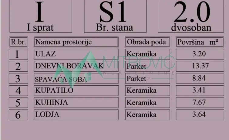 Nalazi se u mirnom i porodičnom kraju. Rok završetka radova planiran je za septembar. Stan se nalazi u objektu novije gradnje, sa obezbeđenim parking mestom za stanare. U izgradnji su korišćeni kvalitetni i savremeni materijali, sa pažnjom posvećenom funkcionalnosti i dugotrajnosti. Lokacija je izuzetno pogodna za porodični život – u neposrednoj blizini nalaze se škola i autobuske linije, što omogućava dobru povezanost sa ostalim delovima grada. Idealna prilika za one koji traže komforan, moderan stan u mirnom okruženju. U oglašenu cenu uračunata je posrednička naknada u iznosu od 3%. Kontakt: 0600601204.