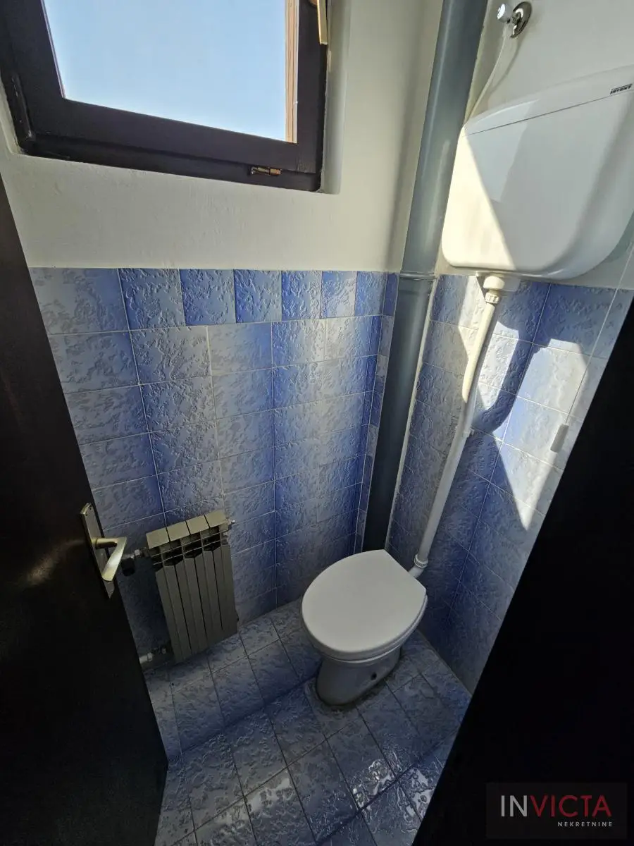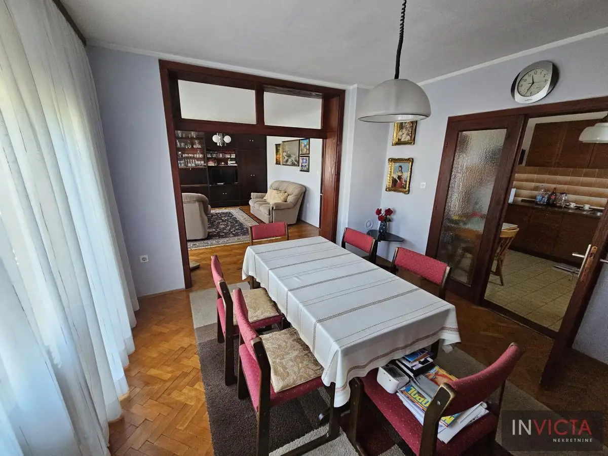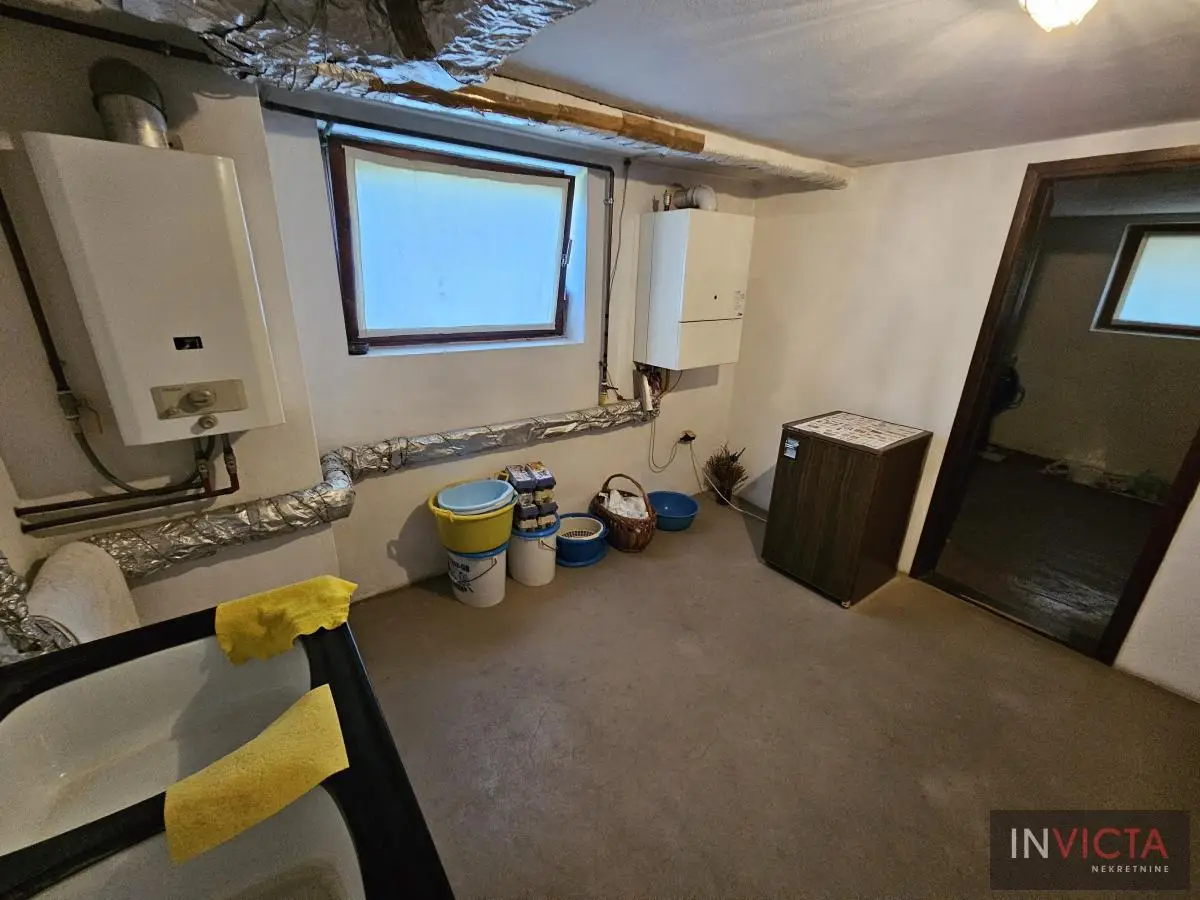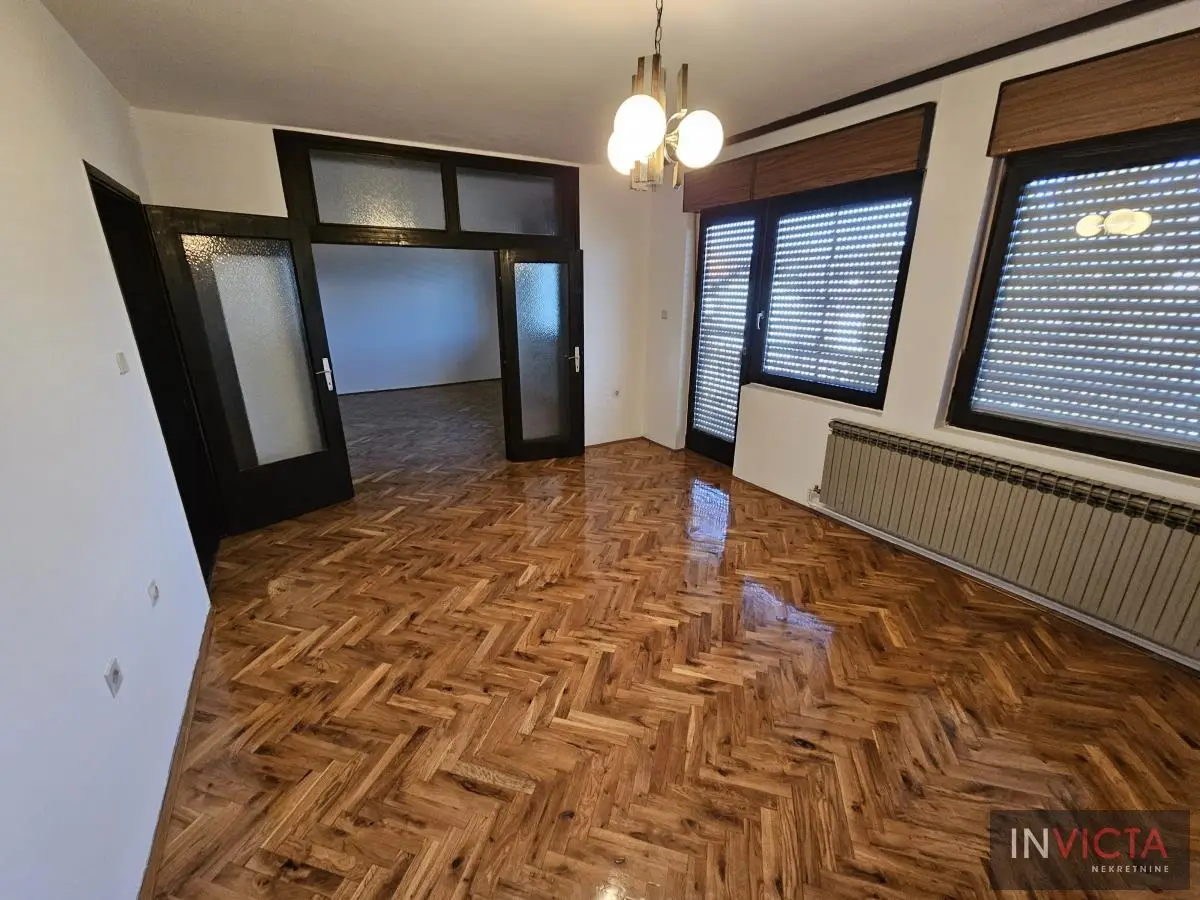 Klasična, građevinski odlično izgrađena porodična kuća sa dve potpuno odvojene trosobne stambene jedinice, sa posebnim strujnim brojilima. Mogućnost komfornog stanovanja za dve porodce. Kuća je u osnovi 120 m2, uknjižena po etažama (polusuteren 89m2, prizemlje 115m2, sprat 112m2), poslovni objekat površine 122m2, na parceli površine 885m2. U suterenu je više prostorija koje se koriste kao ostave i kotlarnica (3 vrste grejanja). Na visokom prizemlju i prvom spratu su dve identične stambene jedinice sa po dve prostrane spavaće sobe, kupatilom, toaletom, velikim dnevnim boravkom koji je povezan sa trpezarijom i terasom, te velikom odvojenom kuhinjom. U dvorištu je poslovni objekat (PR+1+tavan) u osnovi 5x25m2, sređen, sa sanitarnim čvorom. Kolski ulaz, dvorište sređeno, asfalt+zeleni deo u kome je bašta, voćnjak. Ulični front je 18m. , dužina 50m.. Uredna pravna dokumentacija. Brzo useljiva nekretnina . Broj u Reg.posrednika 2107.