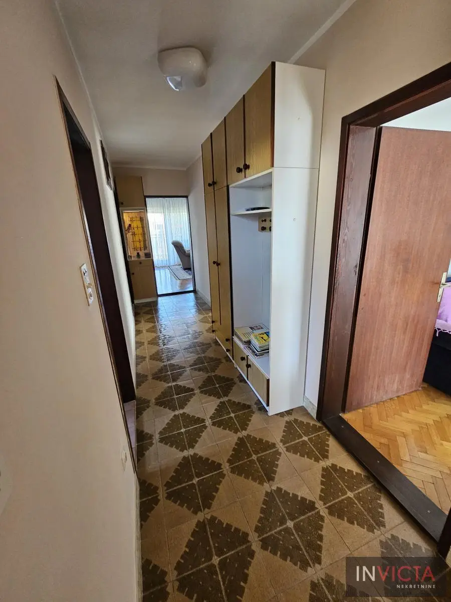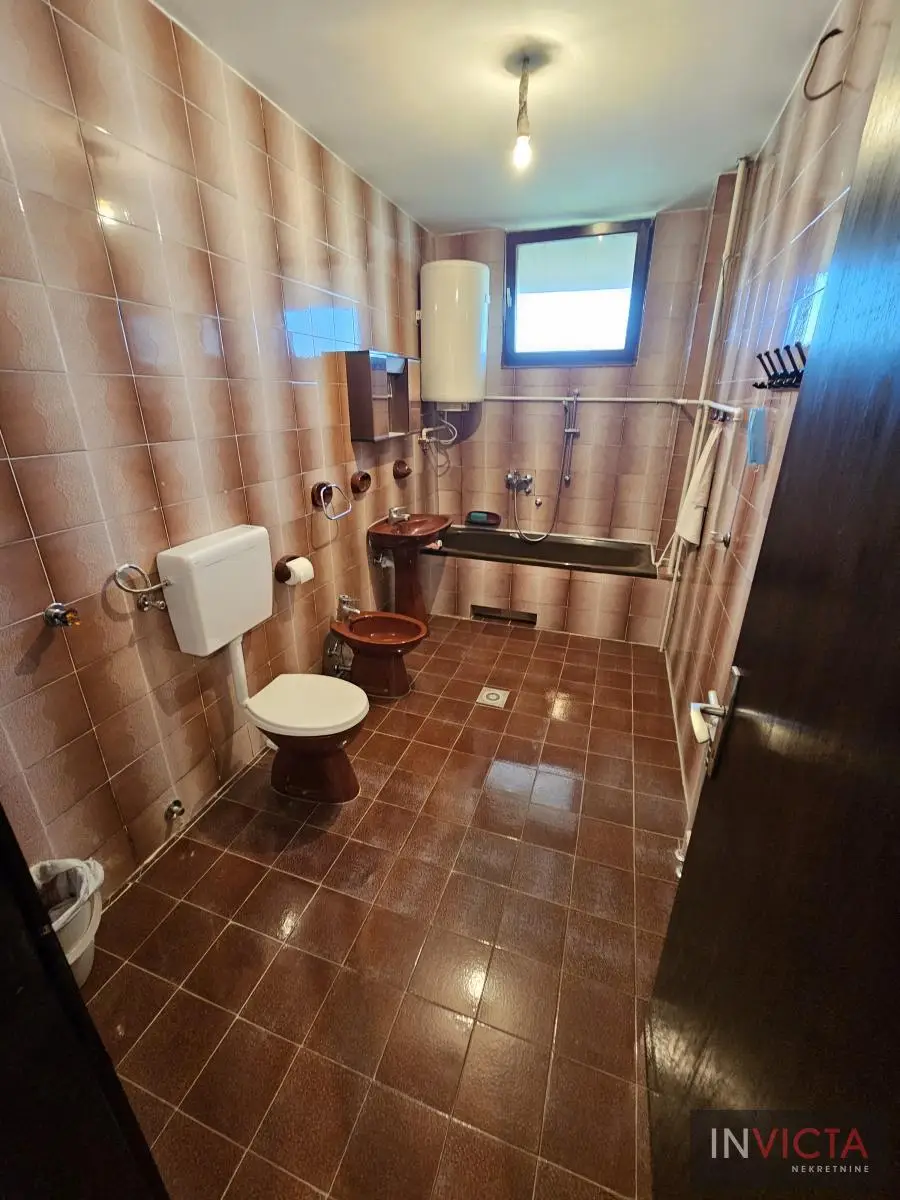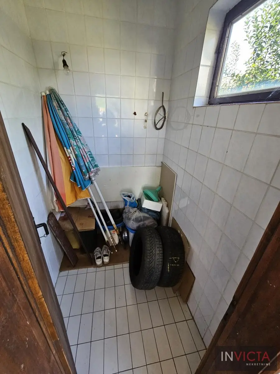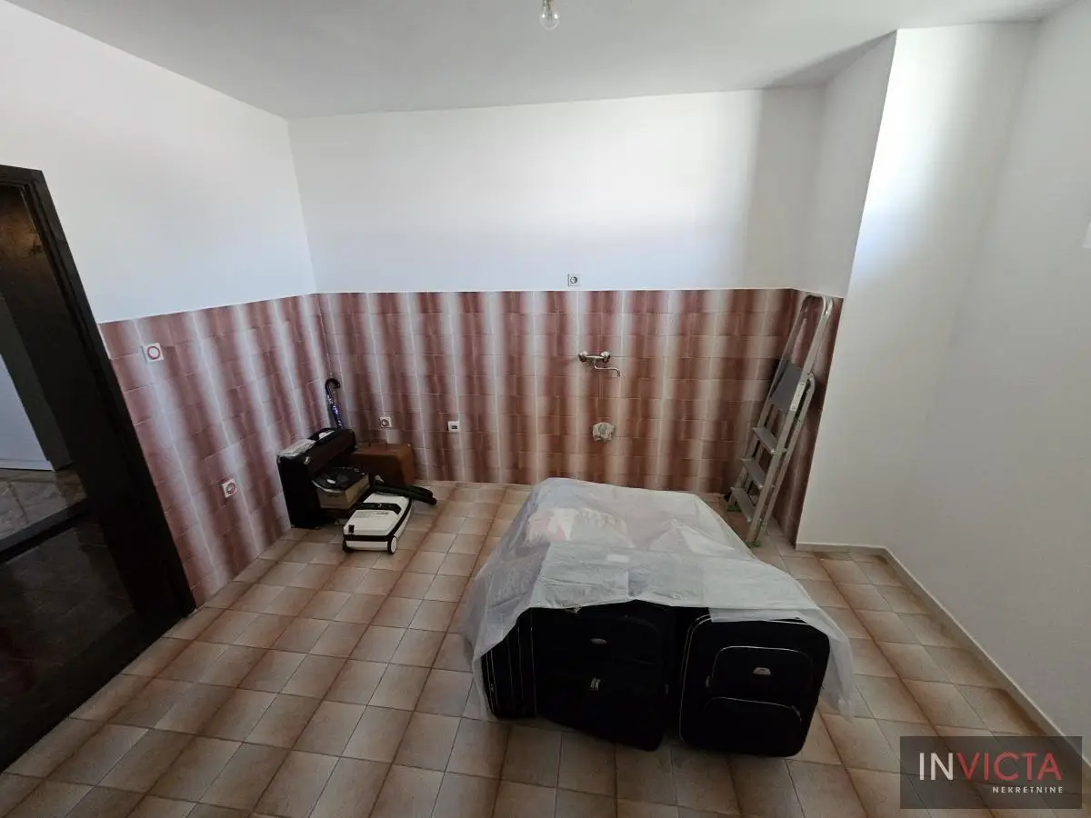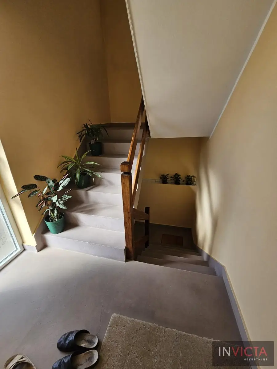 Klasična, građevinski odlično izgrađena porodična kuća sa dve potpuno odvojene trosobne stambene jedinice, sa posebnim strujnim brojilima. Mogućnost komfornog stanovanja za dve porodce. Kuća je u osnovi 120 m2, uknjižena po etažama (polusuteren 89m2, prizemlje 115m2, sprat 112m2), poslovni objekat površine 122m2, na parceli površine 885m2. U suterenu je više prostorija koje se koriste kao ostave i kotlarnica (3 vrste grejanja). Na visokom prizemlju i prvom spratu su dve identične stambene jedinice sa po dve prostrane spavaće sobe, kupatilom, toaletom, velikim dnevnim boravkom koji je povezan sa trpezarijom i terasom, te velikom odvojenom kuhinjom. U dvorištu je poslovni objekat (PR+1+tavan) u osnovi 5x25m2, sređen, sa sanitarnim čvorom. Kolski ulaz, dvorište sređeno, asfalt+zeleni deo u kome je bašta, voćnjak. Ulični front je 18m. , dužina 50m.. Uredna pravna dokumentacija. Brzo useljiva nekretnina . Broj u Reg.posrednika 2107.