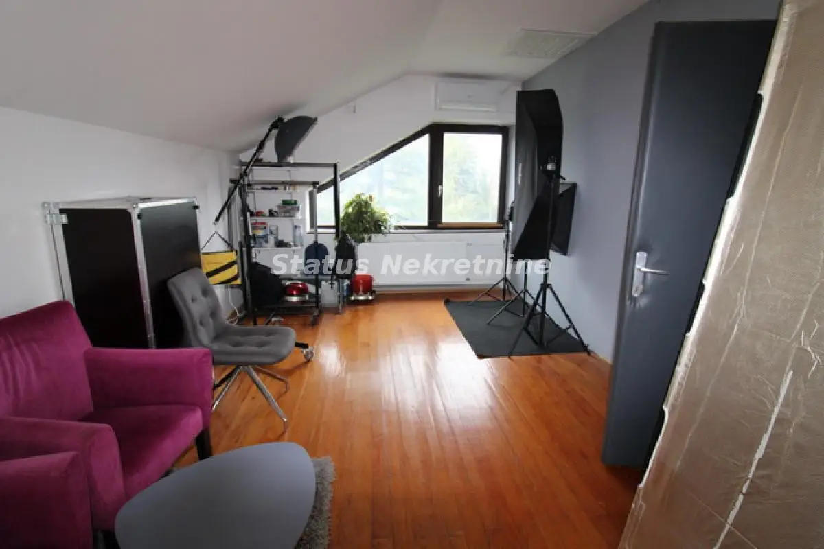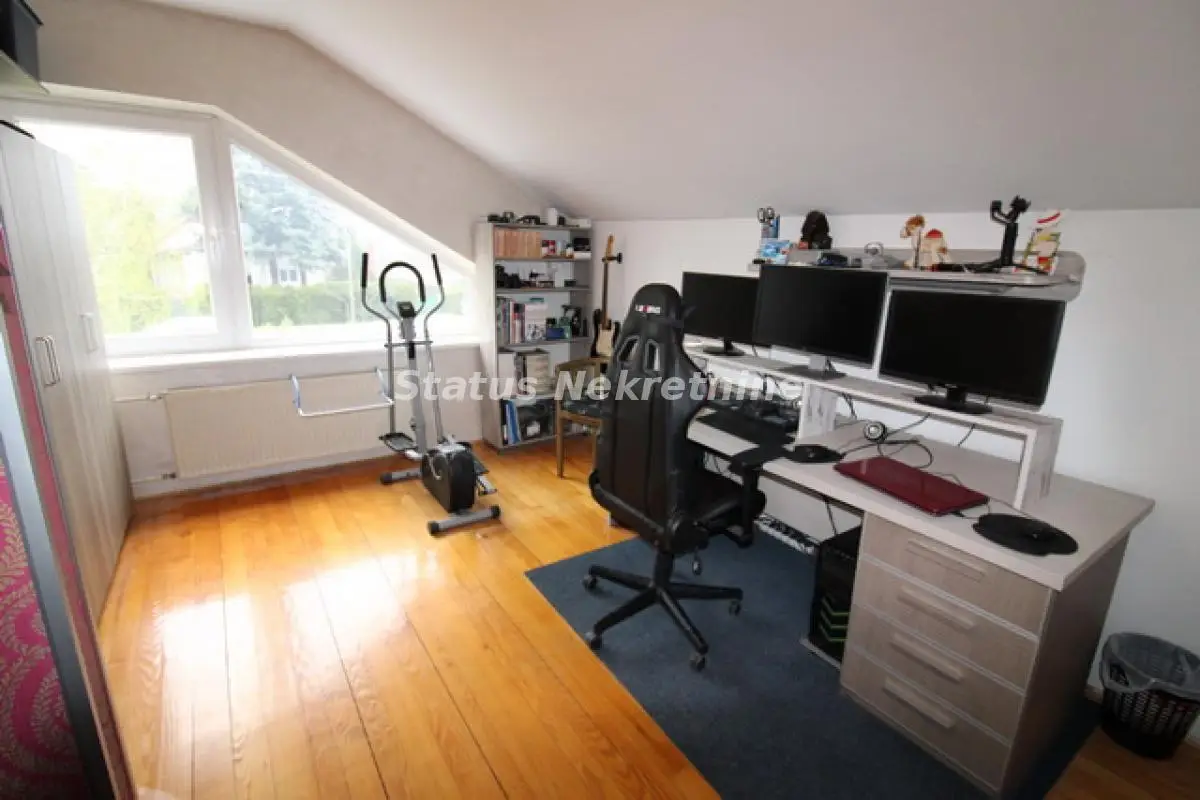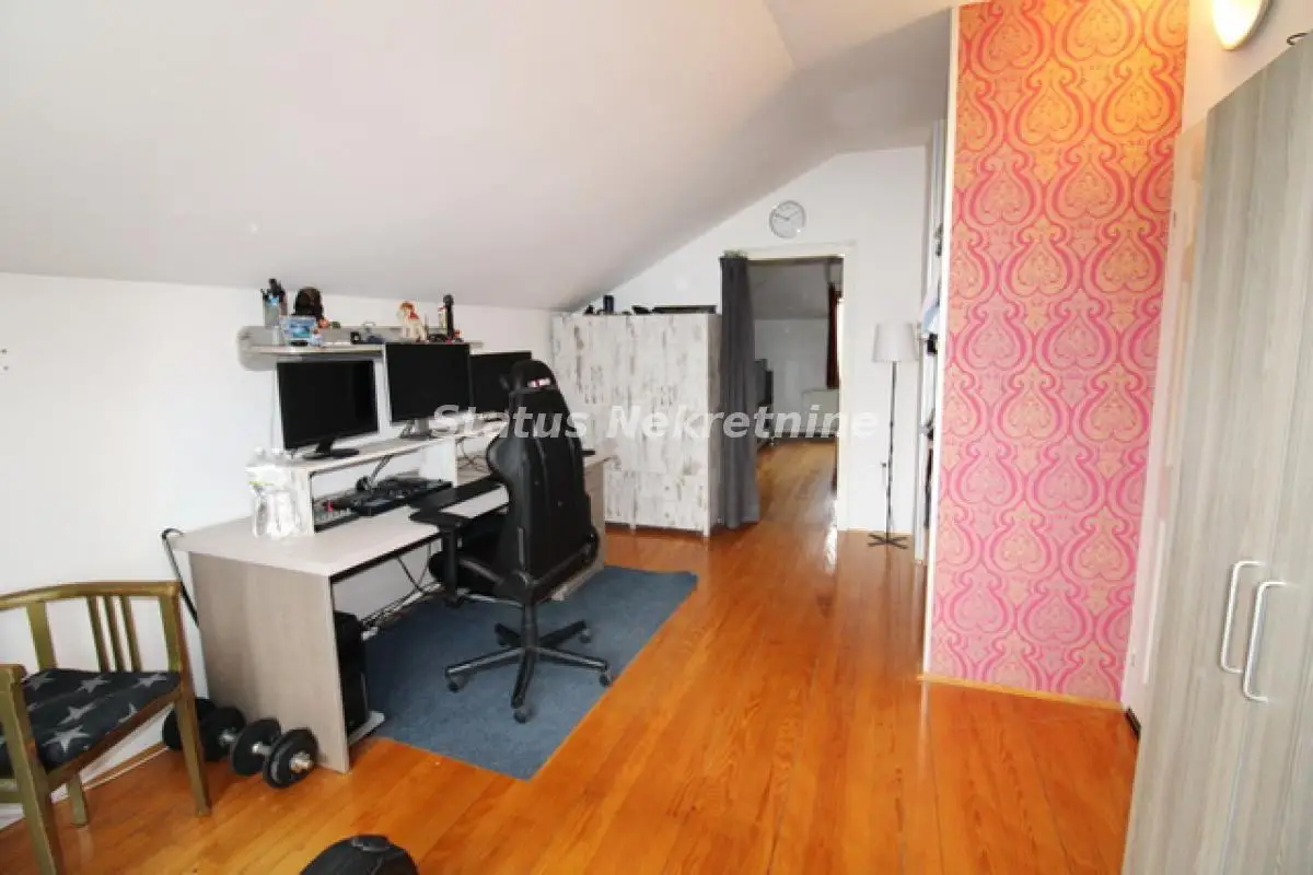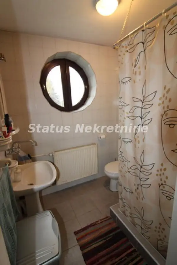 Kuća na odlićnoj lokaciji, građena od švrstog materijala, dobro izolovana, sendvić zidovi, građena za svoje potrebe. U suterenu kuće se nalčazi Garaća, veliki podrum i biblioteka. Na Prizemlju kuće je veliki dnevni boravak, sa kuhinjom i trpezarijom , i jedna spavaća soba. Iz dnevnog boravka se izlazi na veliku terasu oko 40 m2, koja gleda na predivno dvorište. U prizemlju se nalazi kupatilo i jedan odvojeni gostinski toalet. U potkrovlju su 4 spavaće sobe sa kupatilom. Kosine u PKT su na 1.60 m Ova kuća se nalazi na placu od 988 m2, koji je sav u travnjaku i koji pruža odličan prostor za mir i uživanje. Postoji mogučnost kupovine još jedne nove kuće od 80 m2, sa placem od 660 m2 u dnu ovog placa. Sto bi tada predstavljalo jednu novu celinu od 1648 m2 placa i skoro 400 m2 stambenog prostora. Vredi pogledsati.