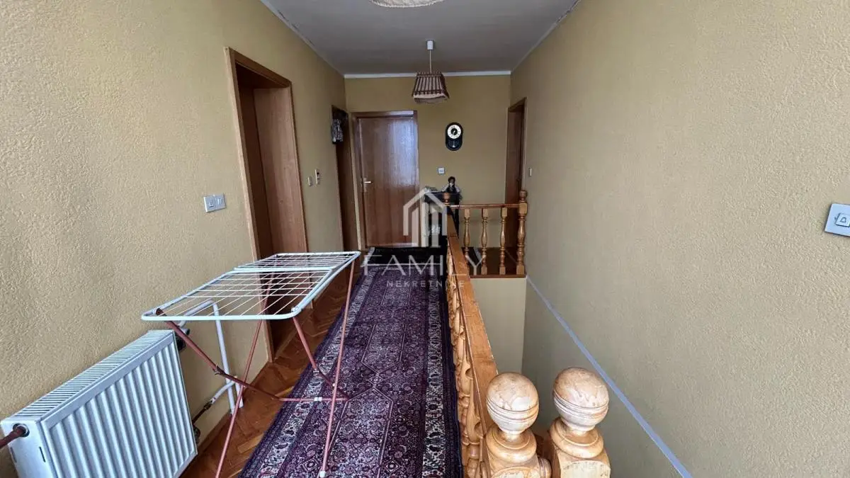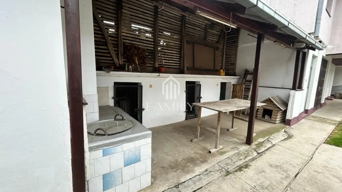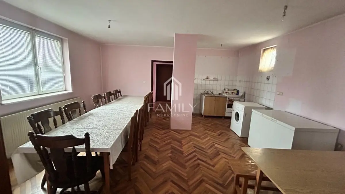 Na prodaju prostrano i funkcionalno domaćinstvo u Žablju, smešteno na velikom placu, koje pruža sve uslove za udoban život, više generacija ili razvoj poslovne ideje. Kuća se nalazi na odličnoj lokaciji, u blizini ulaza u Žabalj iz pravca Novog Sada, što omogućava brzu i jednostavnu povezanost. Objekat je uknjižen i sastoji se od dve odvojene stambene celine sa zasebnim ulazima, što pruža veliku fleksibilnost korišćenja. Glavni deo kuće: Donja etaža: Prostran dnevni boravak sa kuhinjom i trpezarijom Kupatilo Gornja etaža: Četiri spavaće sobe Kupatilo Drugi deo kuće (posebna stambena celina): Dnevni boravak Soba Kupatilo Dodatni sadržaji i pogodnosti: Dve garaže (jedna u sklopu kuće, druga u dvorištu) Letnja kuhinja Letnje kupatilo Više ostava i uknjiženih pomoćnih objekata Objekti za uzgoj životinja Podrum Ograđeno dvorište sa baštom i voćnjakom Prostrana terasa Centralno grejanje na gas Nekretnina nudi veliki potencijal – idealna za veću porodicu, dve generacije, kao i za kombinaciju stanovanja i poslovnog prostora (ordinacija, kancelarija) ili investiciju za izdavanje. Za više informacija i razgledanje, slobodno kontaktirajte. Za više informacija pozvati: 063663944 *** Family Nekretnine doo, upisan u REG POSREDNIKA 1708*** www. http://familynekretnine.rs Radnička 2a, Novi Sad